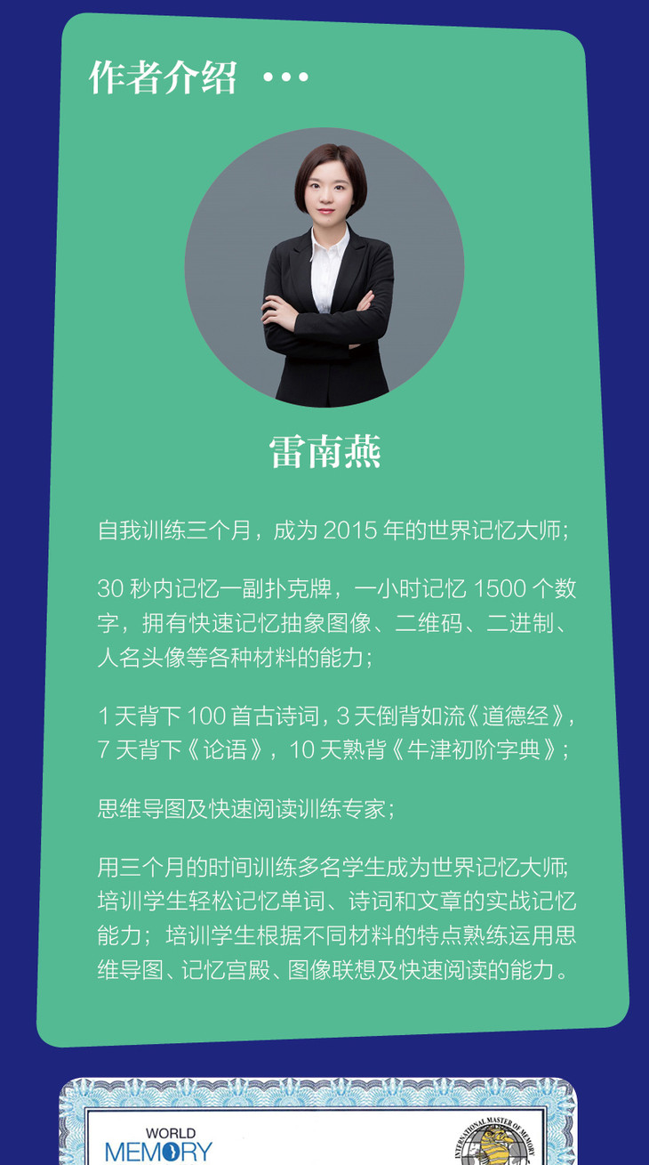 世界记忆大师雷南燕亲笔写就,毫无保留分享自己提高记忆力和阅读力的心得