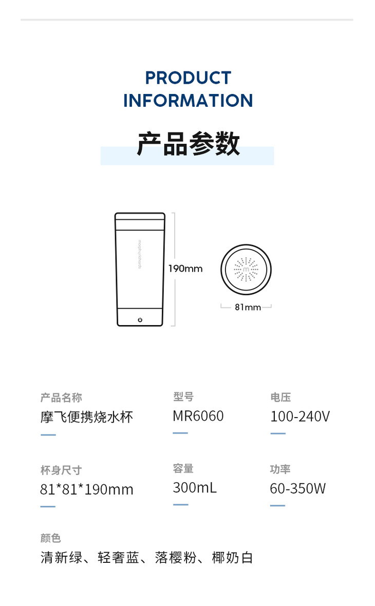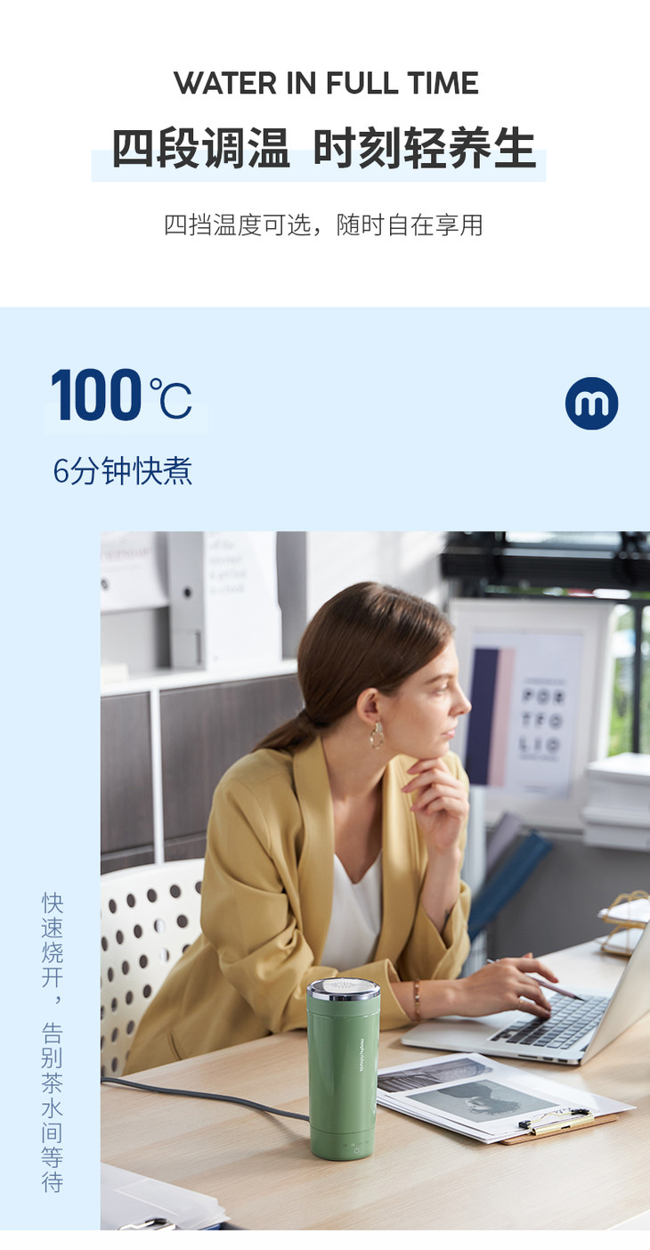 【网红爆款可调温度的烧水杯】摩飞便携烧水杯MR6060便携式烧水保温壶免开盖烧水真空保温6小时全球通用电压多国适用【摩飞系列】