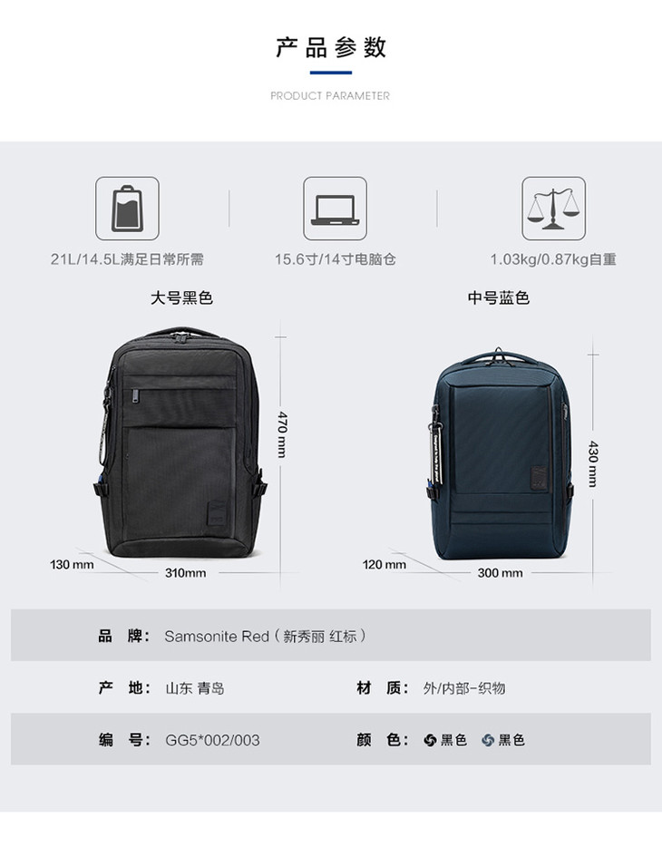 新秀丽男士双肩包 3M反光创新设计安全升级 可容纳15.6英寸电脑中号 GG5