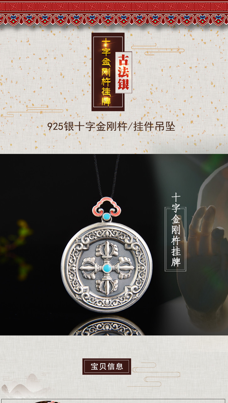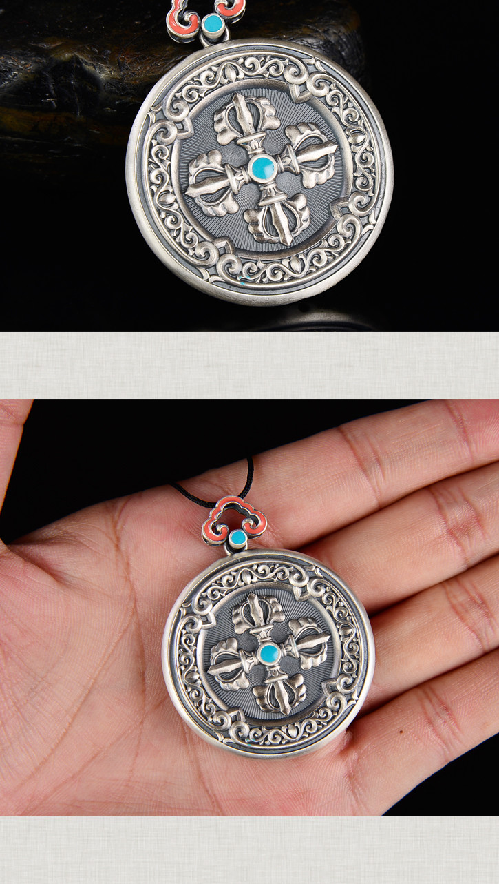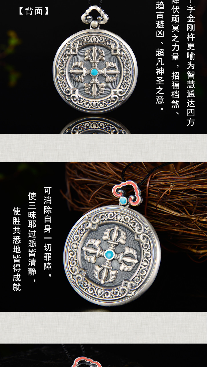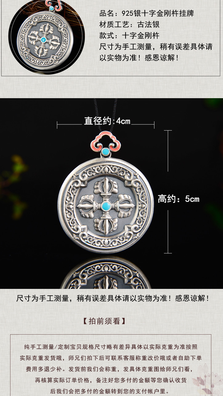 天语龙吟 银古法银十字金刚杵挂牌吊坠男女转运平安符护身6#