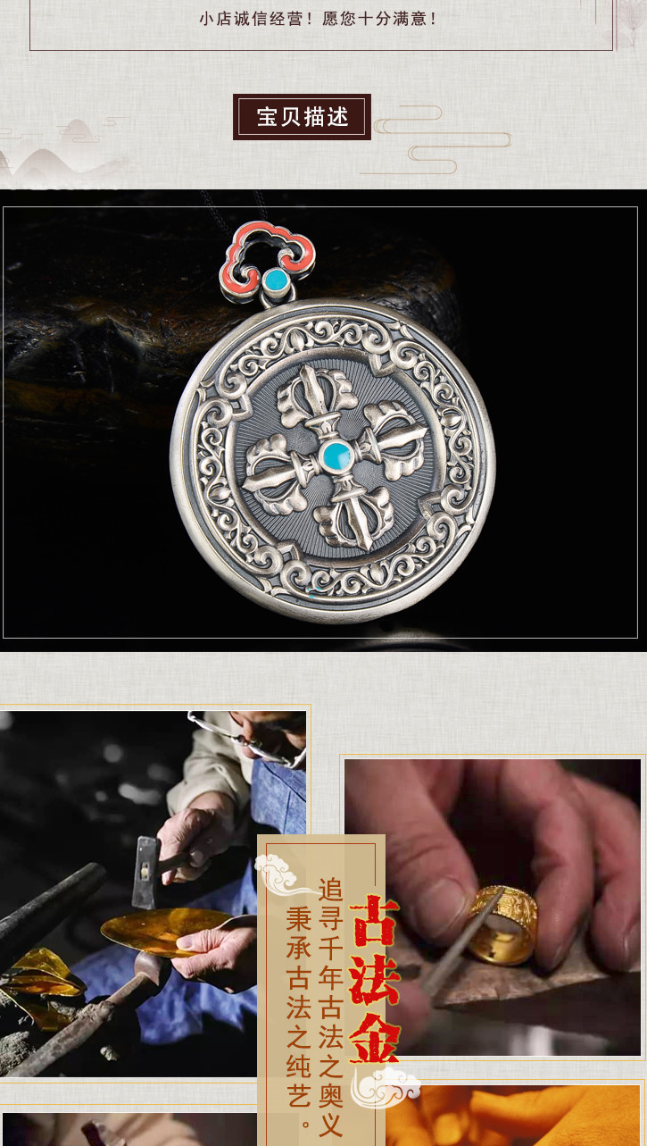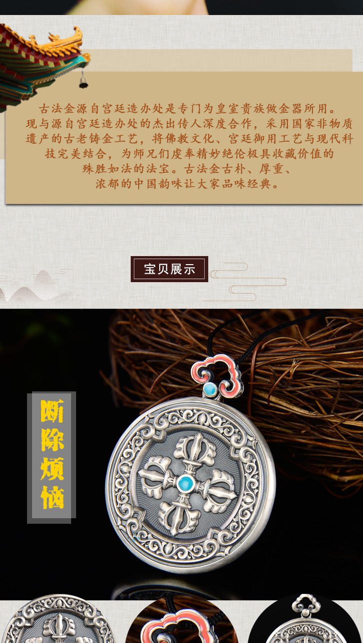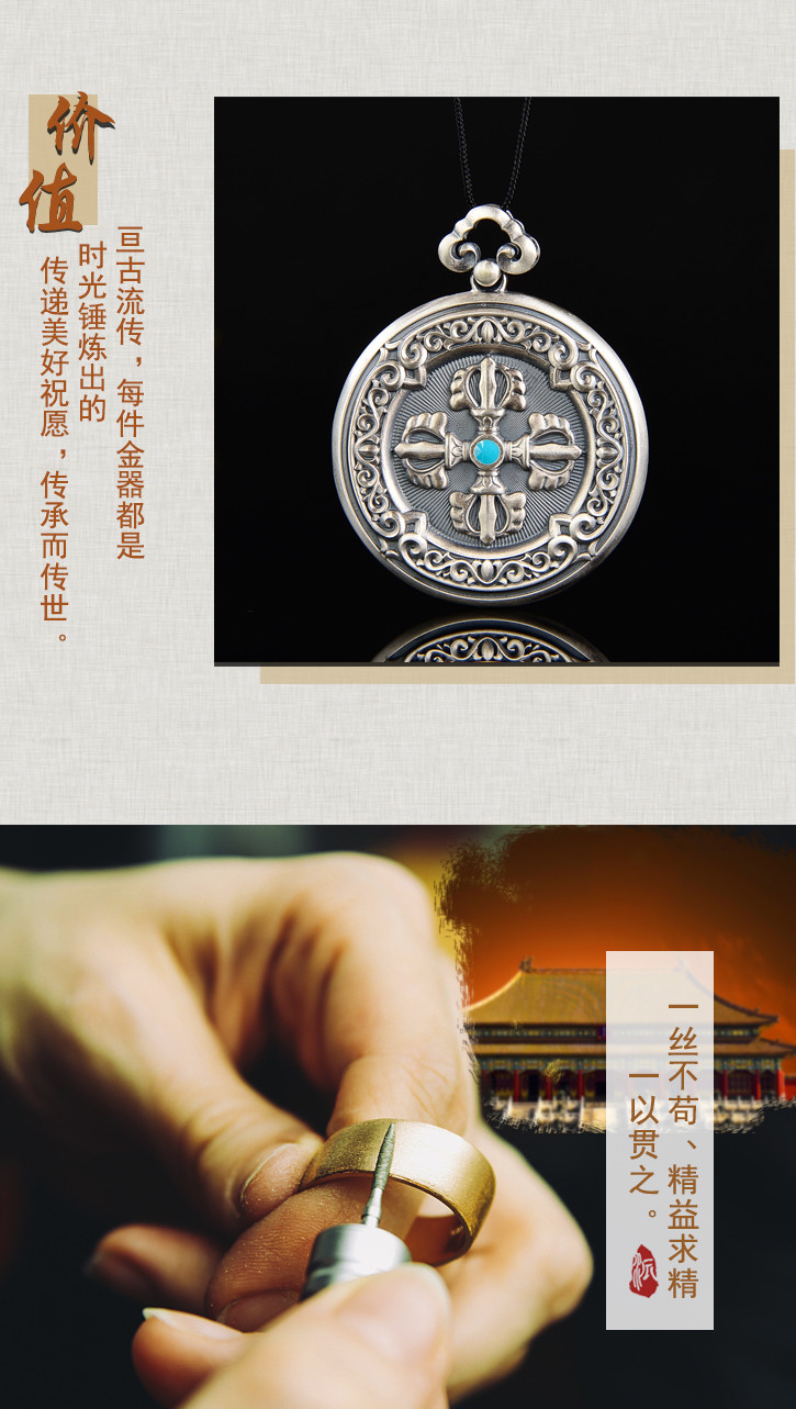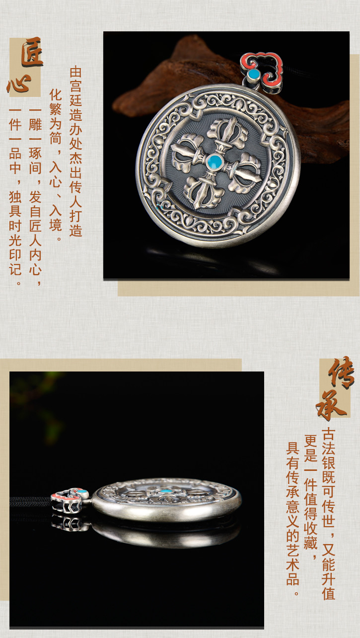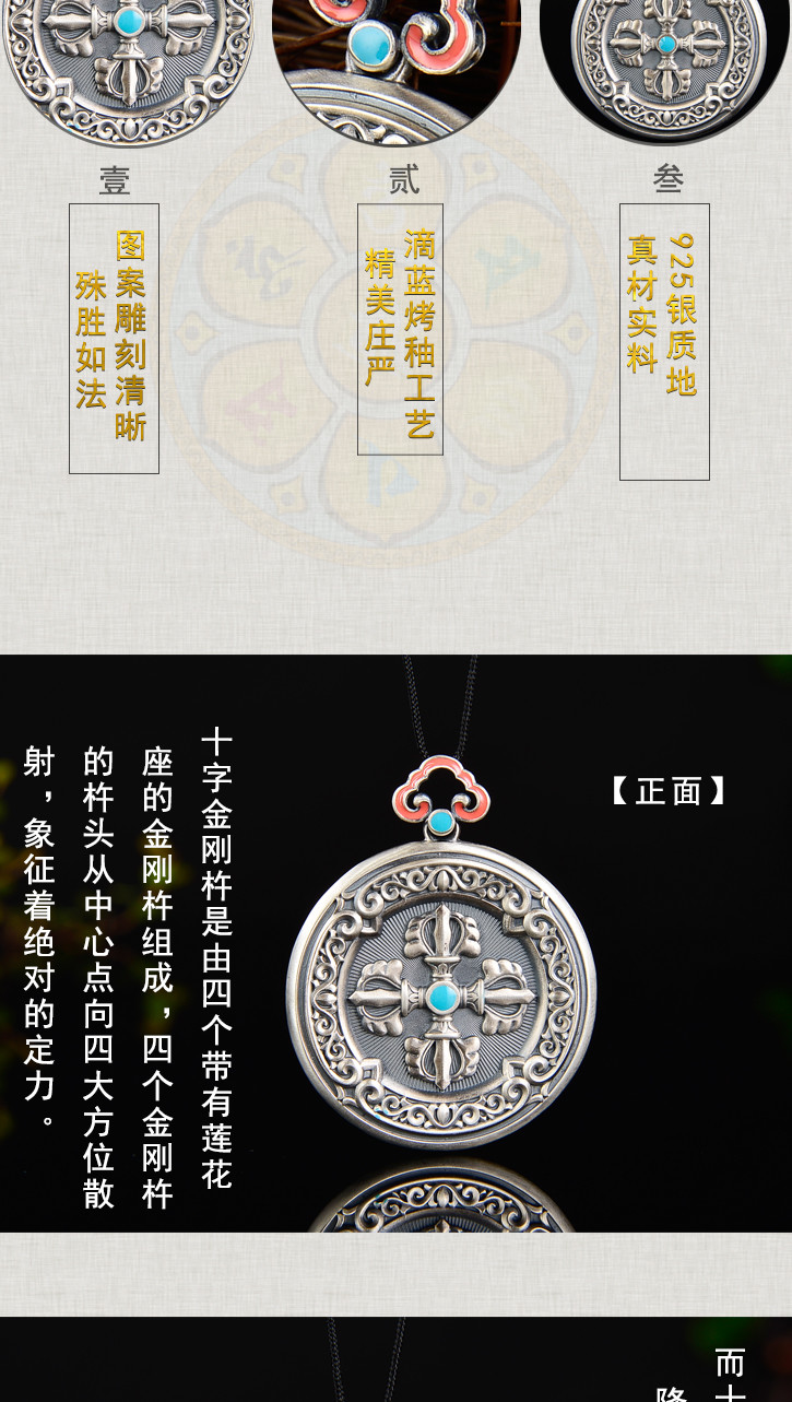 天语龙吟 银古法银十字金刚杵挂牌吊坠男女转运平安符护身6#