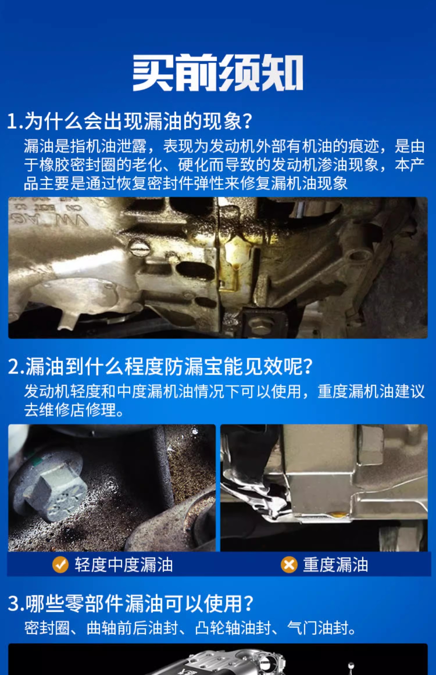 固特威发动机防漏剂机油堵漏补漏止漏剂油封修复汽车烧机油清洗剂