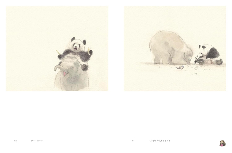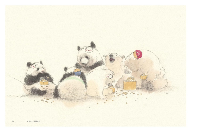 パンダ、ときどきしろくまが組み合わさる、著者のパンダ愛あふれる水彩イラスト集。