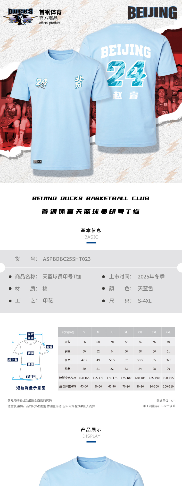 【官方正版】北京首钢俱乐部 | 天蓝球员印号T恤百搭短袖赵睿