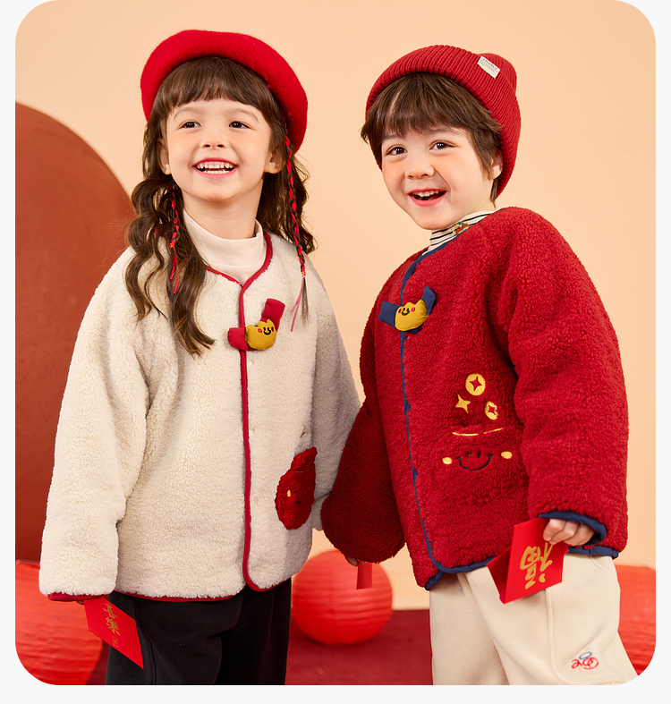 【清仓】嘟嘟家男童拜年服外套儿童冬季上衣女童宝宝新年衣服婴儿喜庆童装