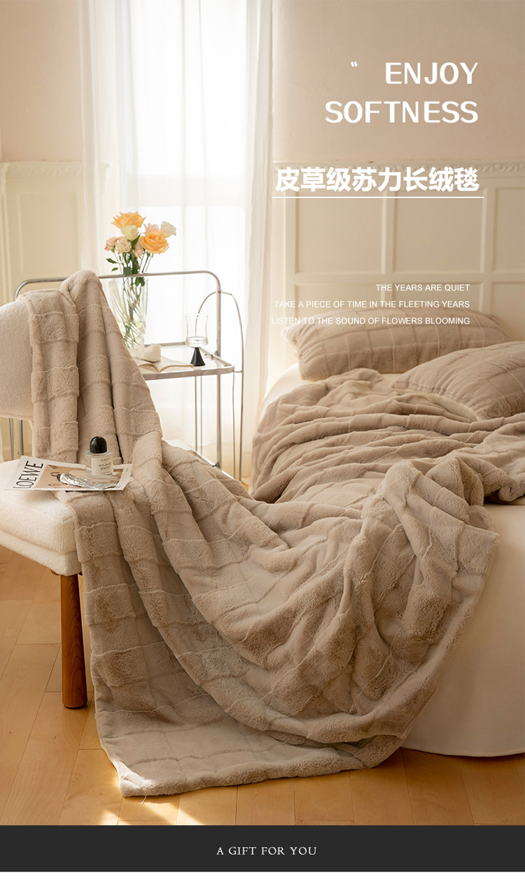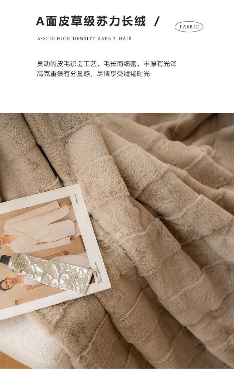【毛绒盖毯】兔毛绒盖毯秋冬加厚毛毯办公室午休毯沙发盖毯纯色新