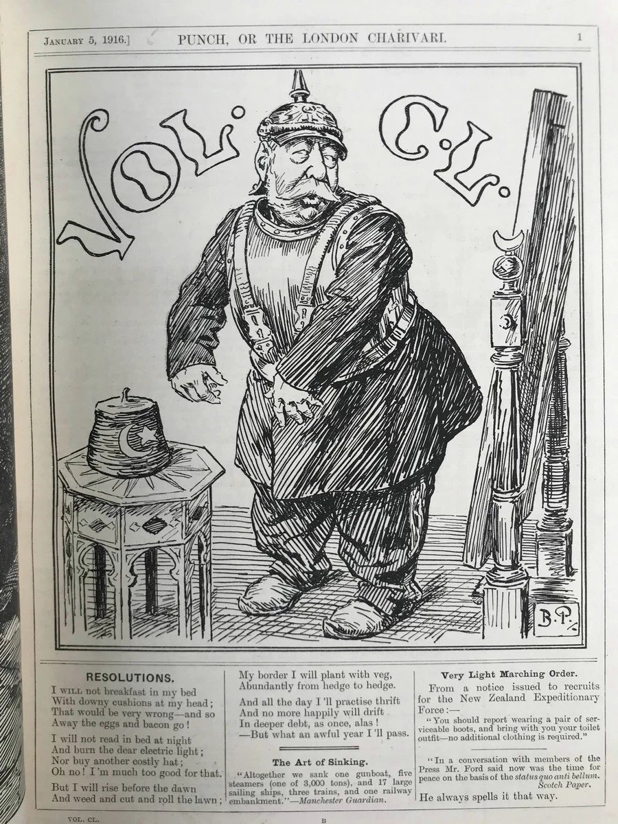 1916年1-6月 英国讽刺漫画杂志《笨拙》 数百幅插图 漆布精装16开