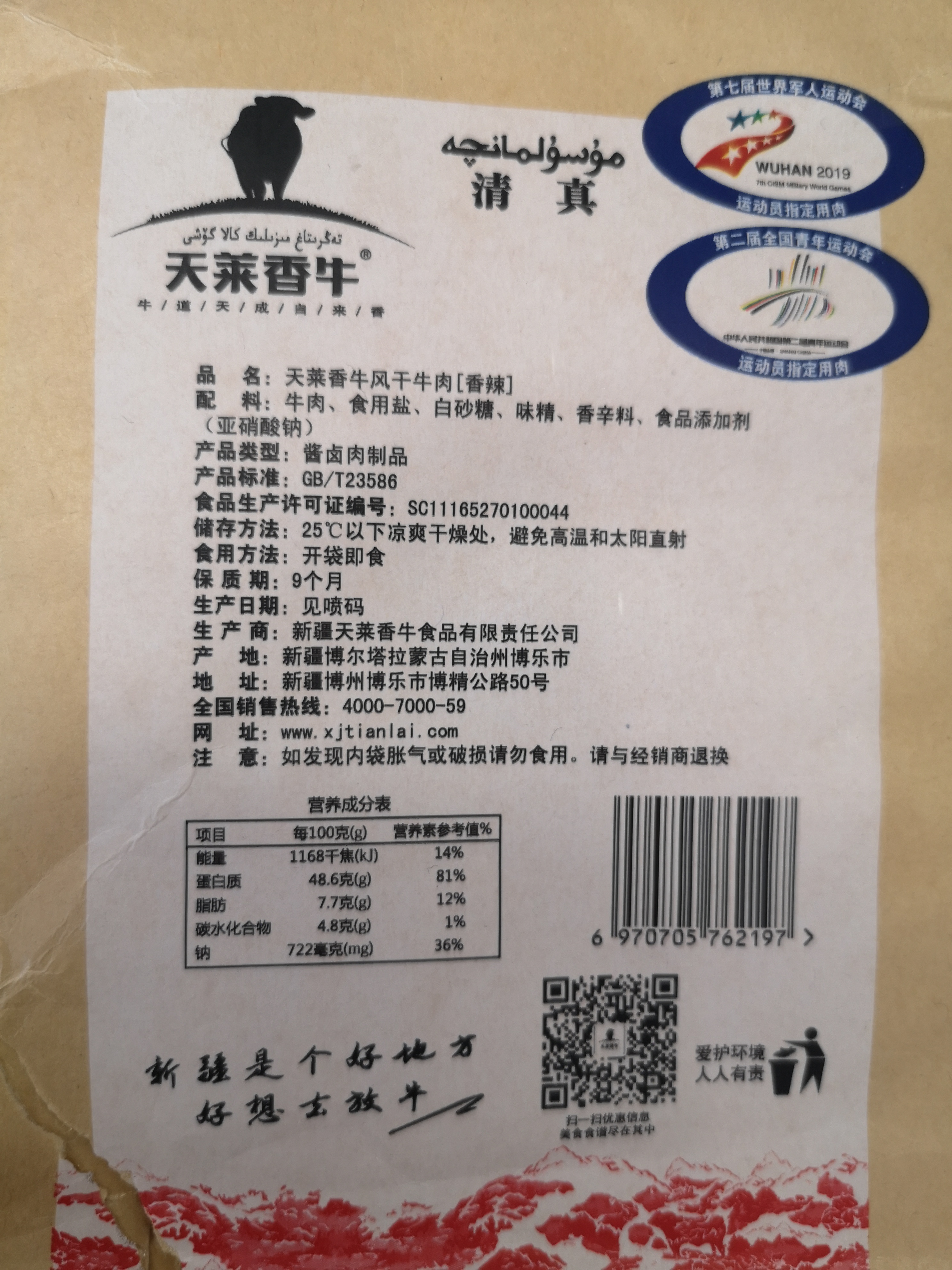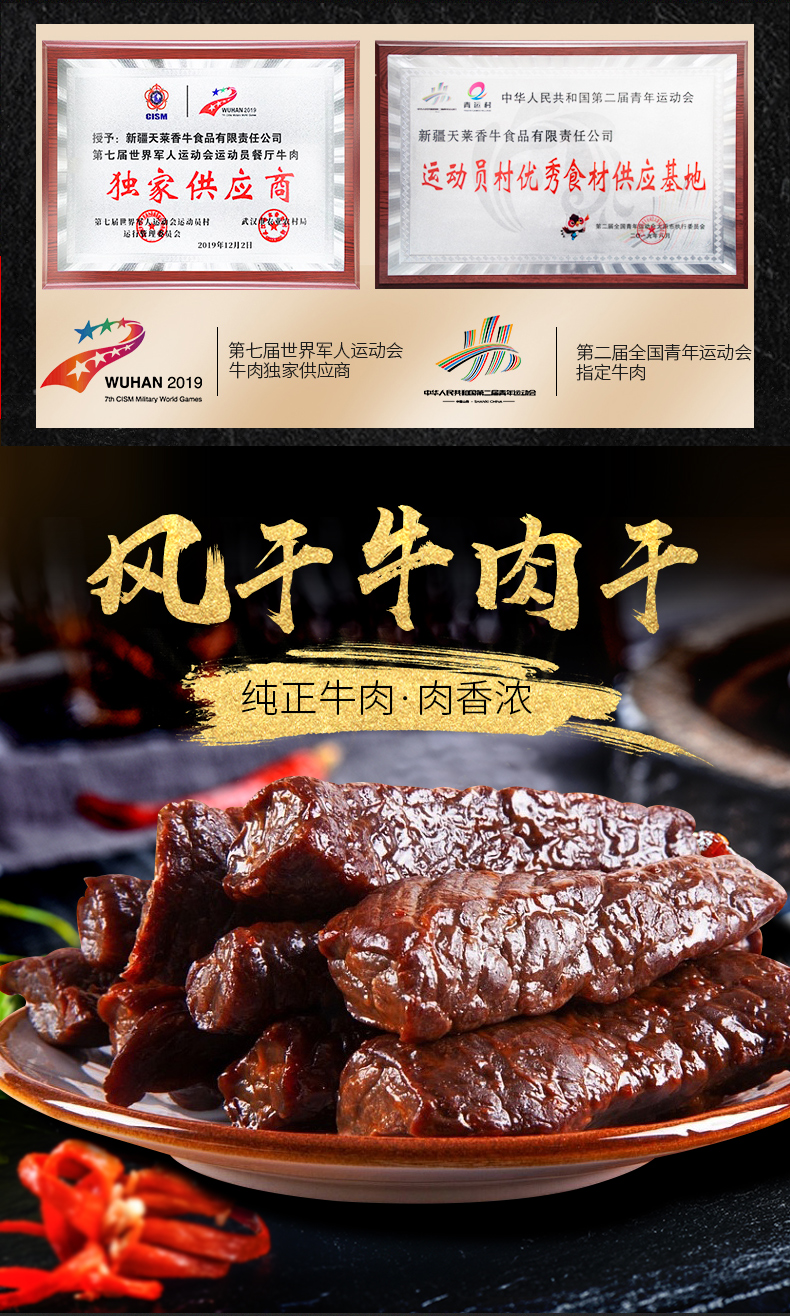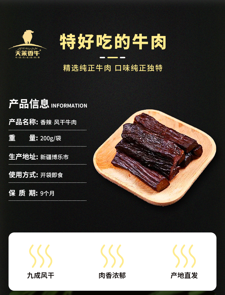 九成风干:新疆天莱香牛自然风干牛肉干200g
