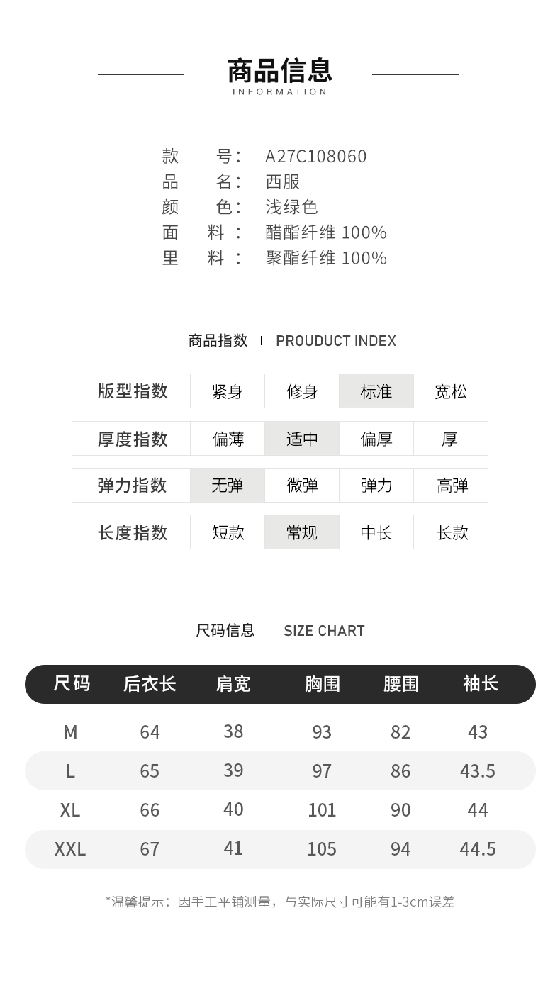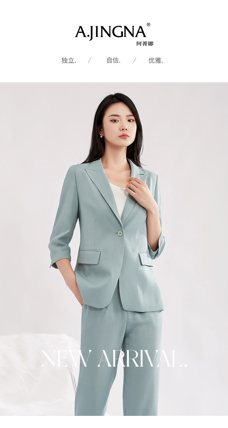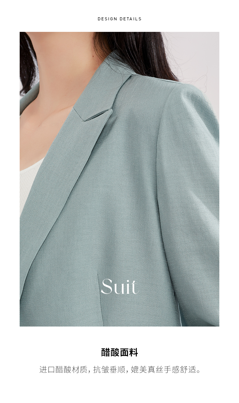 【积分兑换】阿菁娜质地轻薄醋酸纤维浅绿色西装外套A27C108060