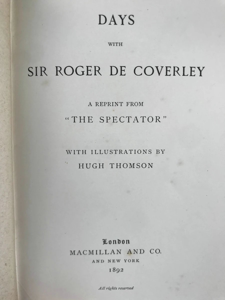1892年 与科弗利爵士在一起的日子 休·汤姆森数十幅插图 漆布精装32开