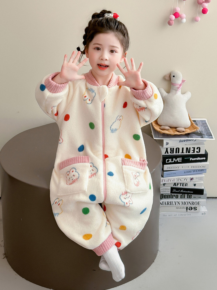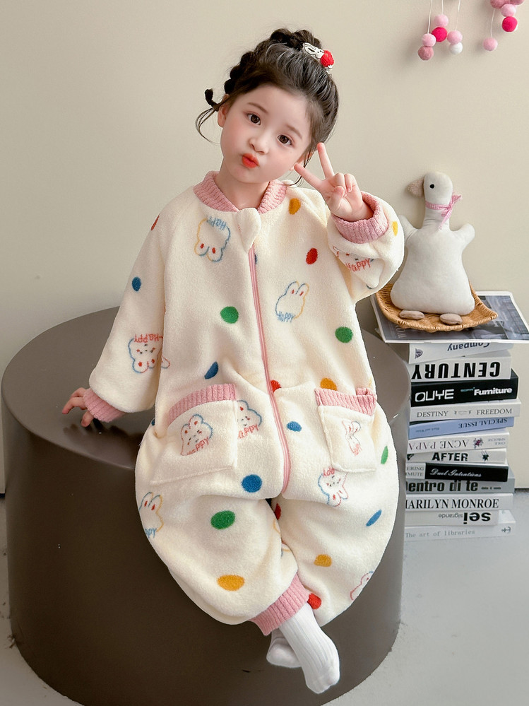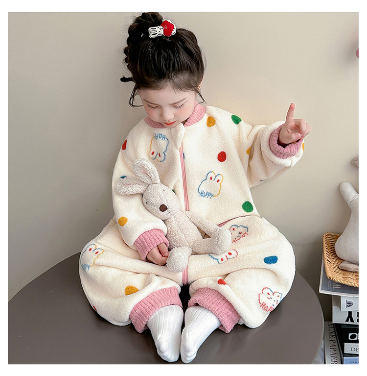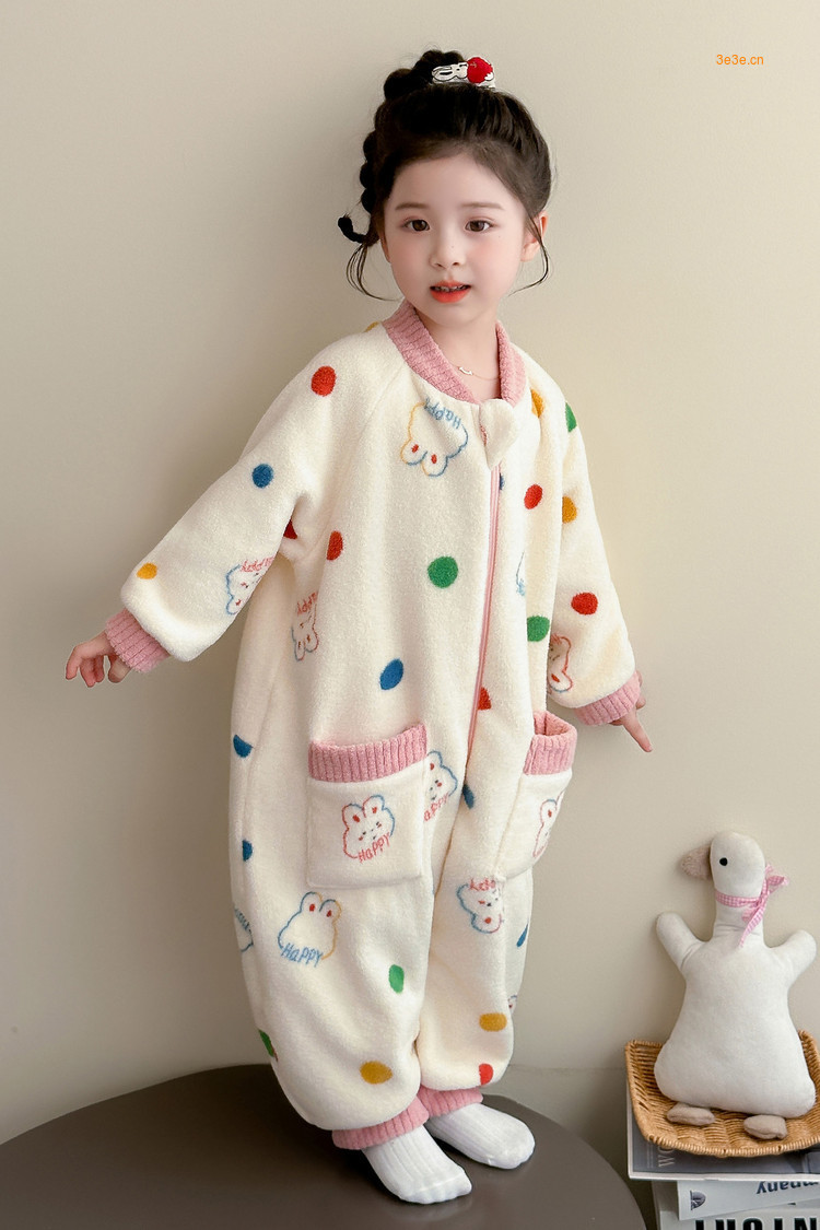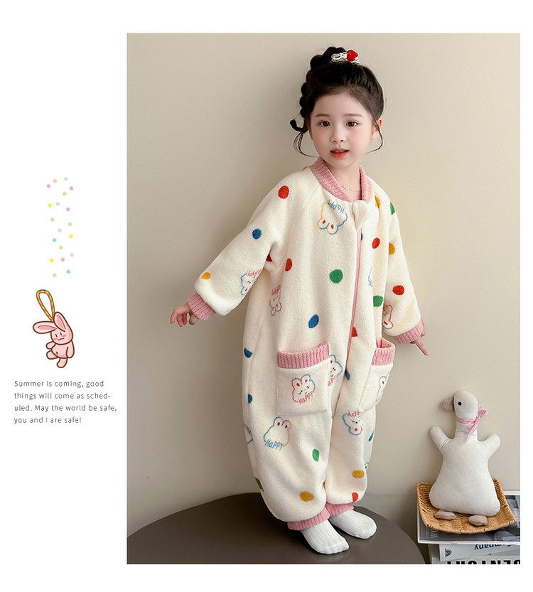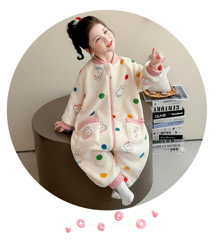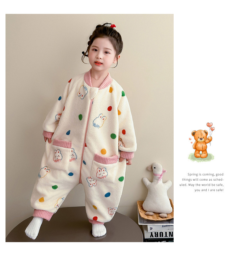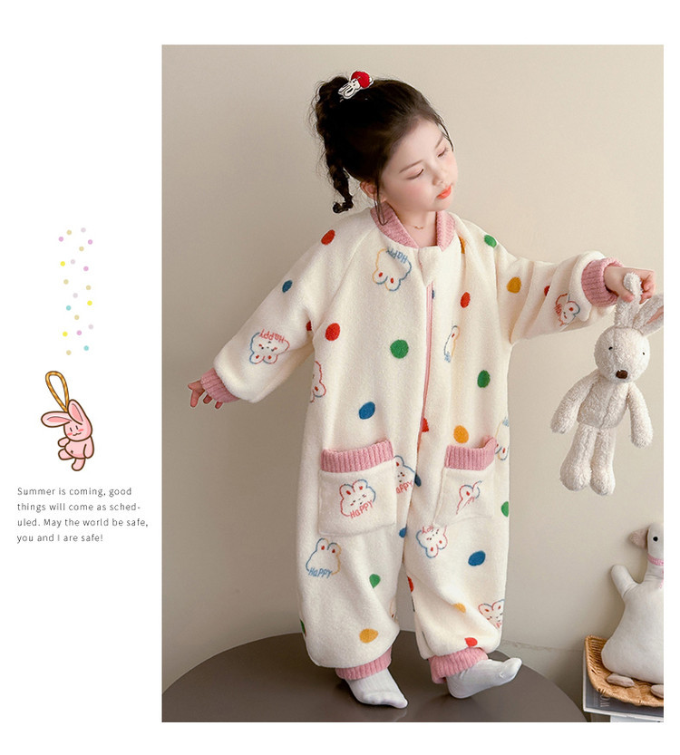 【甄选舒适亲肤面料❗️卡通印花俏皮可爱】女童连体睡衣秋冬法兰绒儿童珊瑚绒女孩防着凉冬季女宝宝连身睡袋。ja