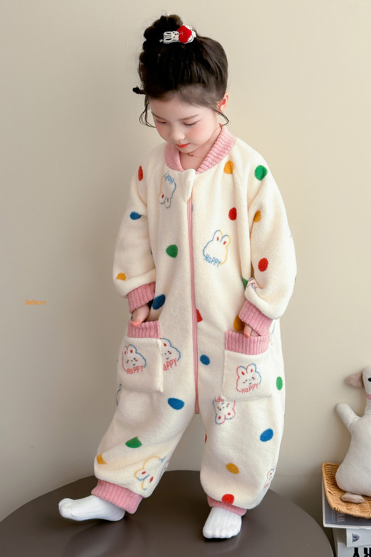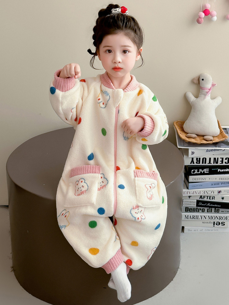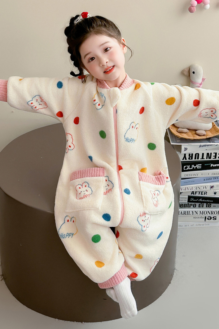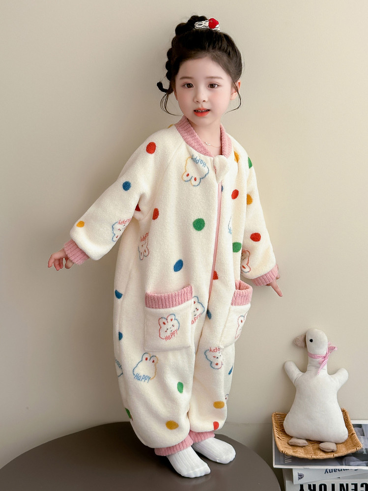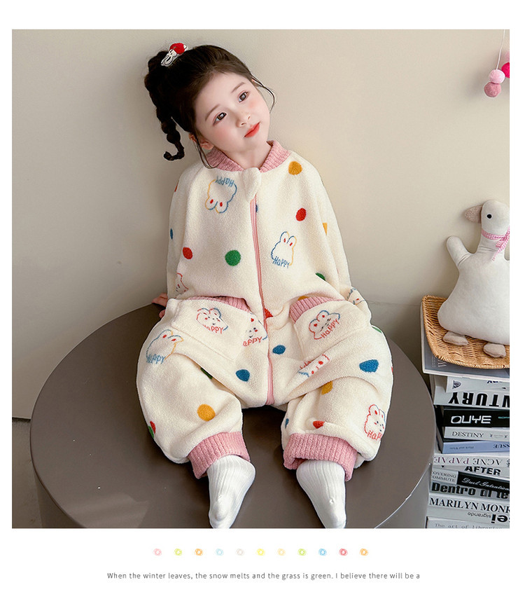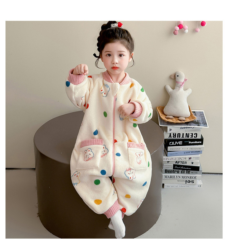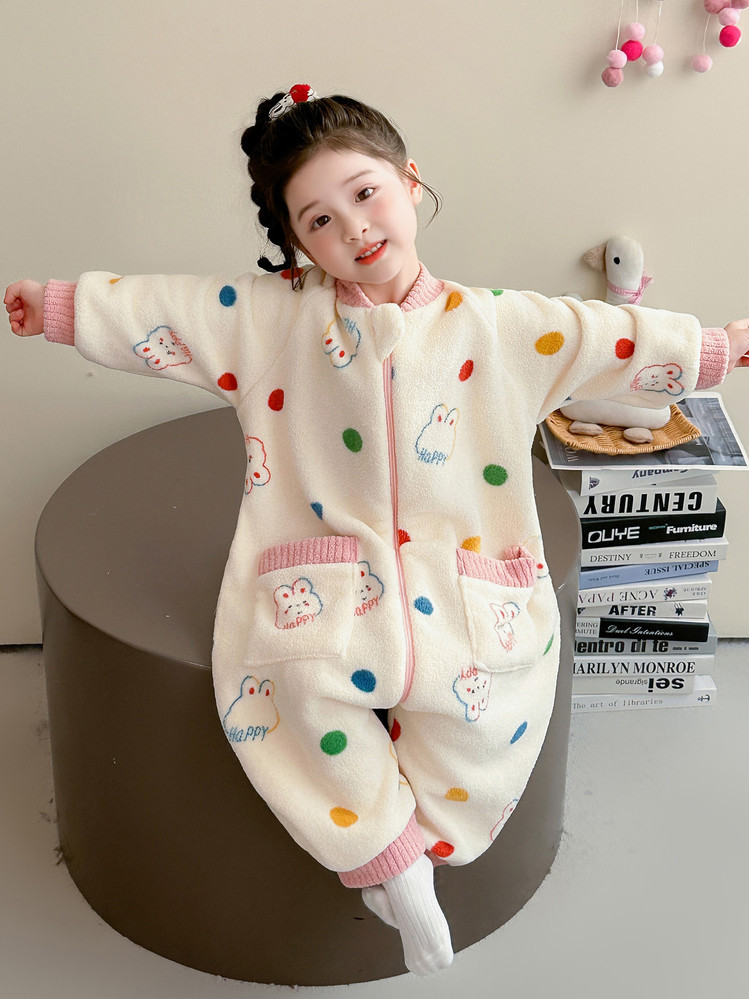 【甄选舒适亲肤面料❗️卡通印花俏皮可爱】女童连体睡衣秋冬法兰绒儿童珊瑚绒女孩防着凉冬季女宝宝连身睡袋。ja