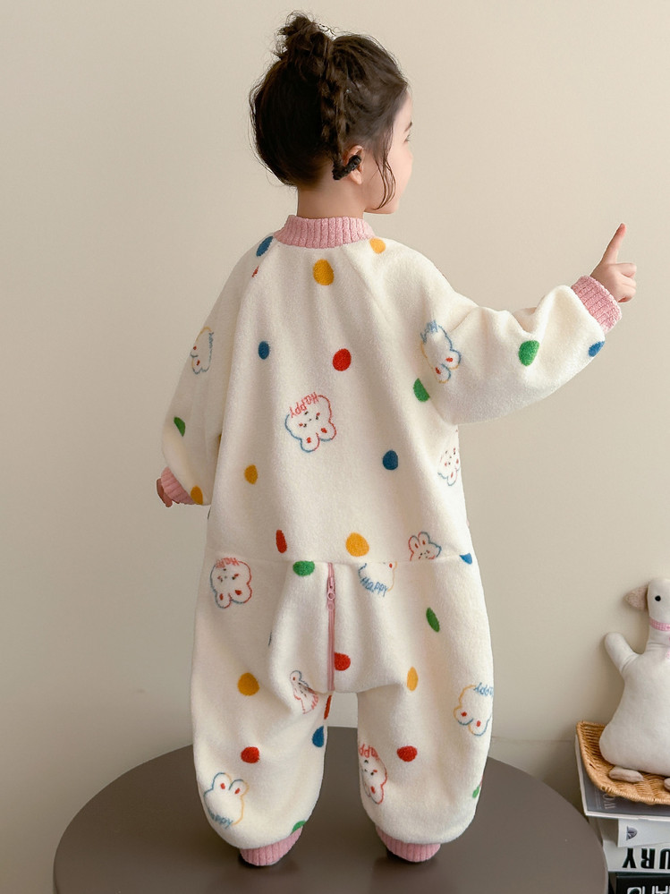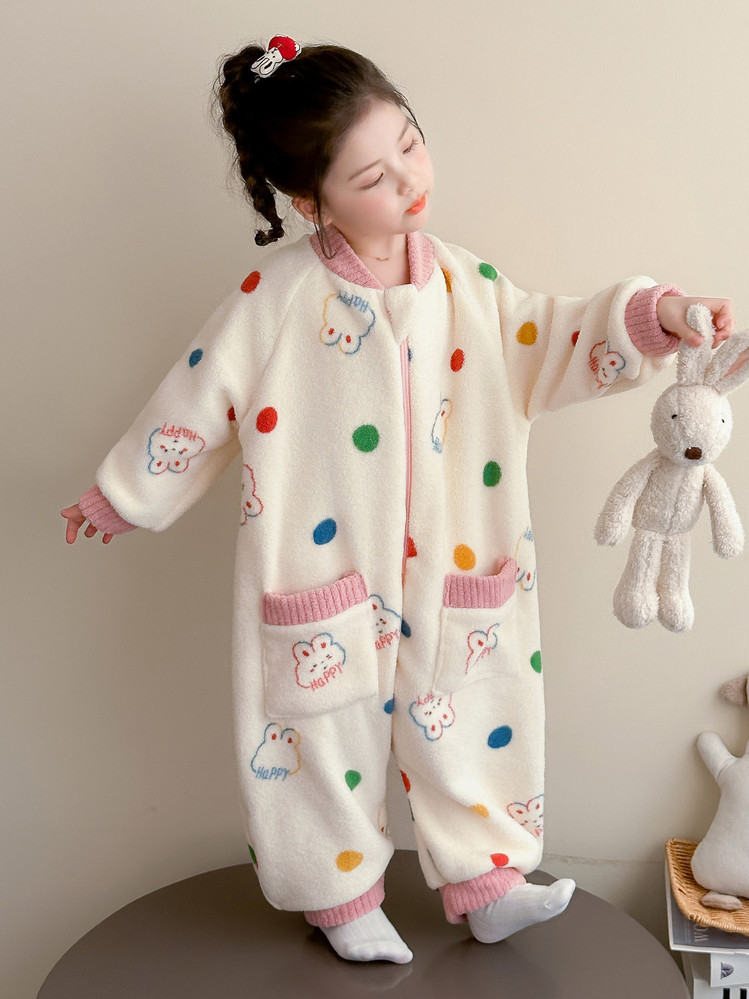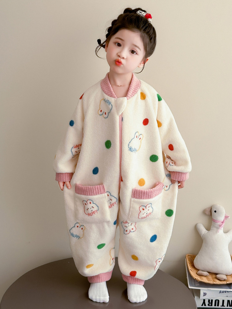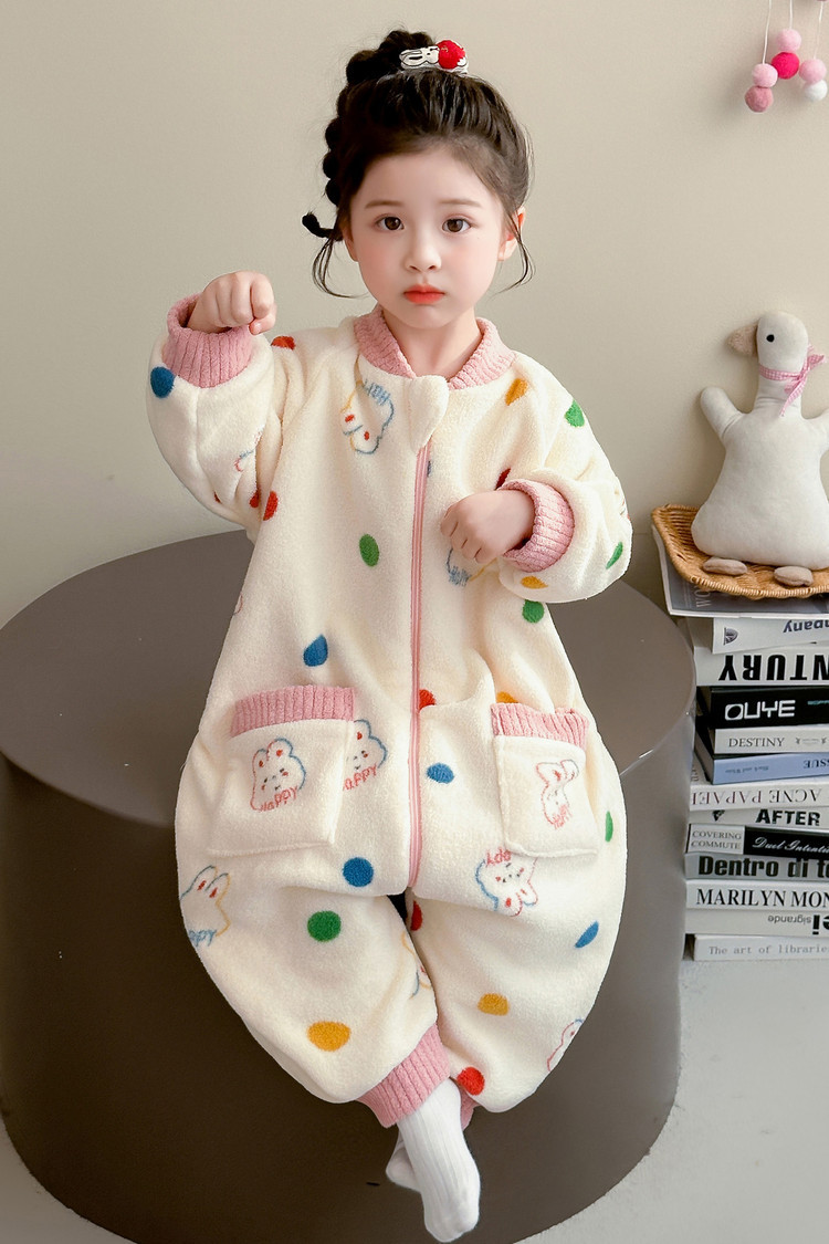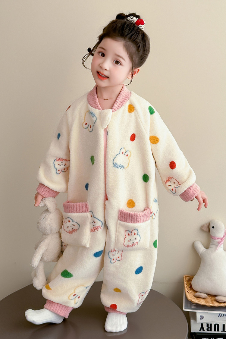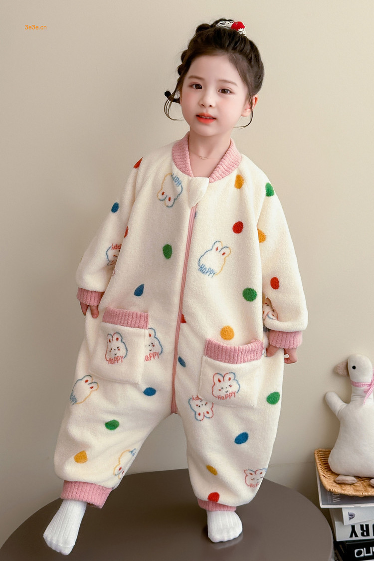 【甄选舒适亲肤面料❗️卡通印花俏皮可爱】女童连体睡衣秋冬法兰绒儿童珊瑚绒女孩防着凉冬季女宝宝连身睡袋。ja