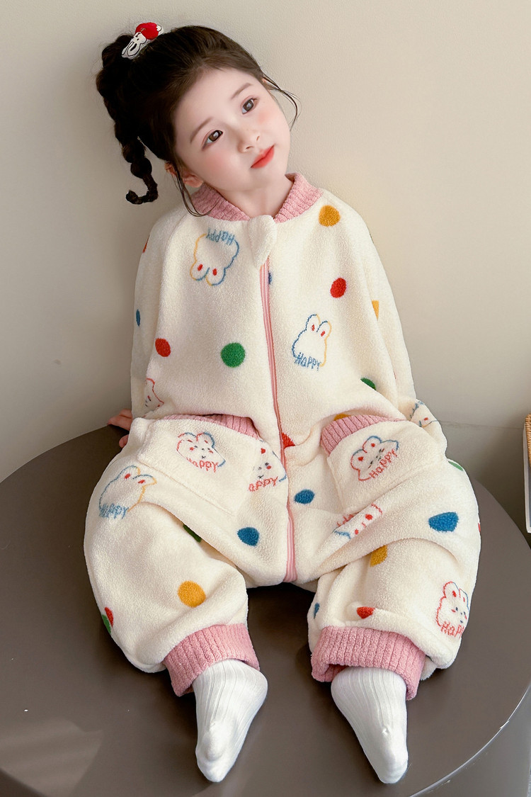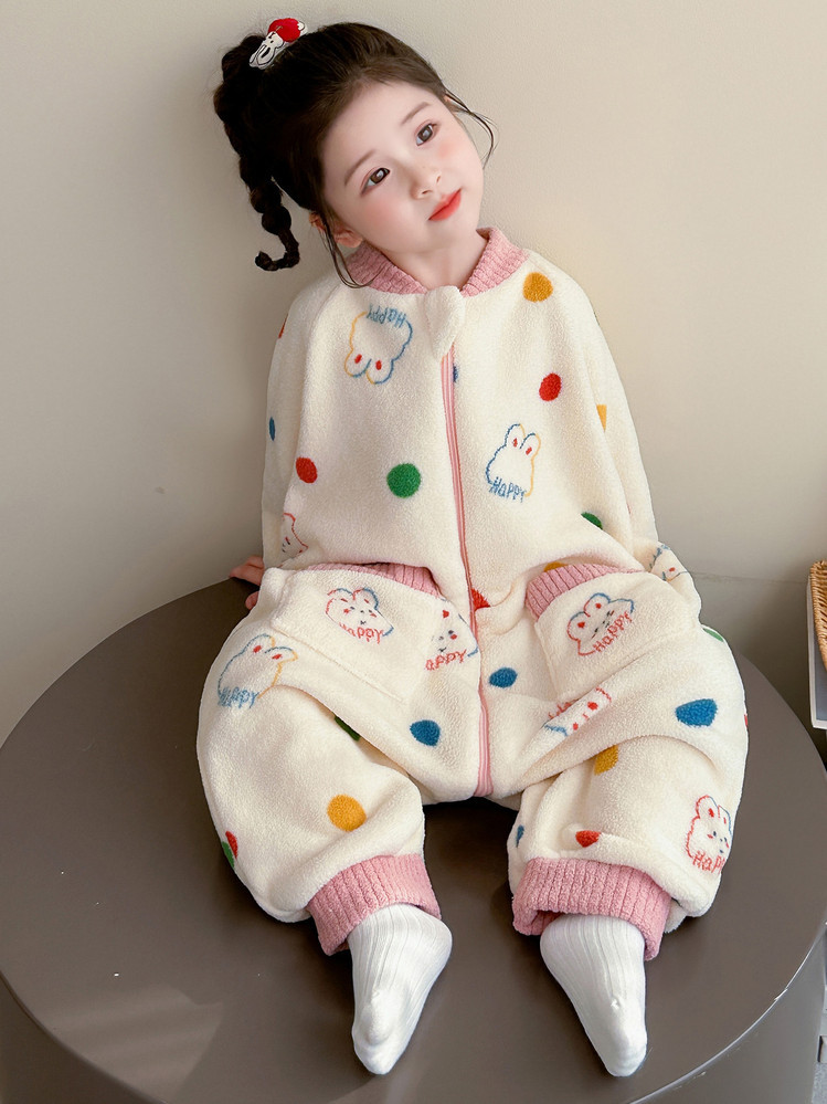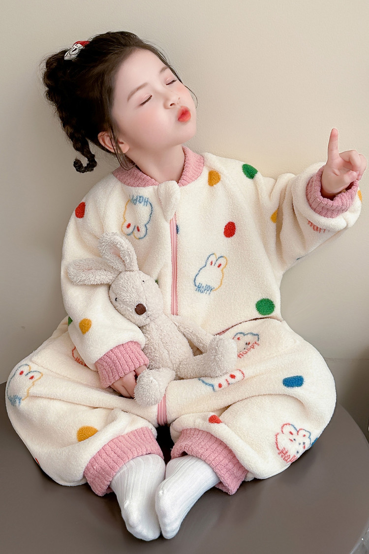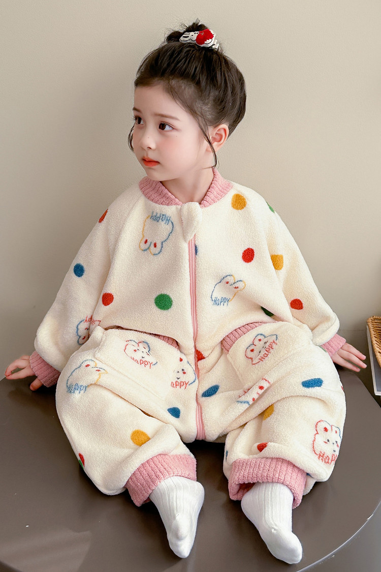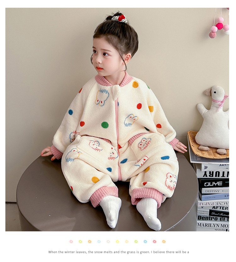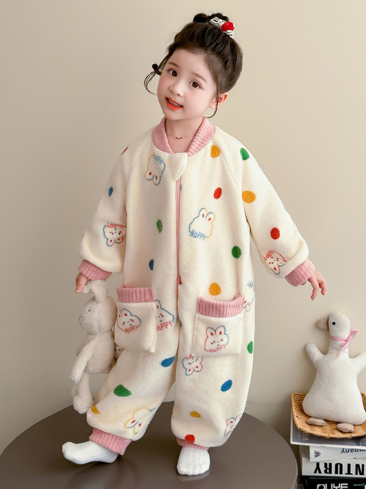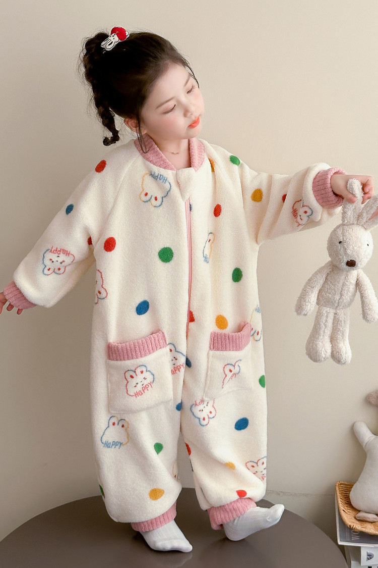 【甄选舒适亲肤面料❗️卡通印花俏皮可爱】女童连体睡衣秋冬法兰绒儿童珊瑚绒女孩防着凉冬季女宝宝连身睡袋。ja