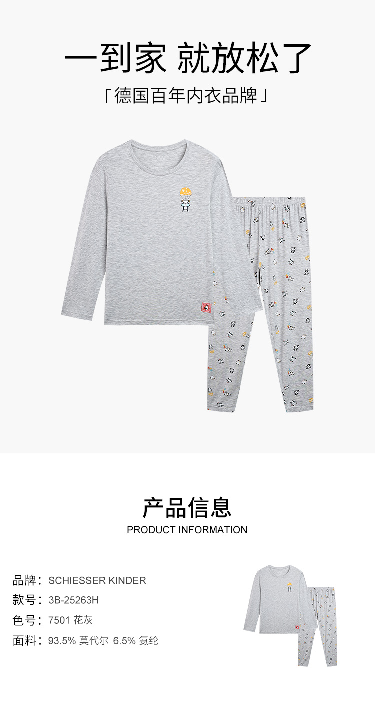 【熊猫乐园莫代尔】SCHIESSER德国舒雅男童可爱熊猫乐园系列莫代尔面料180G 长袖长裤家居套装3B/25263H