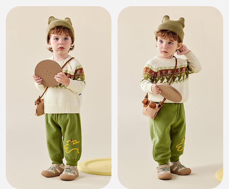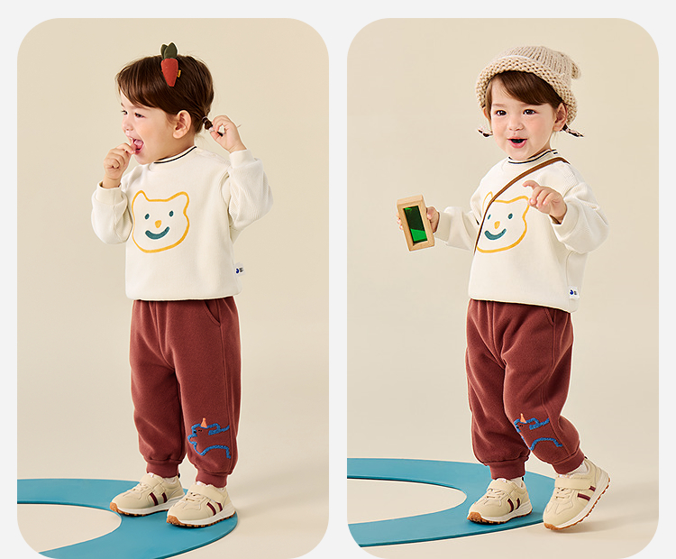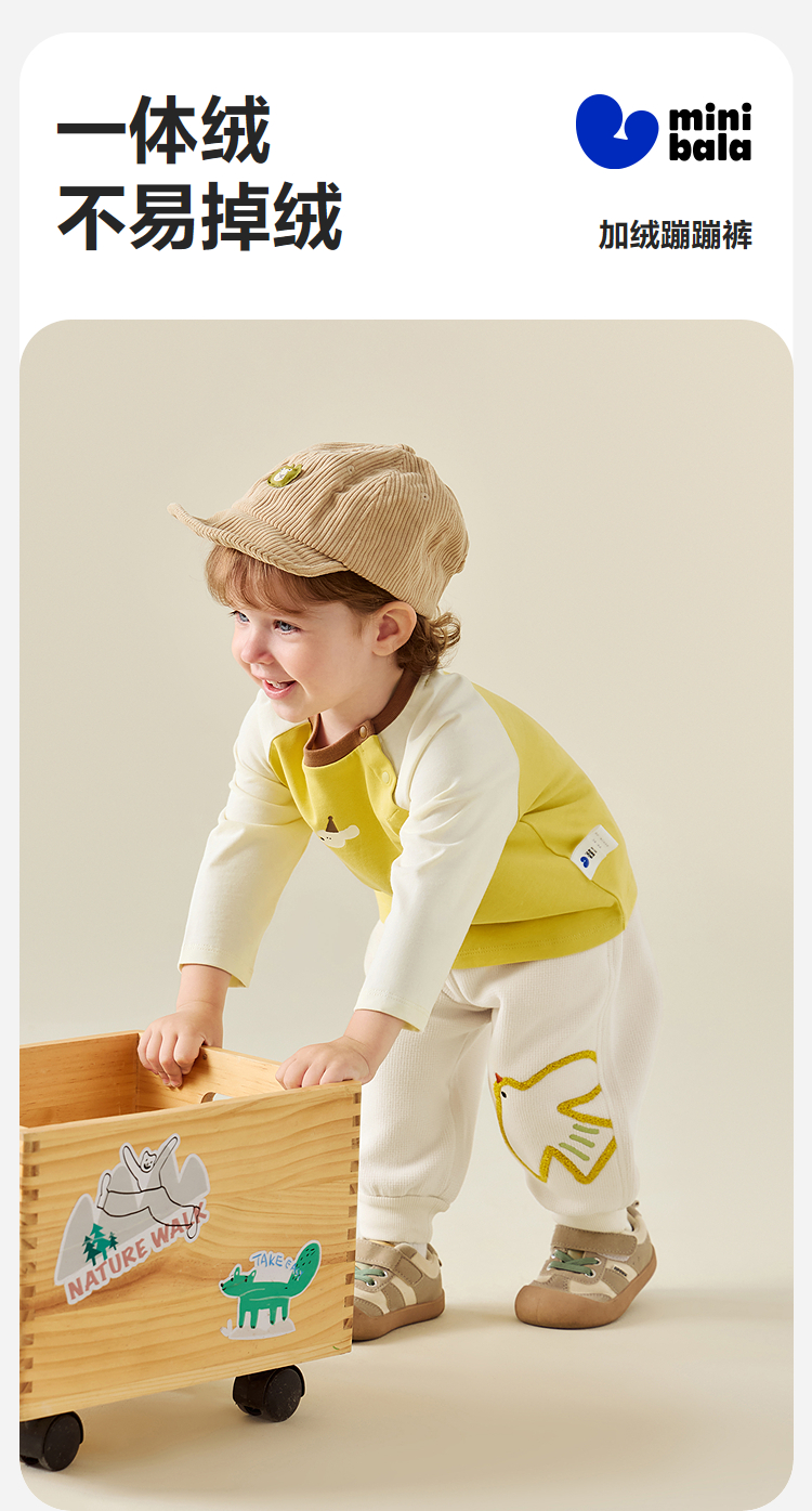 迷你巴拉男女童摇粒绒裤子婴儿卫裤初春保暖宝宝加绒长裤棉裤