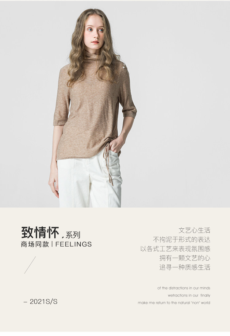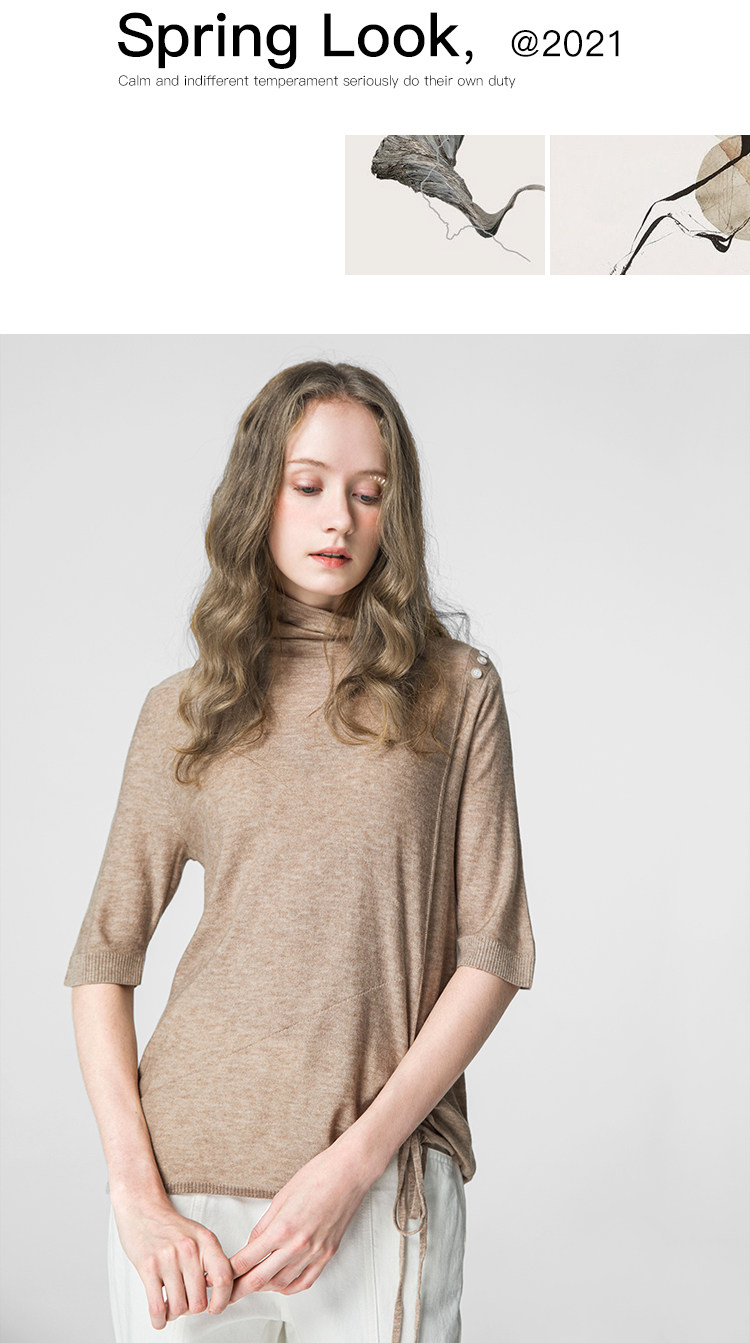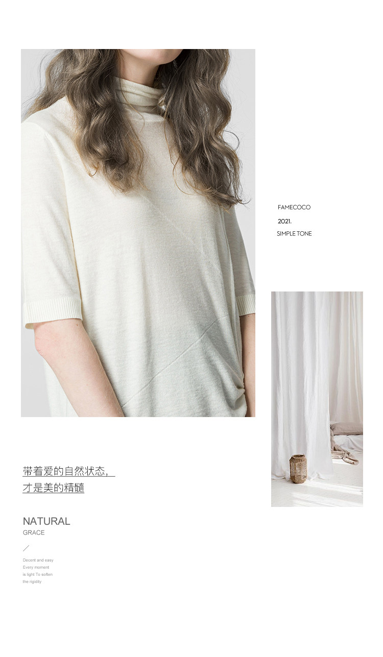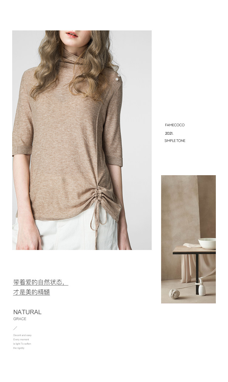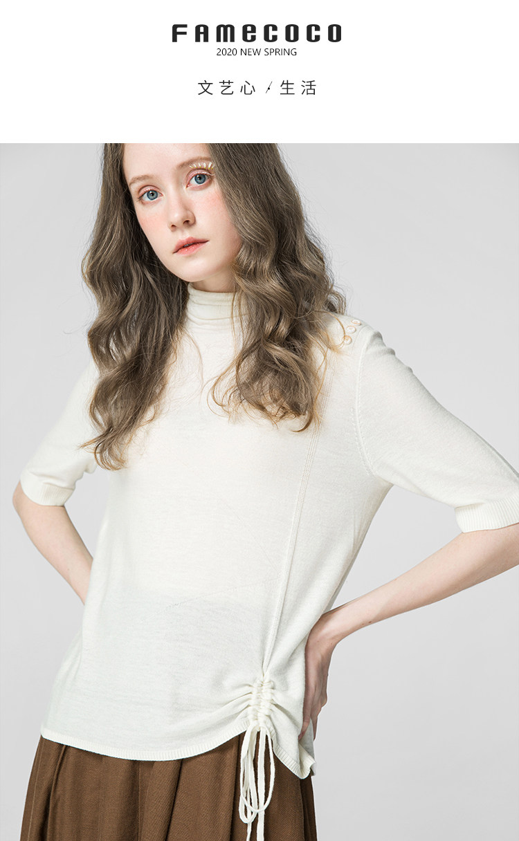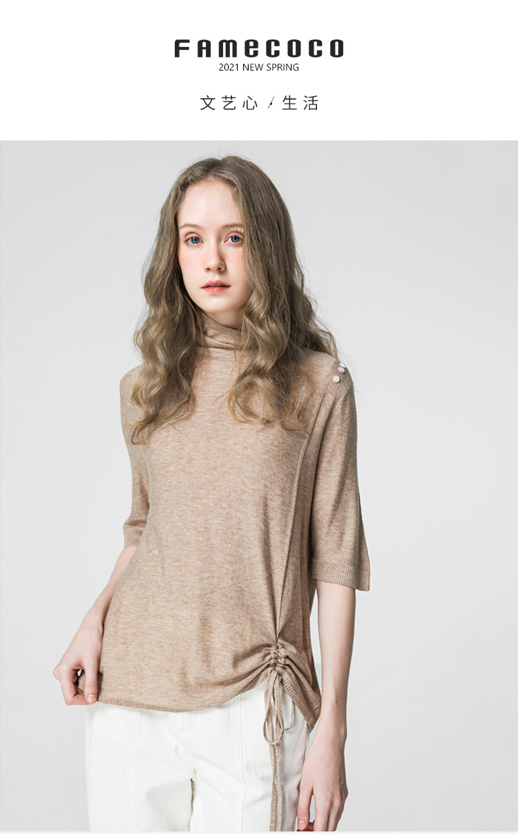 famecoco范可儿打底羊毛衫女堆堆领针织上衣F211DB003
