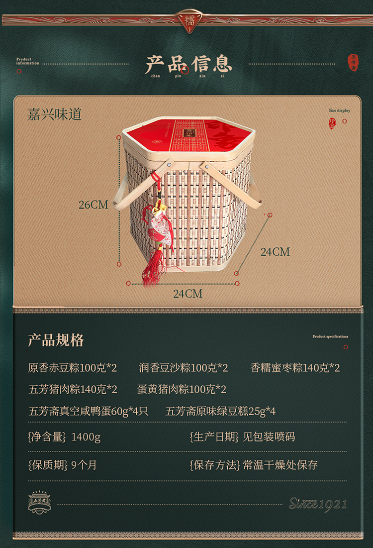 【五芳斋】嘉兴味道粽子礼篮1400g 包邮直发