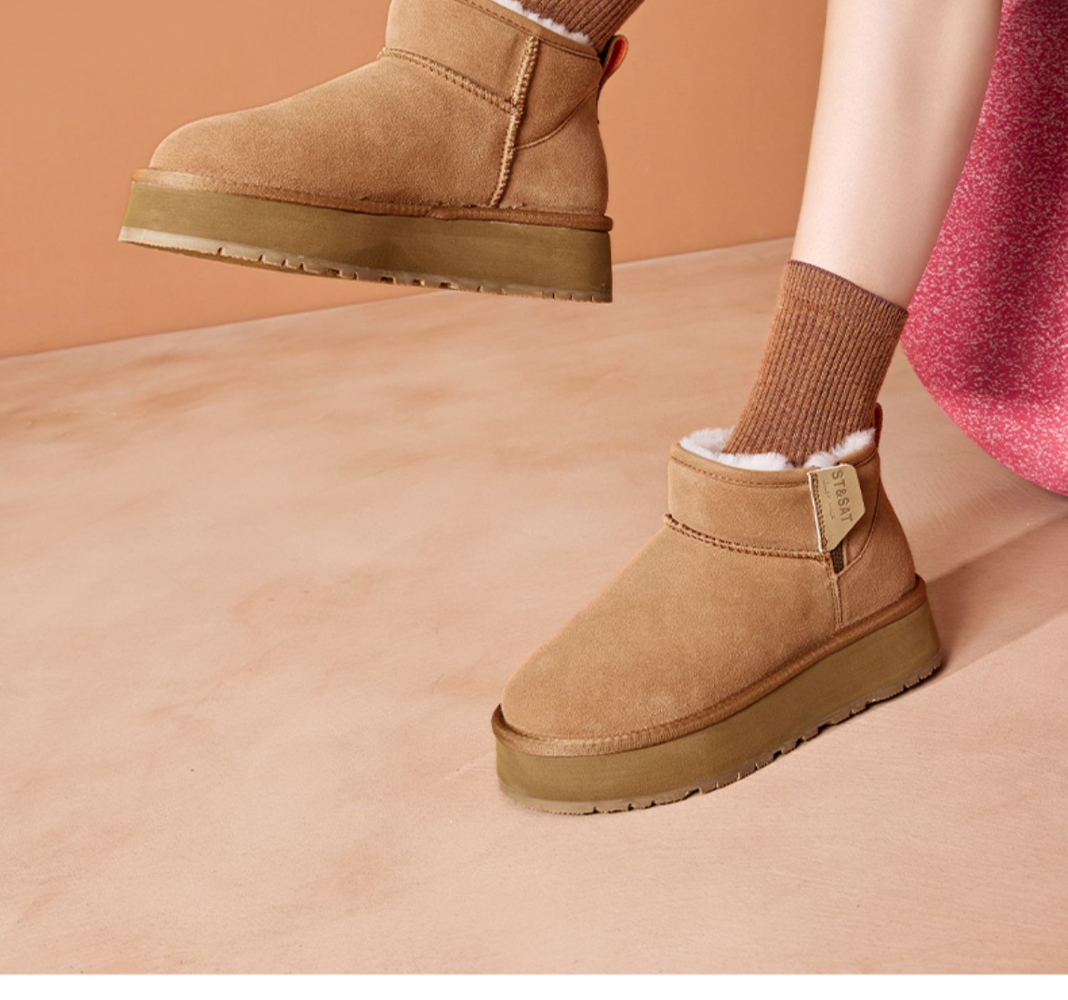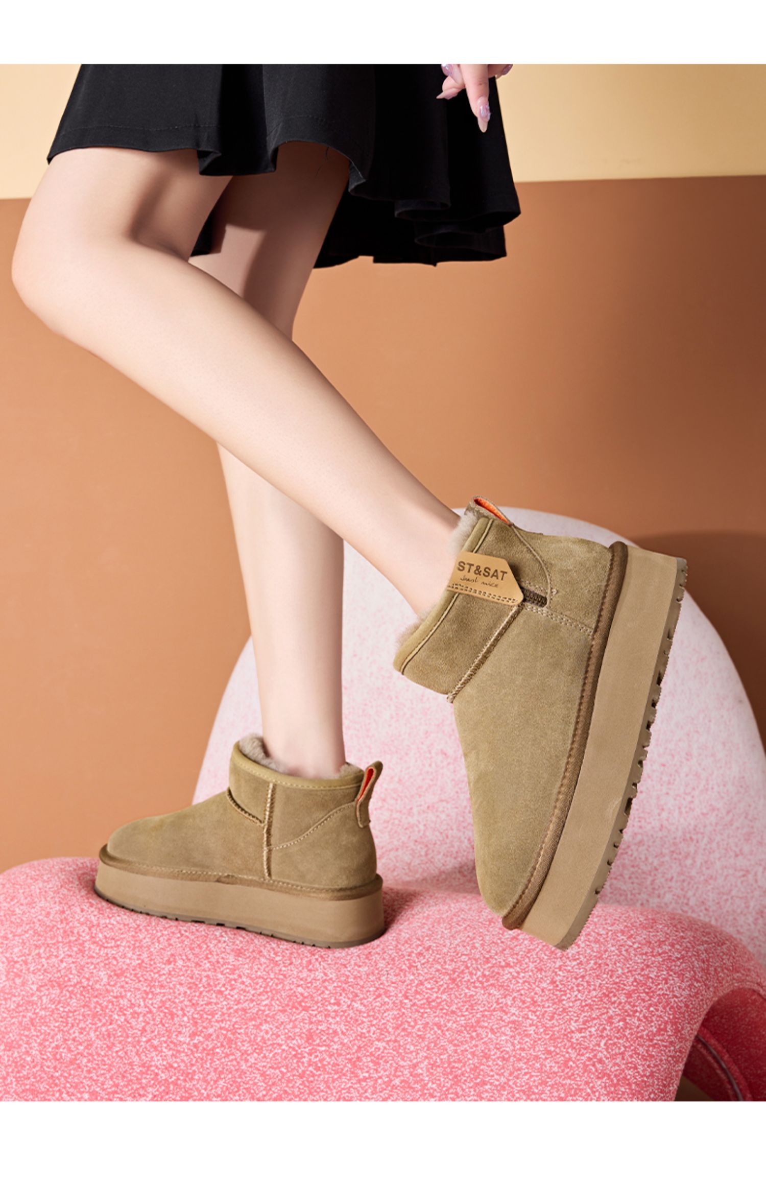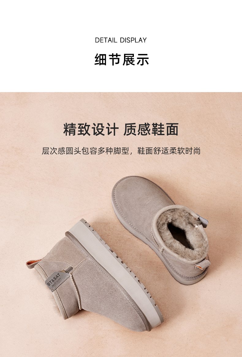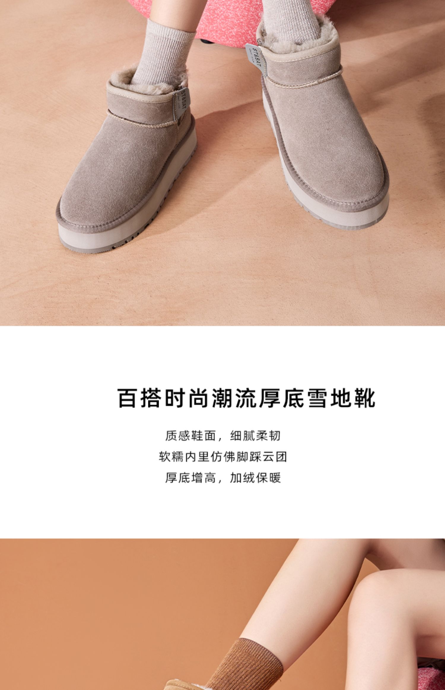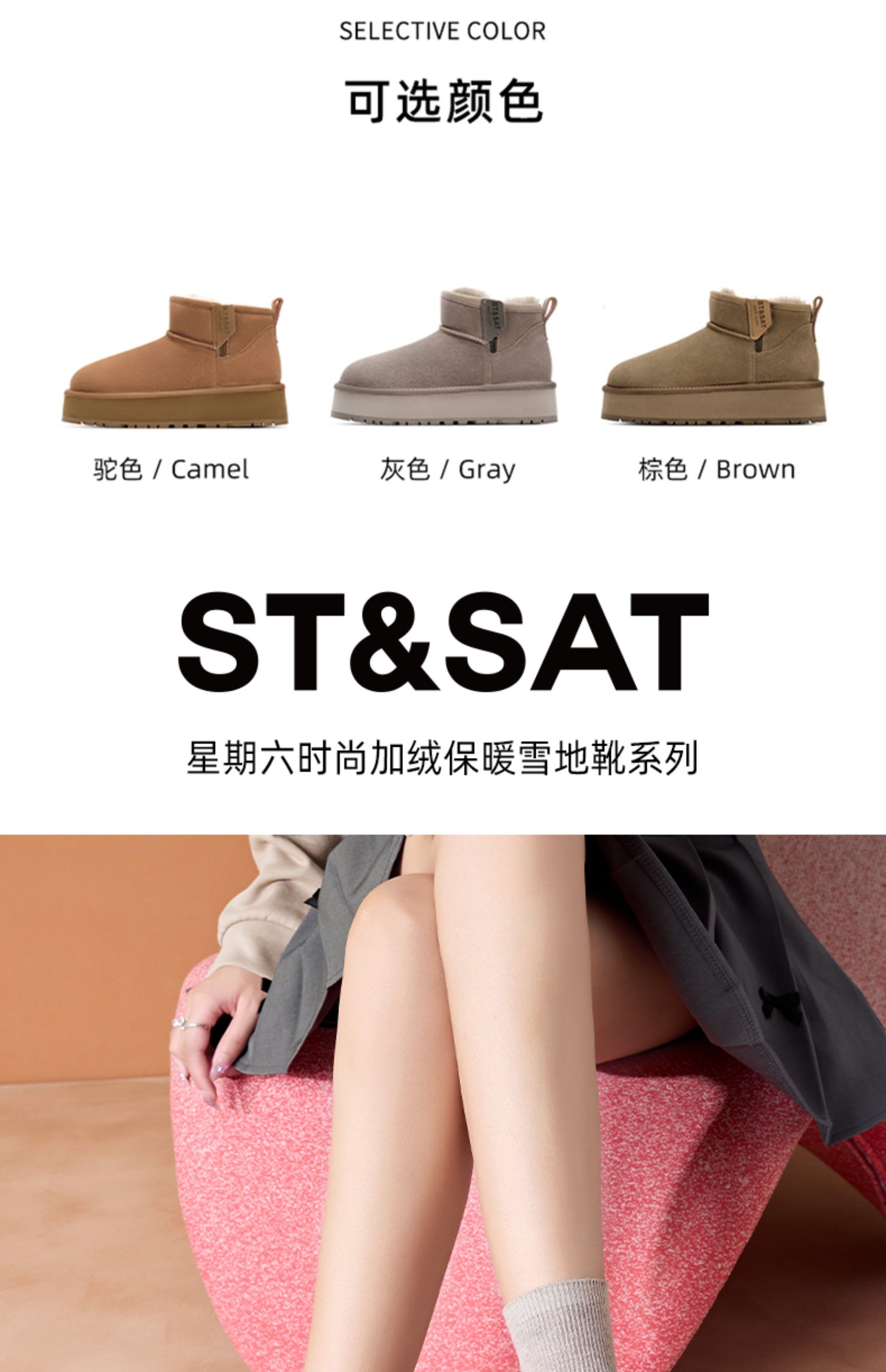 星期六经典百搭羊毛保暖加绒厚底雪地靴SSC4118C03