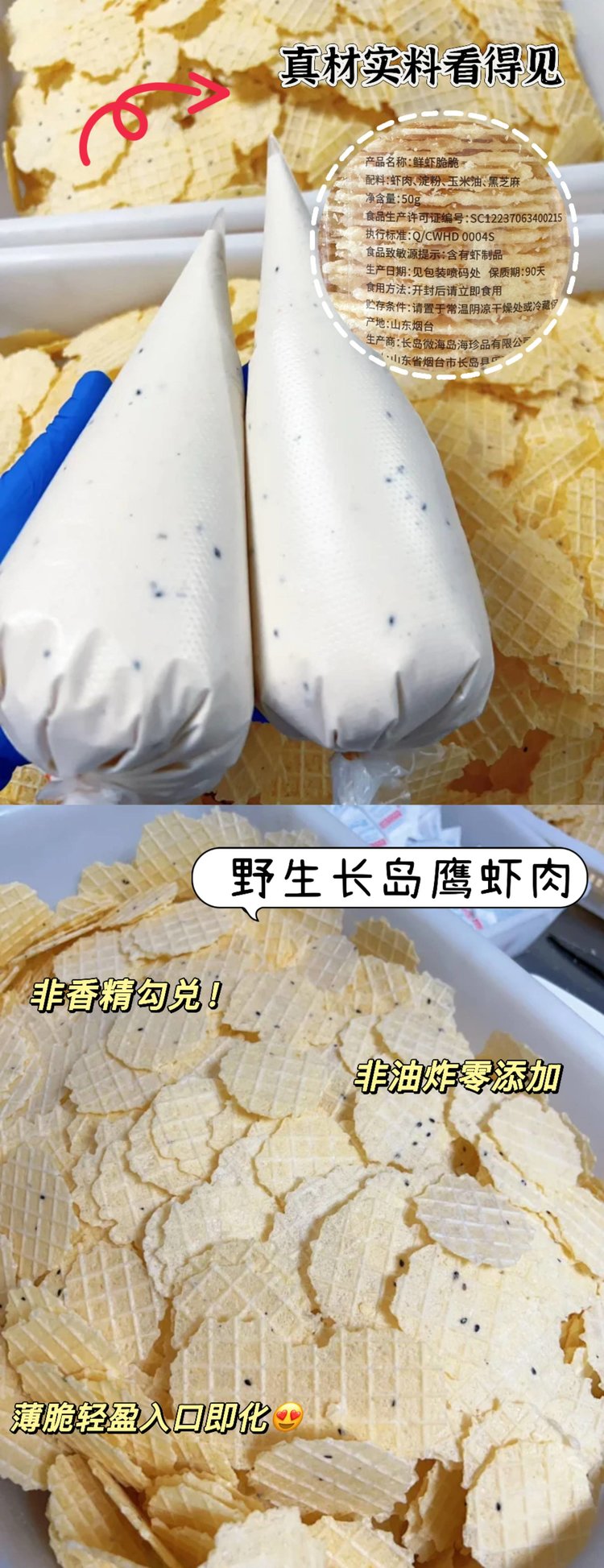 【配料表】虾肉、淀粉、玉米油、黑芝麻