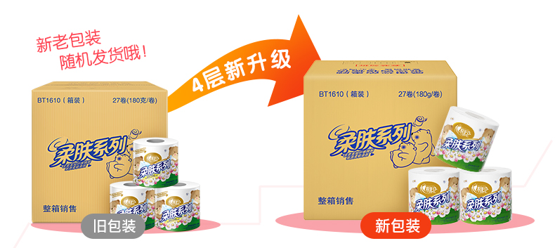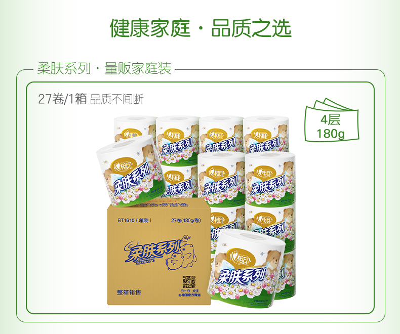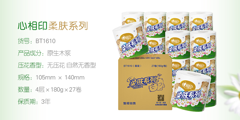 心相印卷纸 柔肤系列卫生纸巾3层180g*27卷筒纸厕纸(整箱销售)
