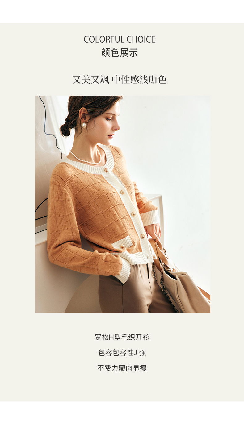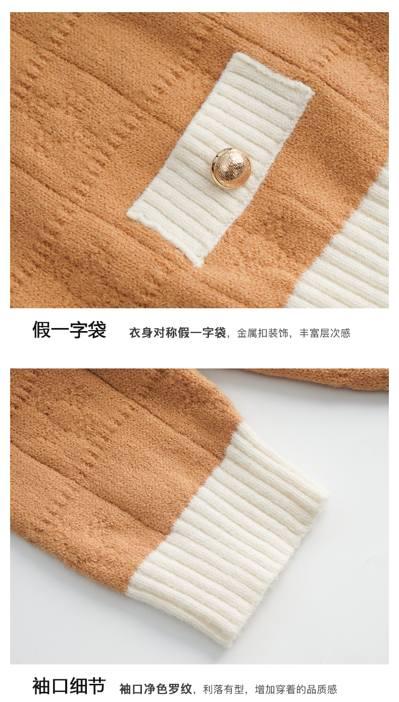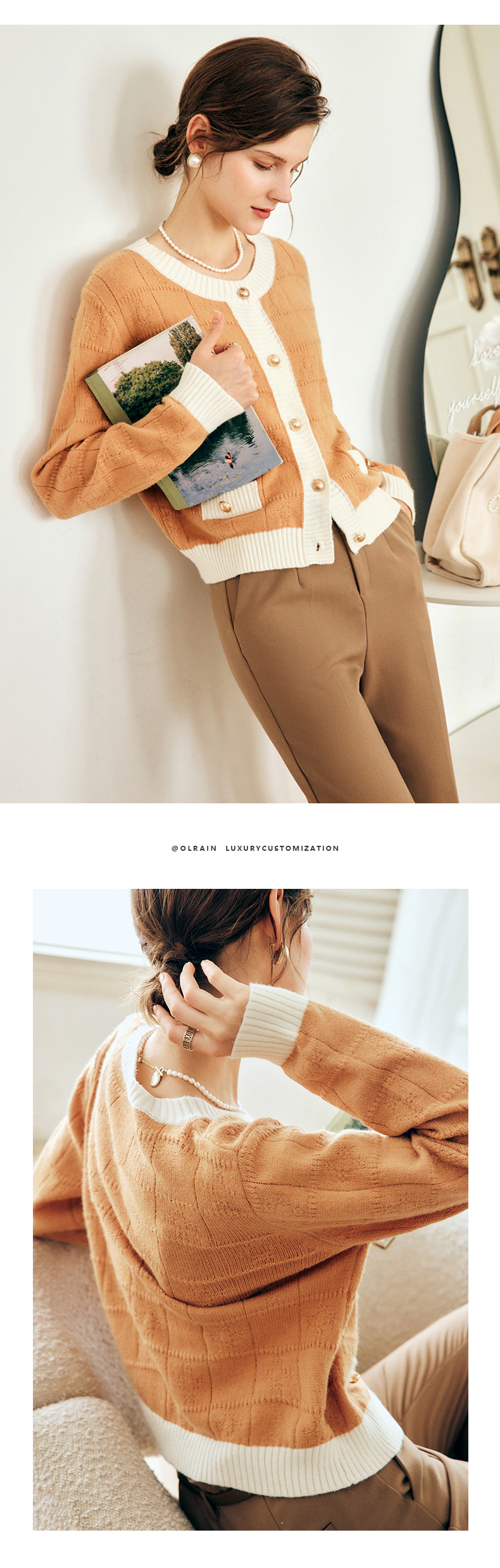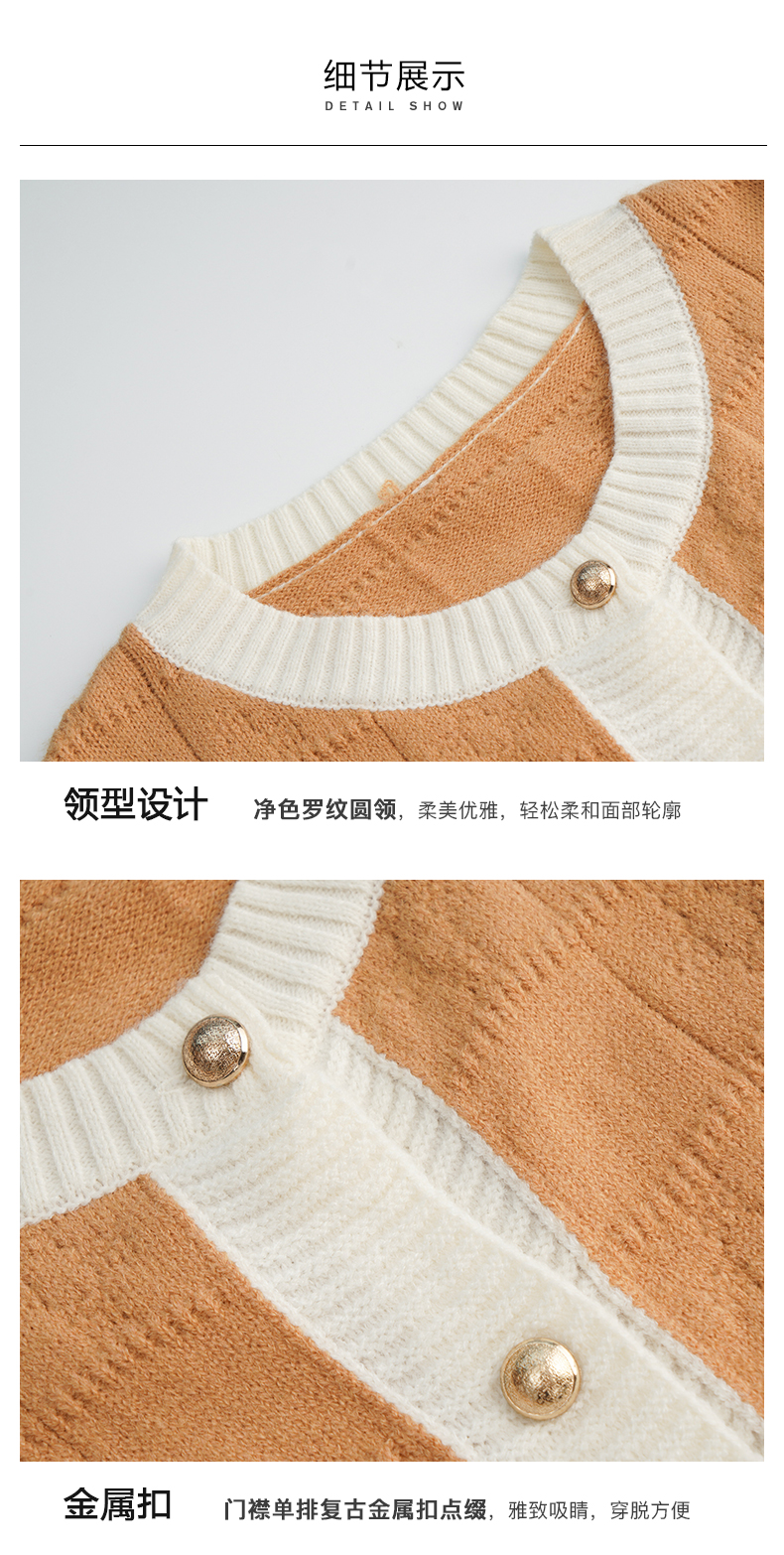 OLrain欧芮儿法式小香风针织开衫女秋季2022新款气质撞色毛衣外套