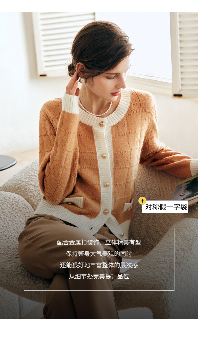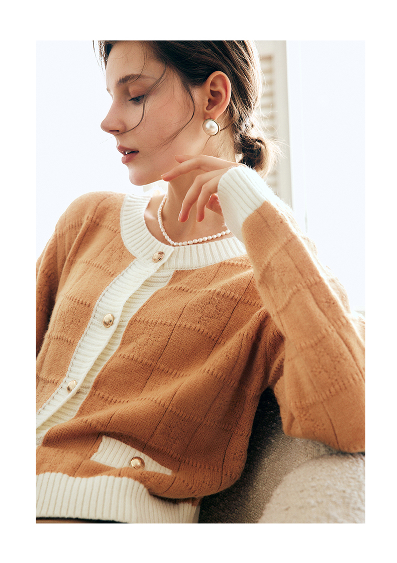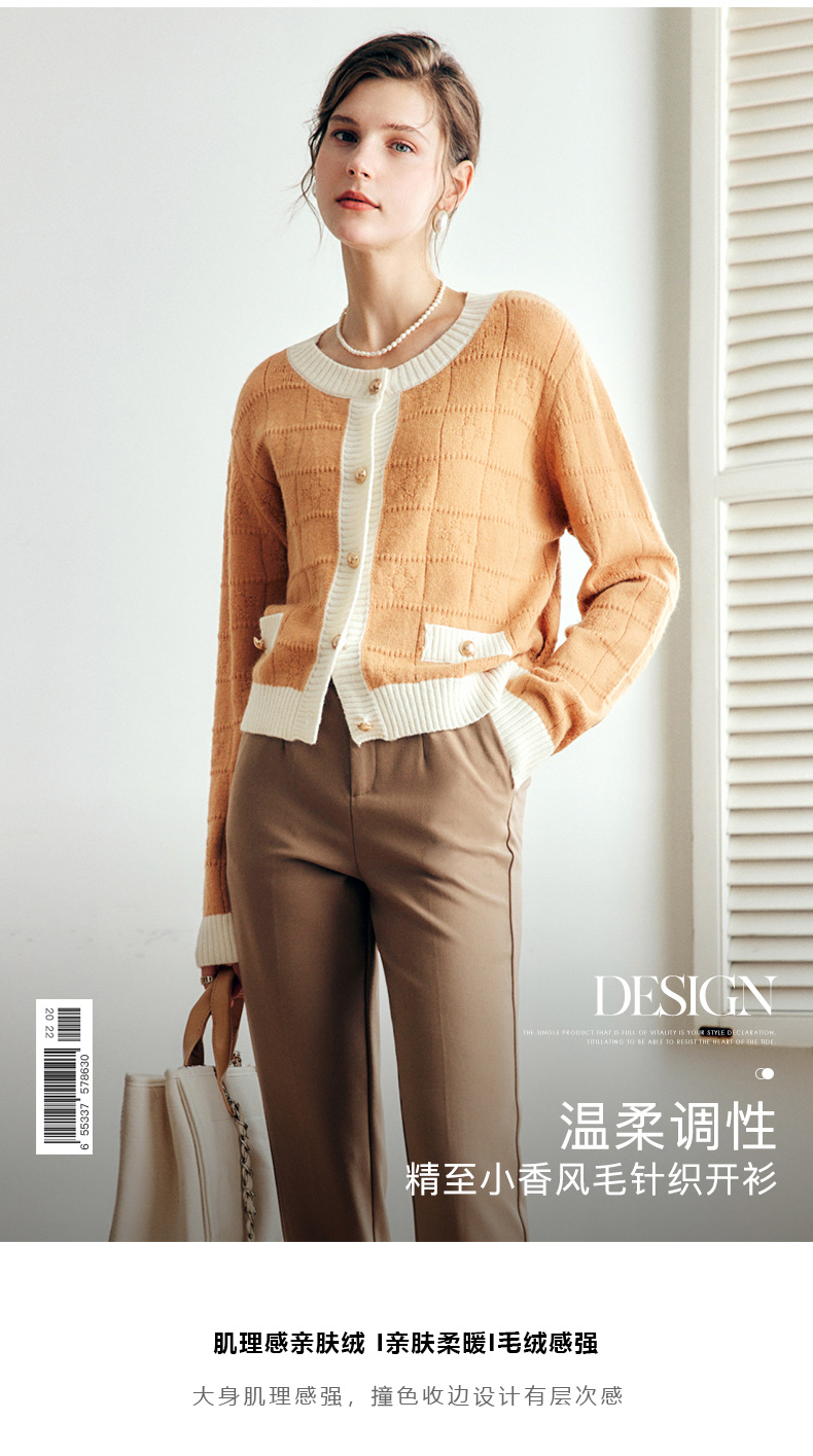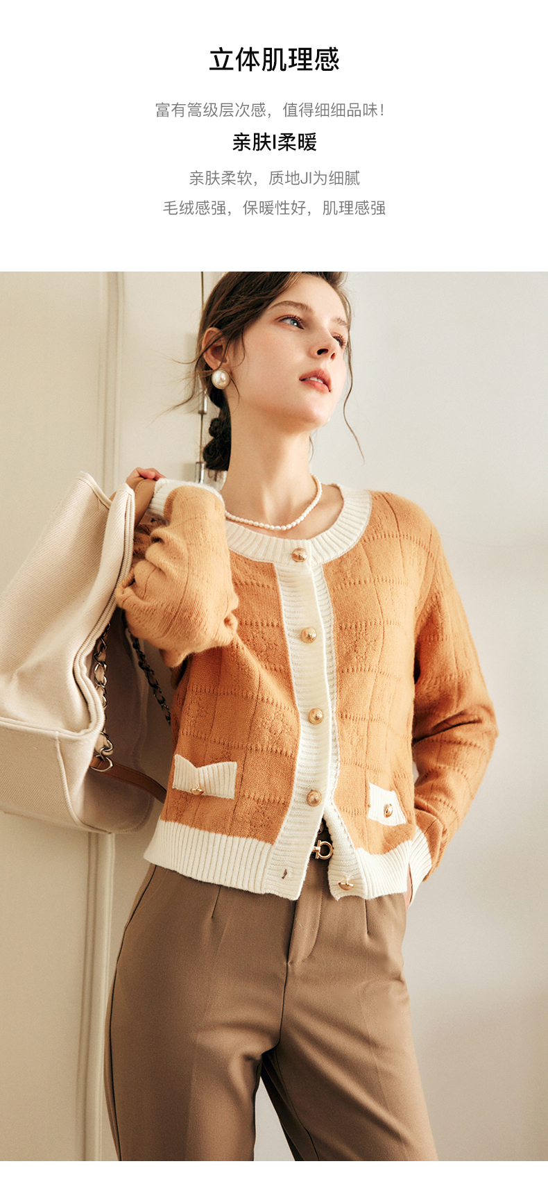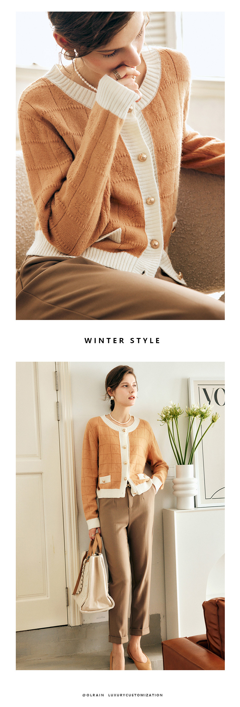 OLrain欧芮儿法式小香风针织开衫女秋季2022新款气质撞色毛衣外套