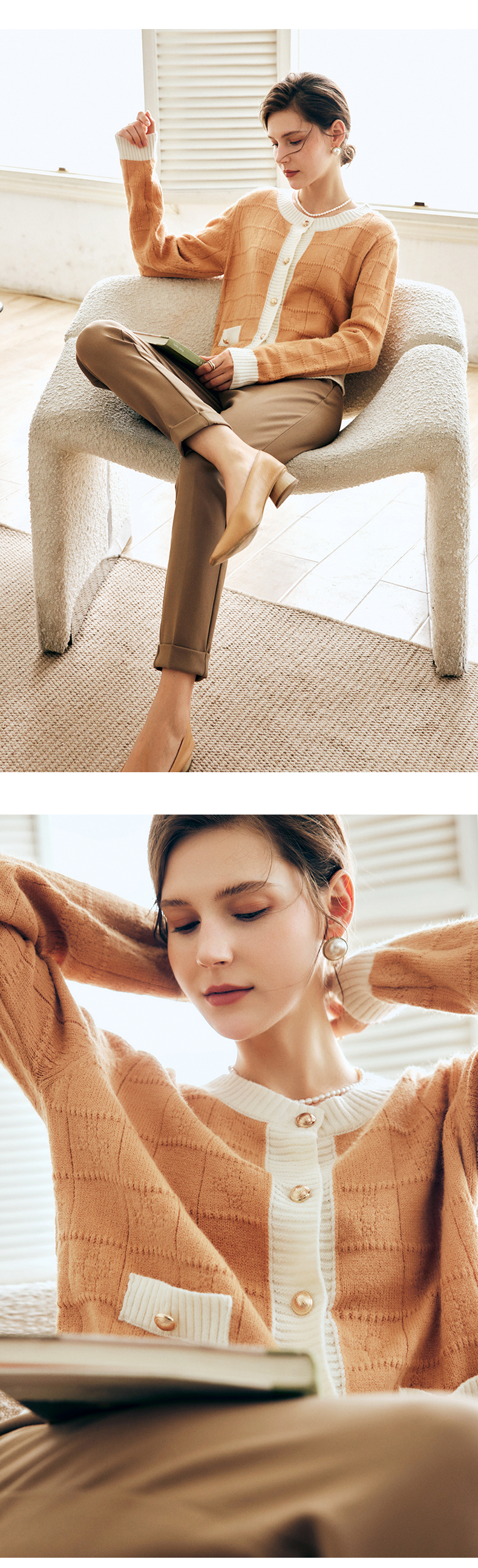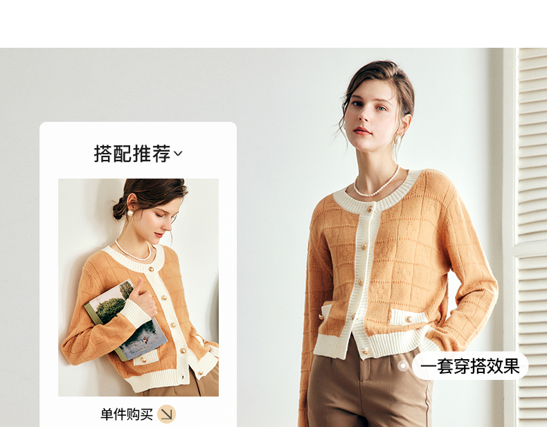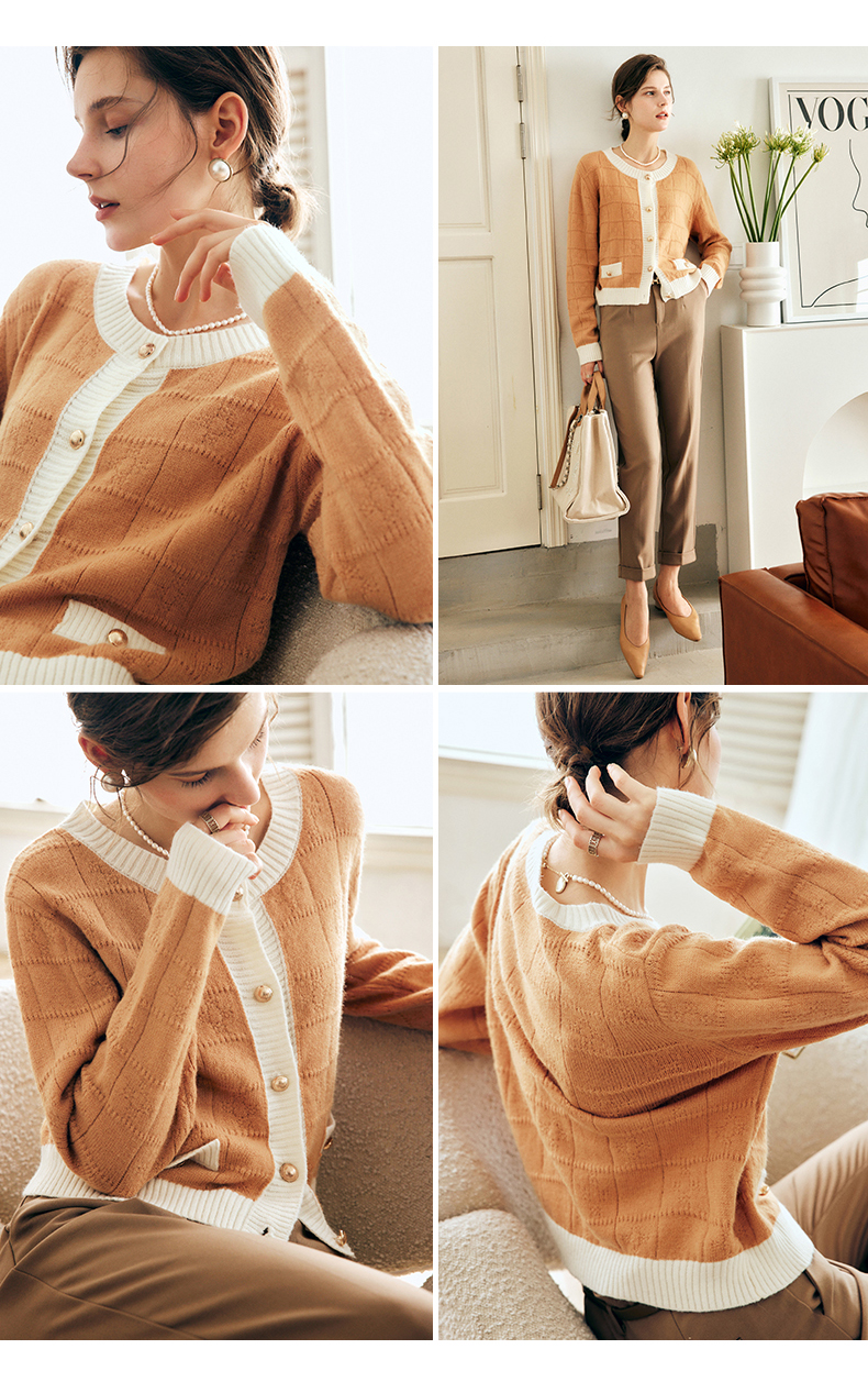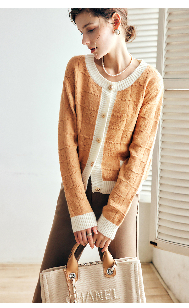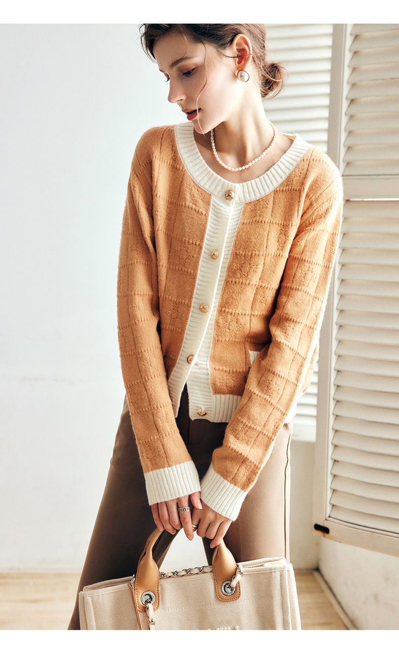 OLrain欧芮儿法式小香风针织开衫女秋季2022新款气质撞色毛衣外套