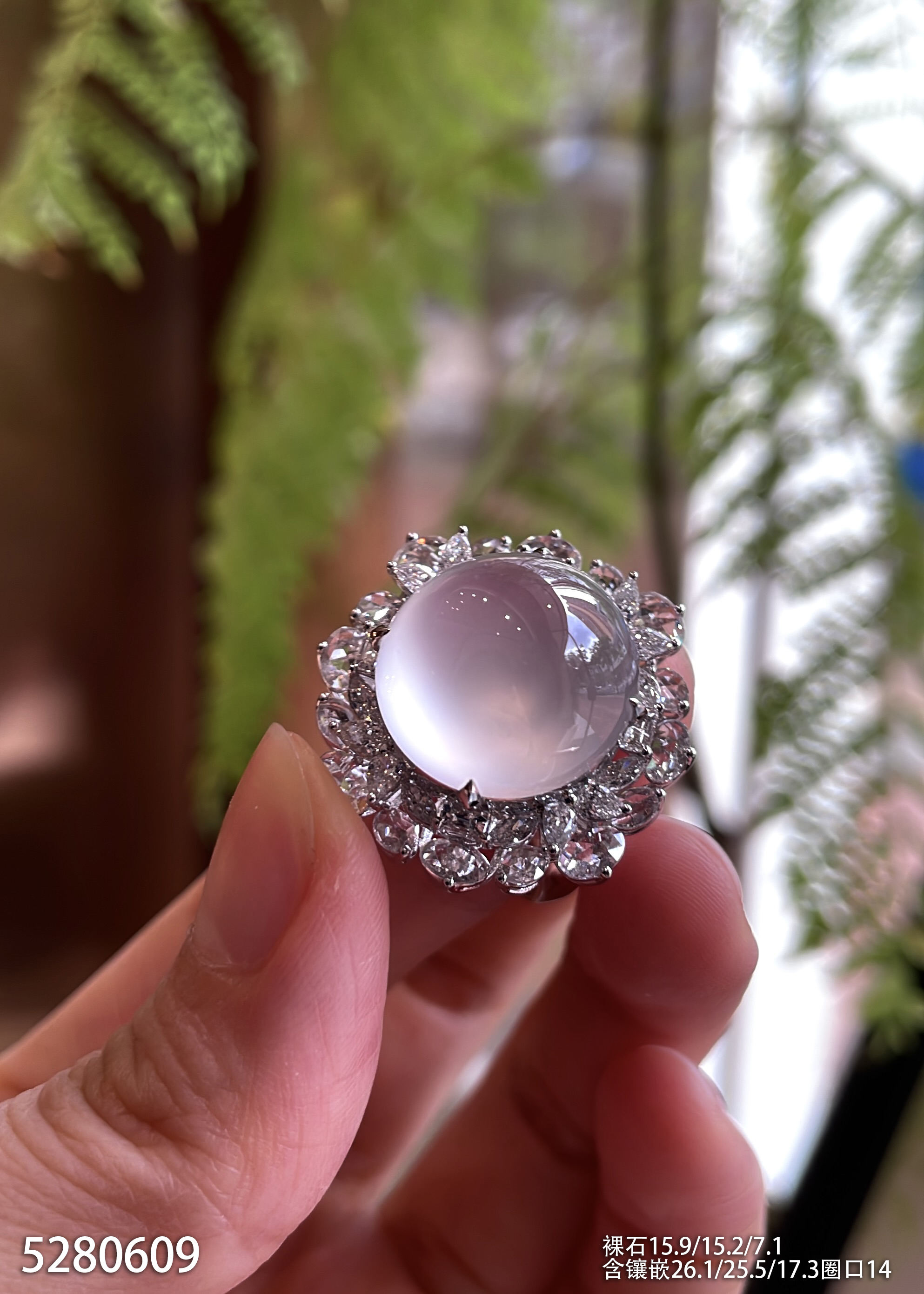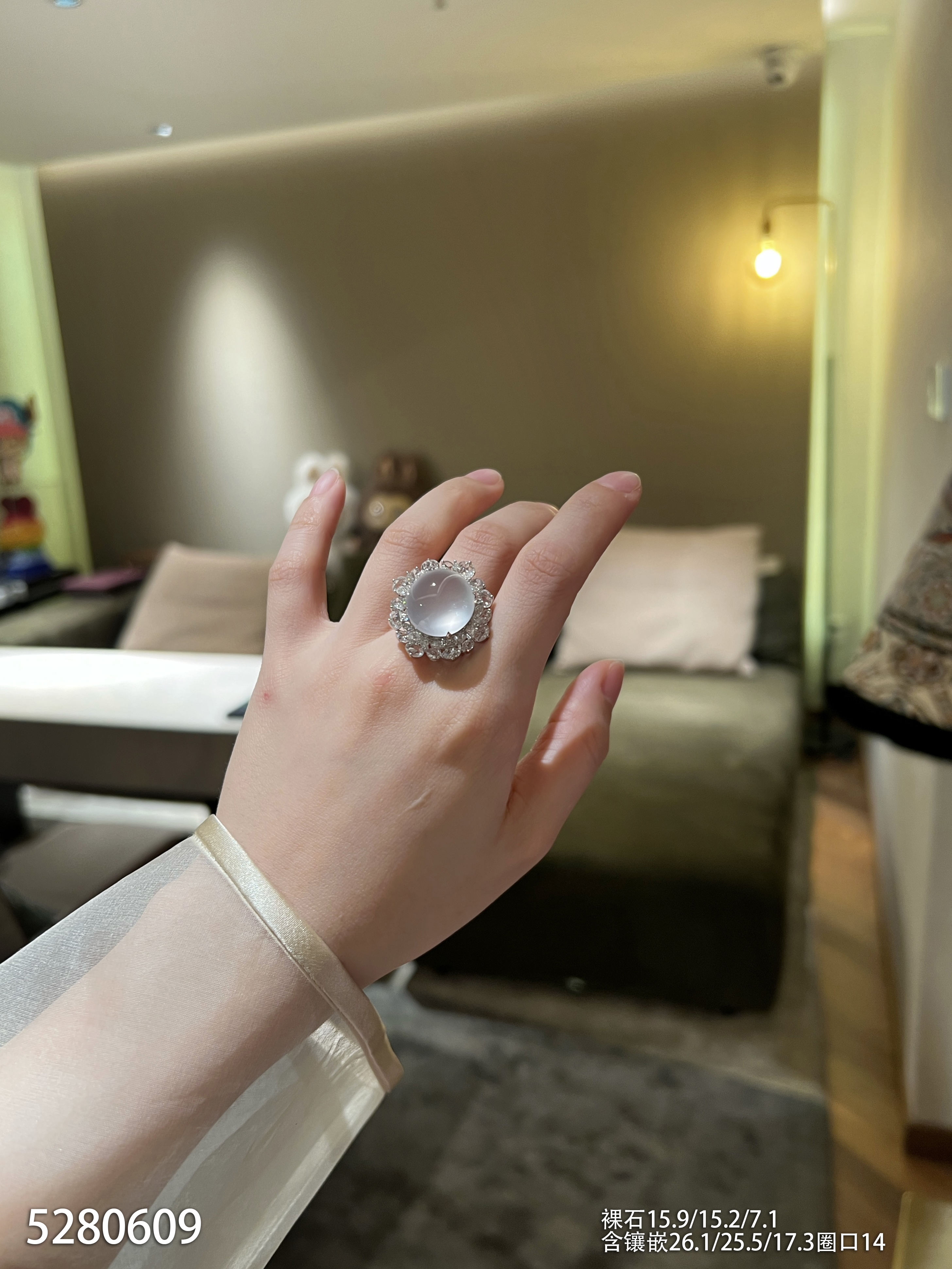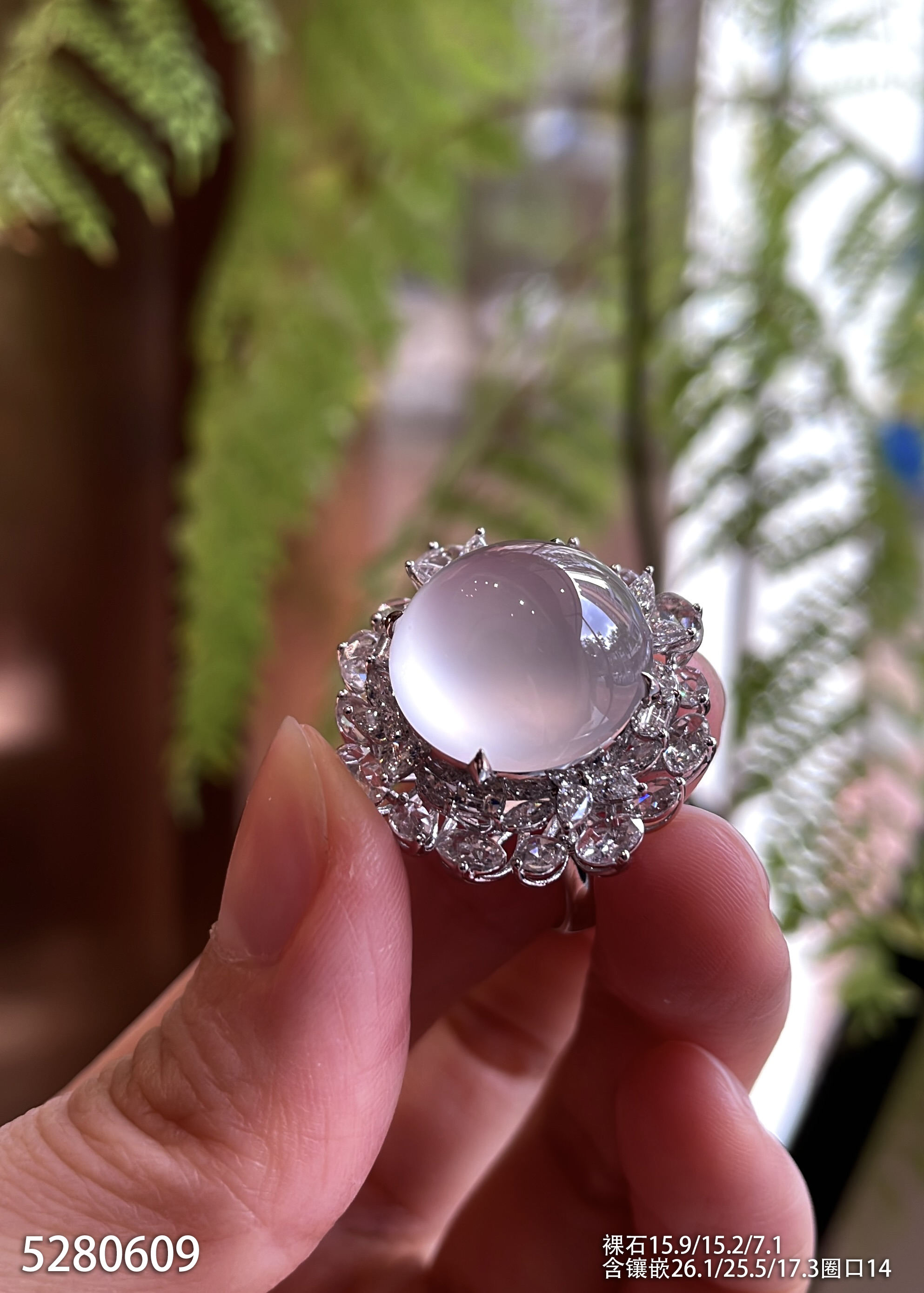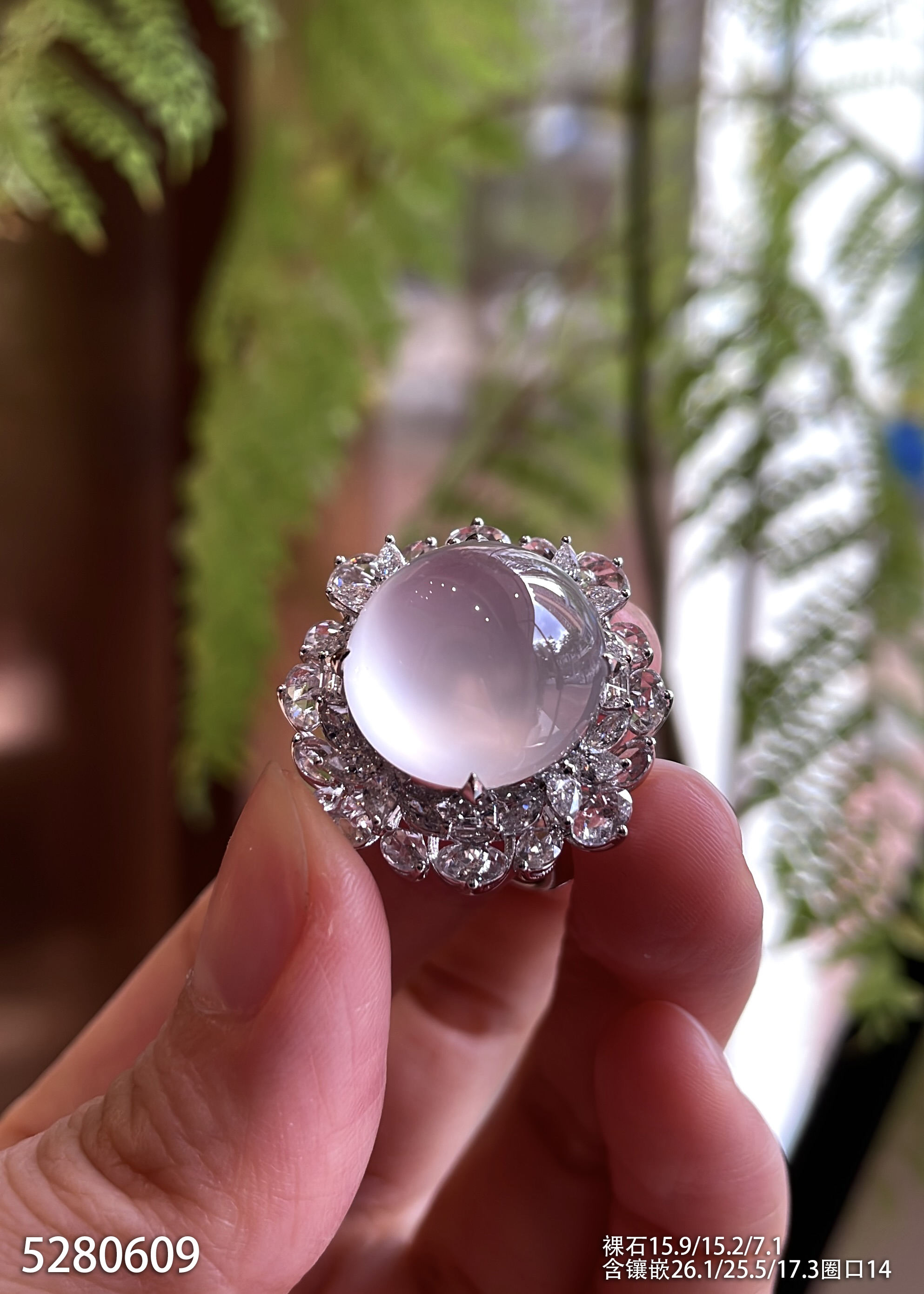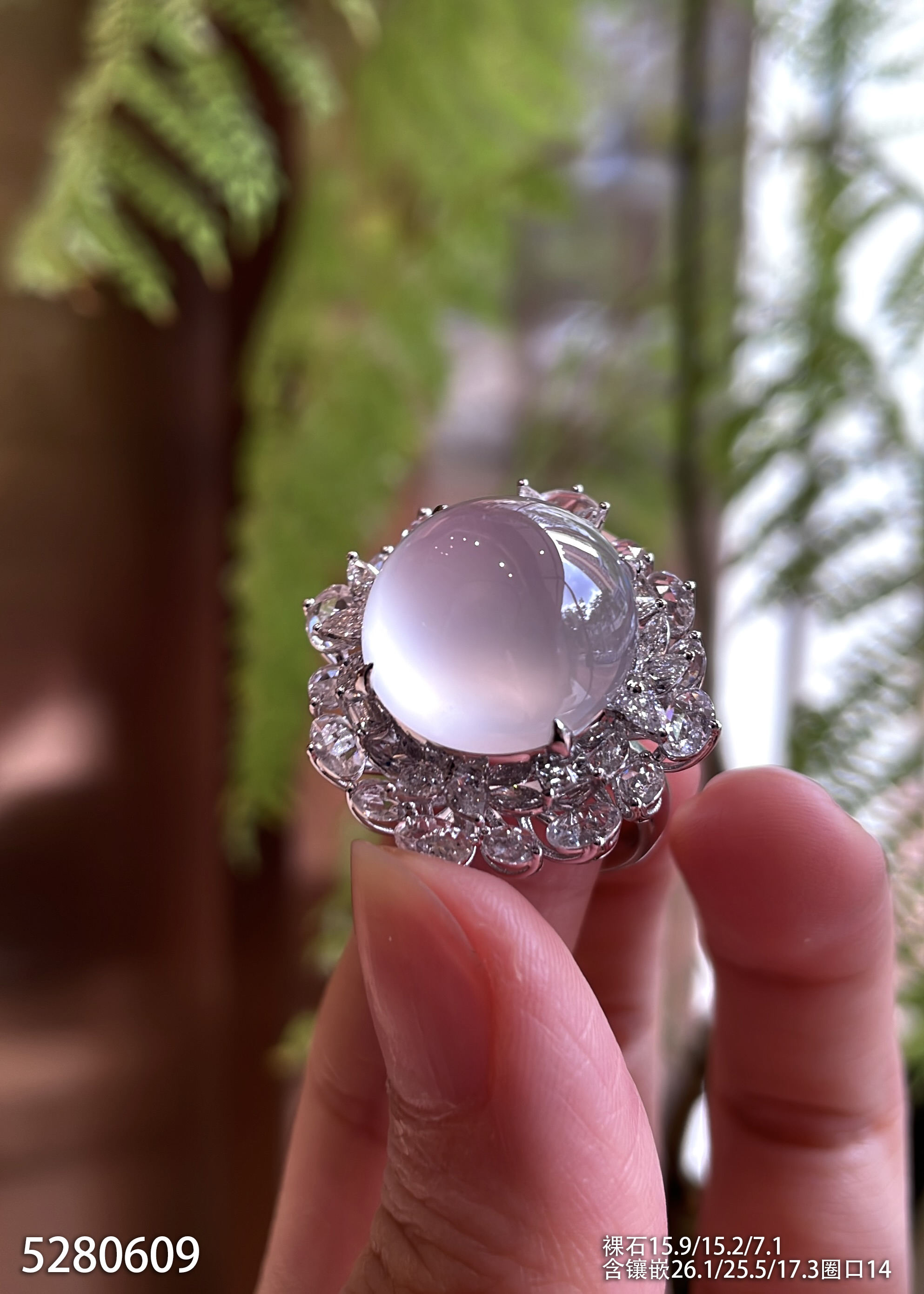 玻璃种蛋面戒指【5280609】具体价格微信咨询