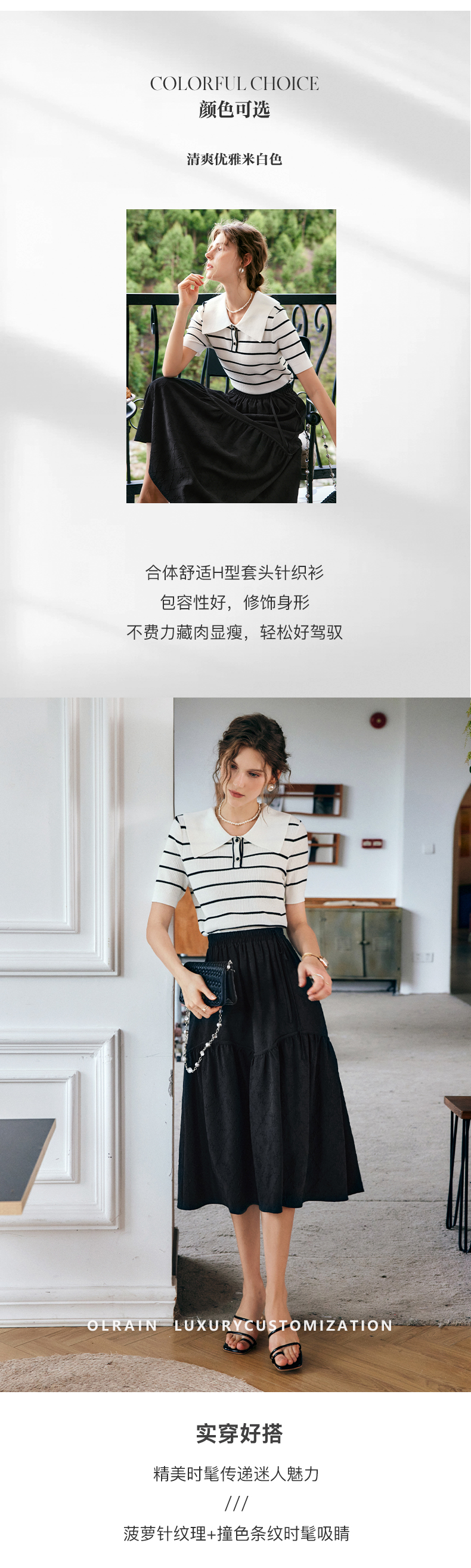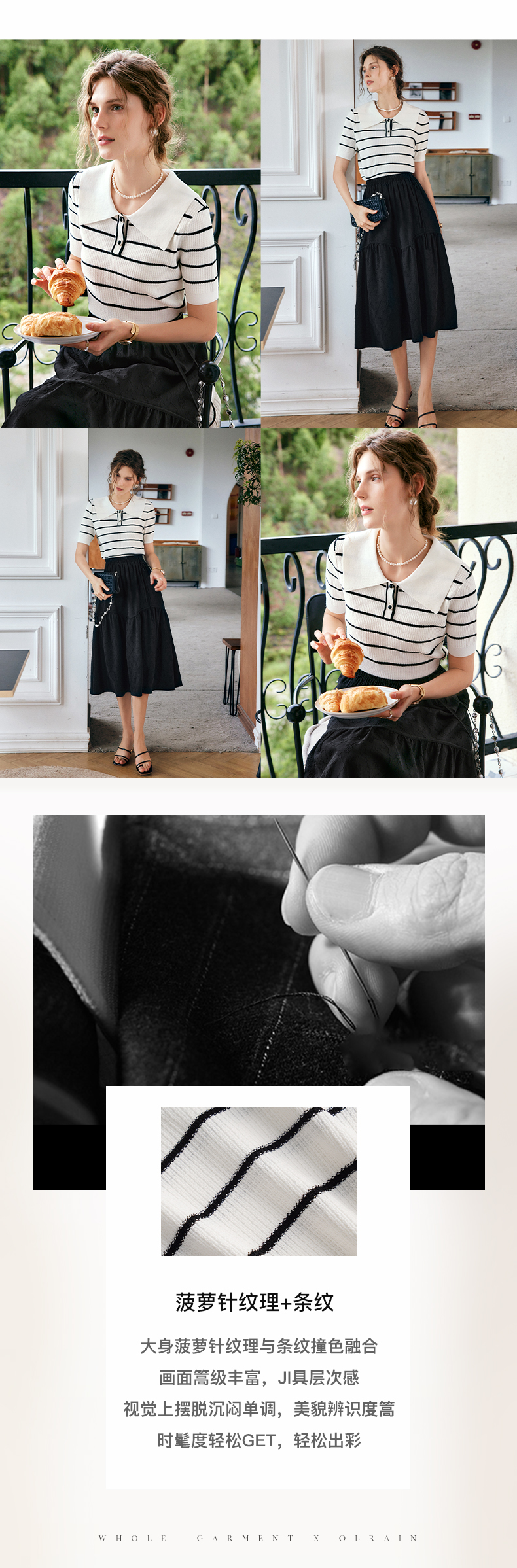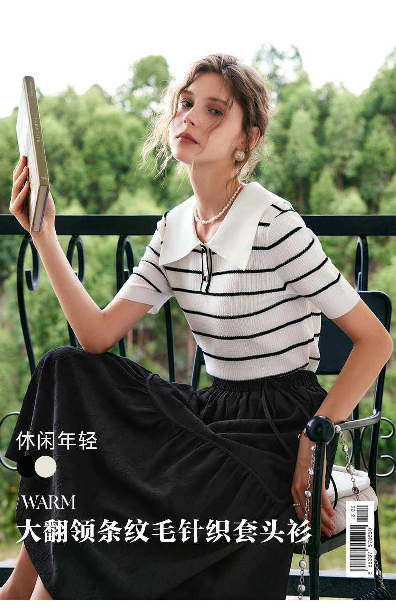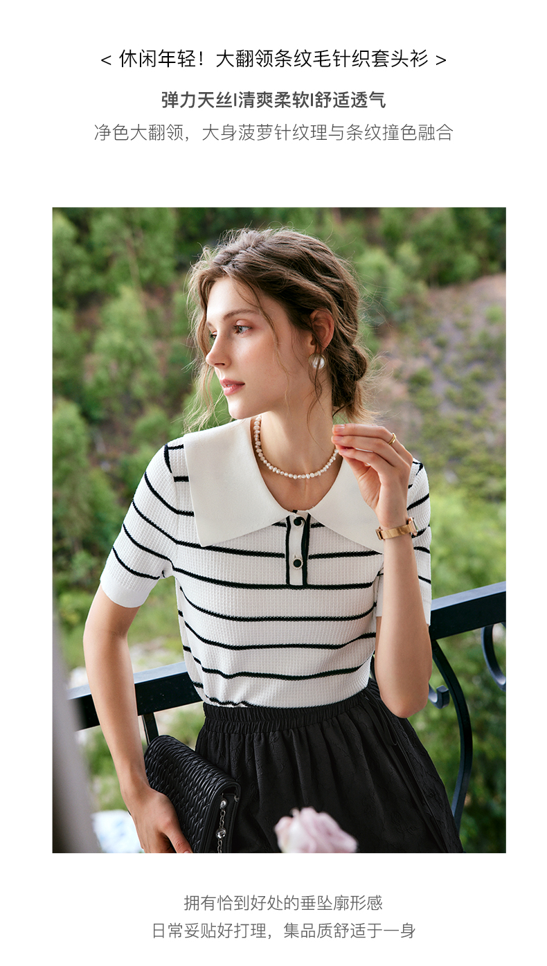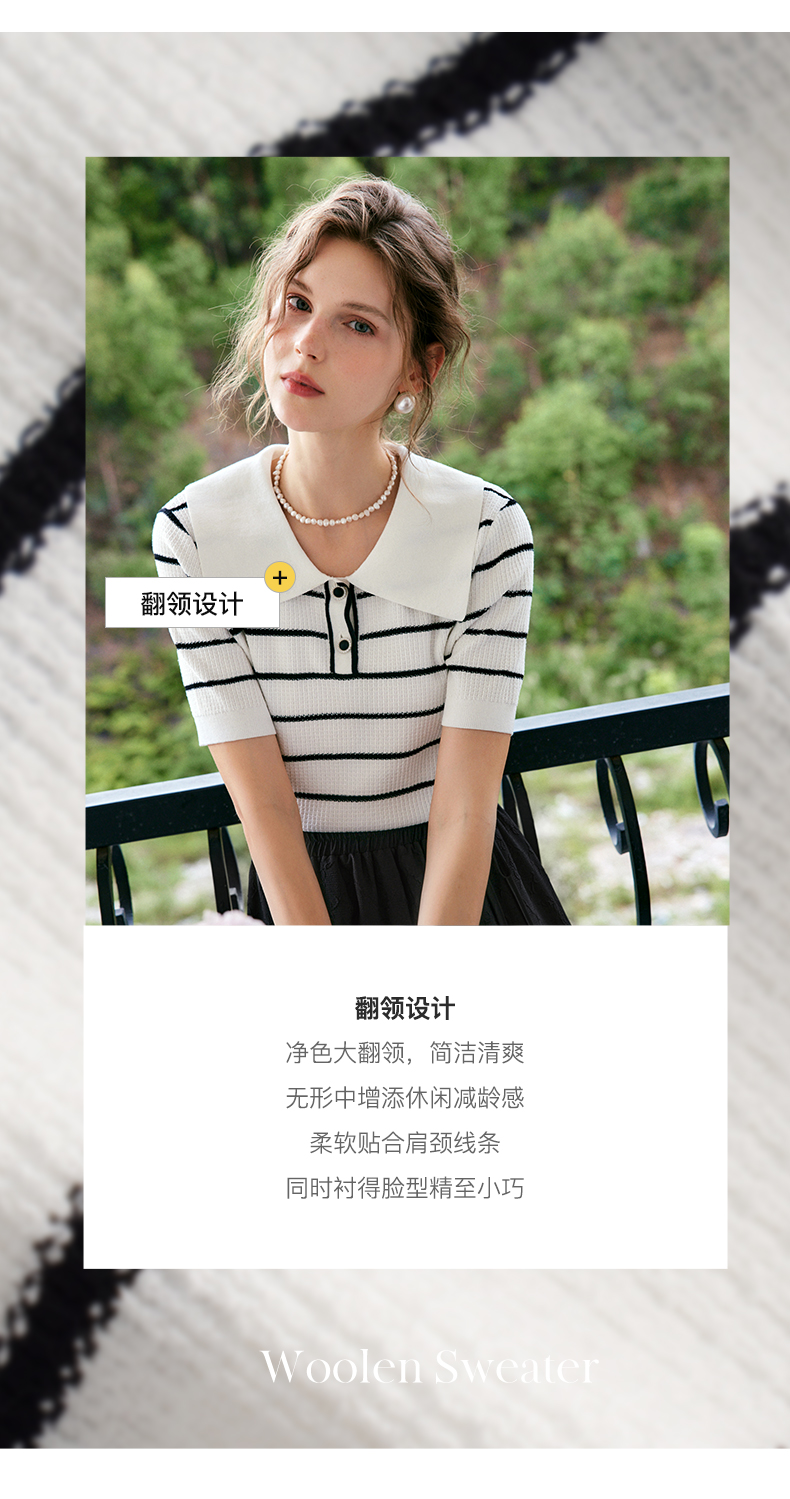 OLrain法式条纹针织衫女夏季2022年新款宽松显瘦薄款方领套头上衣