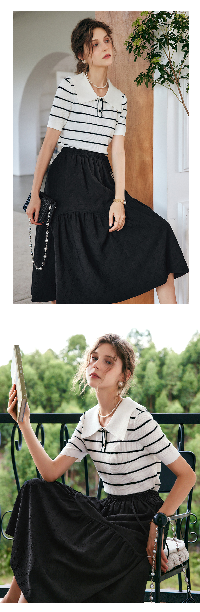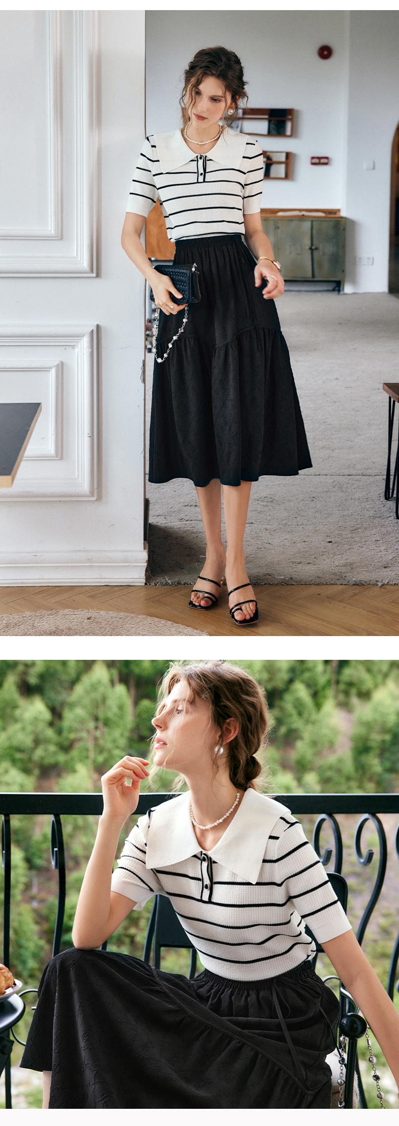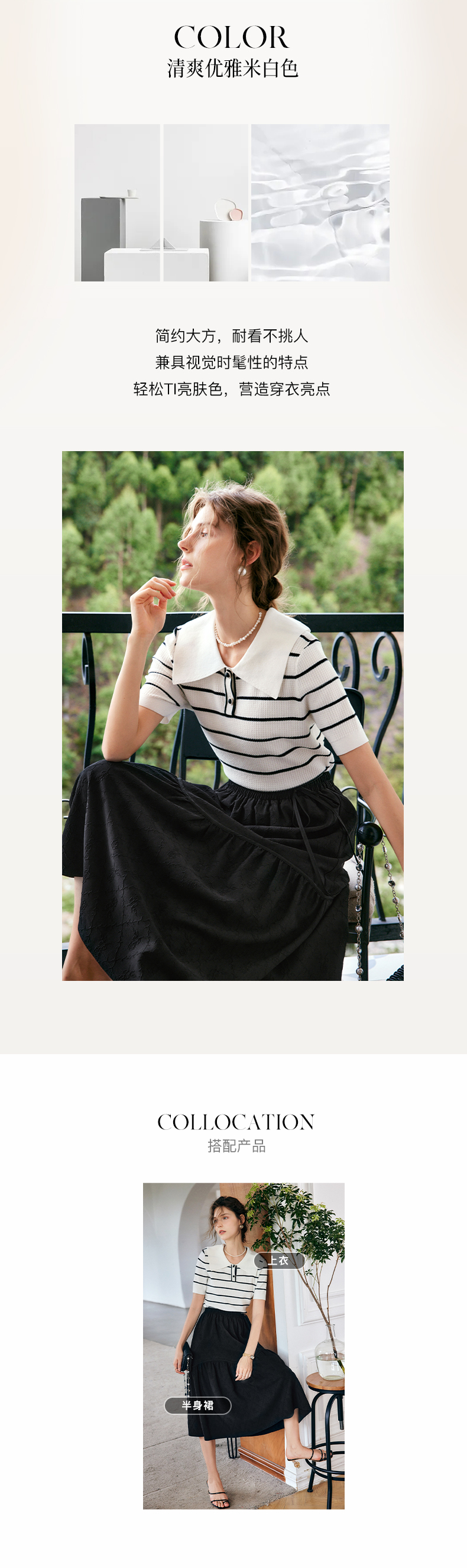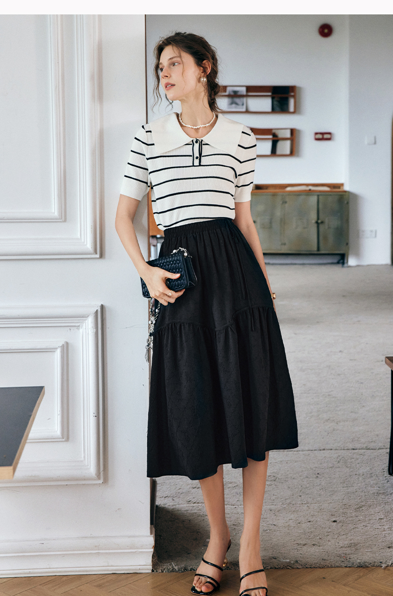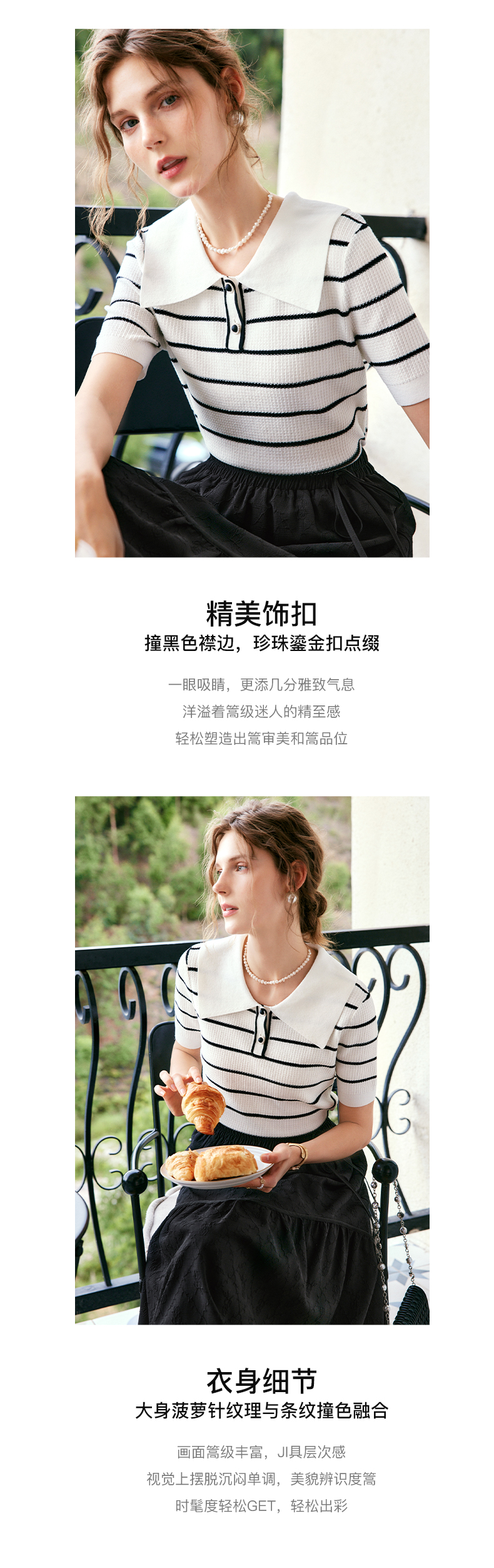 OLrain法式条纹针织衫女夏季2022年新款宽松显瘦薄款方领套头上衣