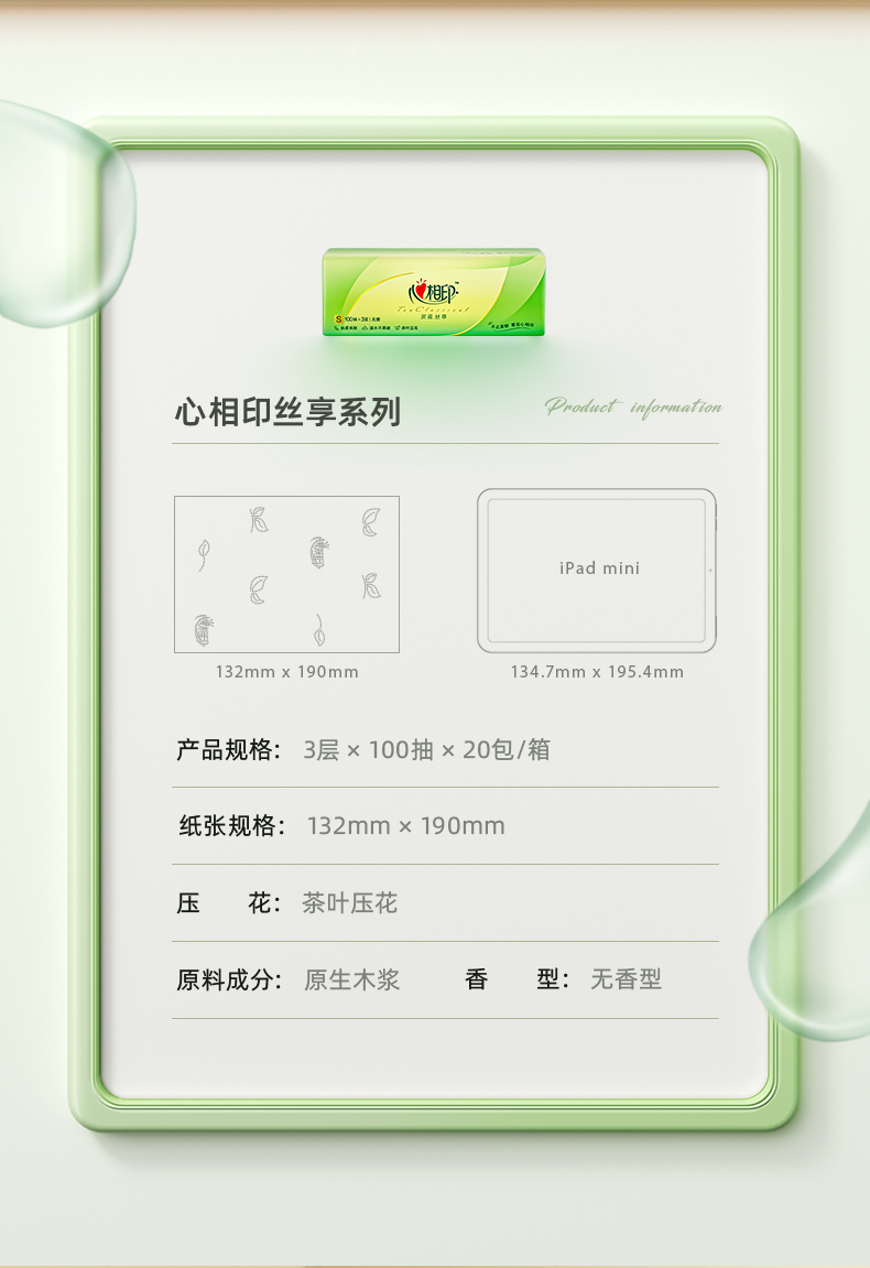 DT15100(箱装)心相印茶语丝享100抽*20包三层塑装纸面巾