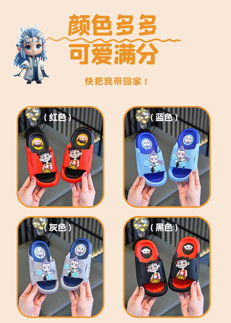 「软糯萌趣!舒适内里」2025新款哪吒拖鞋 男童6到12岁夏季外穿居家防滑宝宝儿童拖鞋女童装