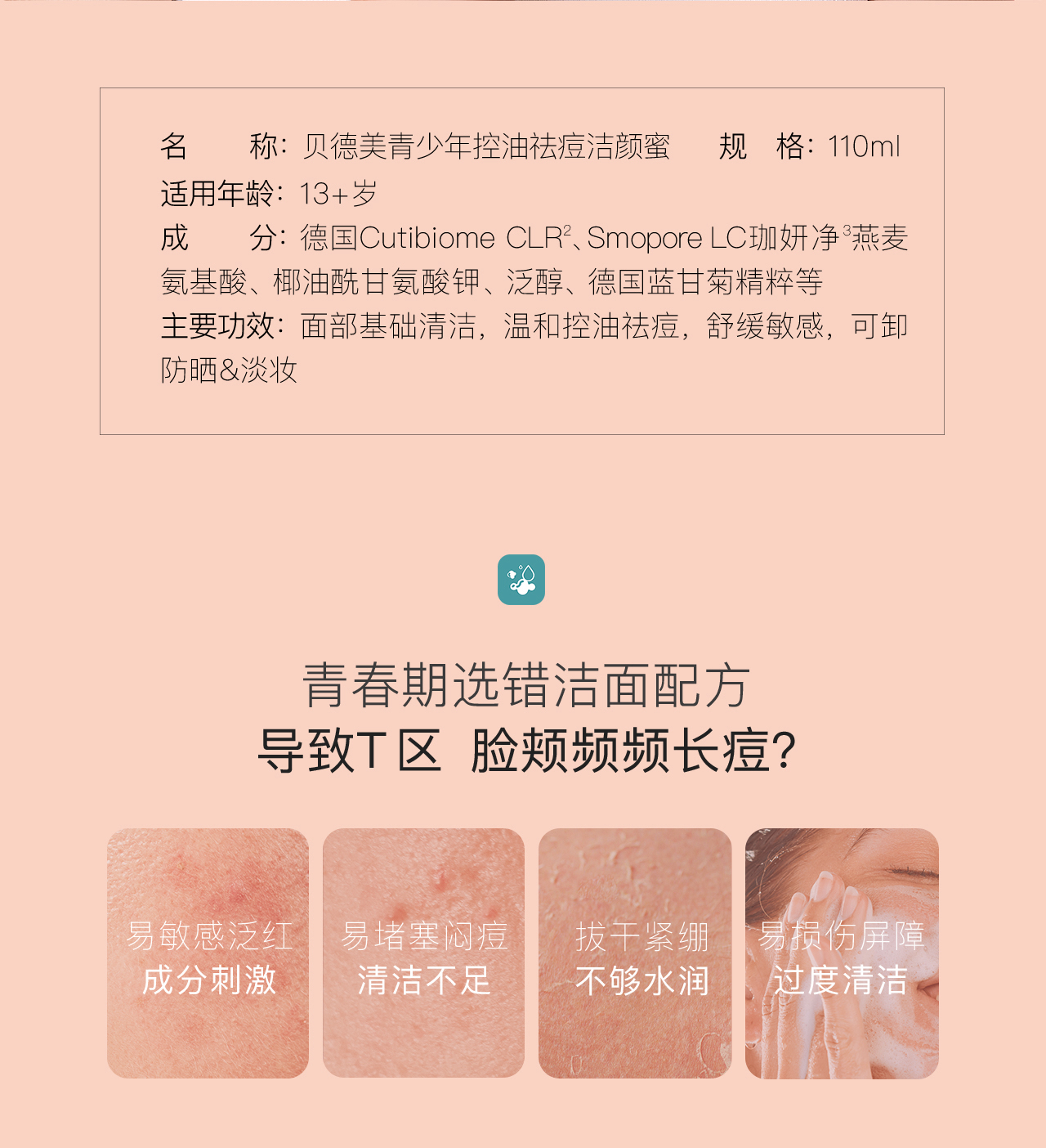 贝德美青少年控油祛痘洁颜蜜110ml