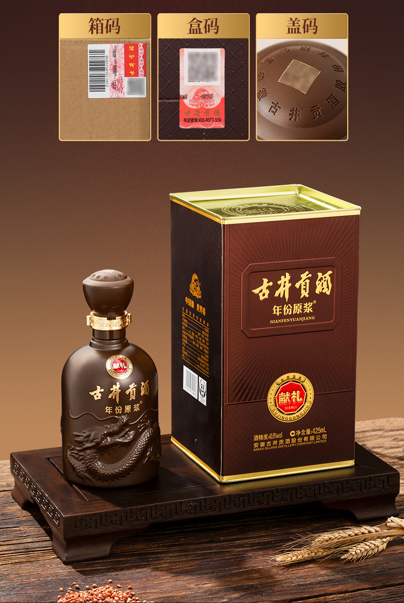 古井贡酒 年份原浆献礼 浓香型白酒 40.6度 425ml*4瓶 整箱装