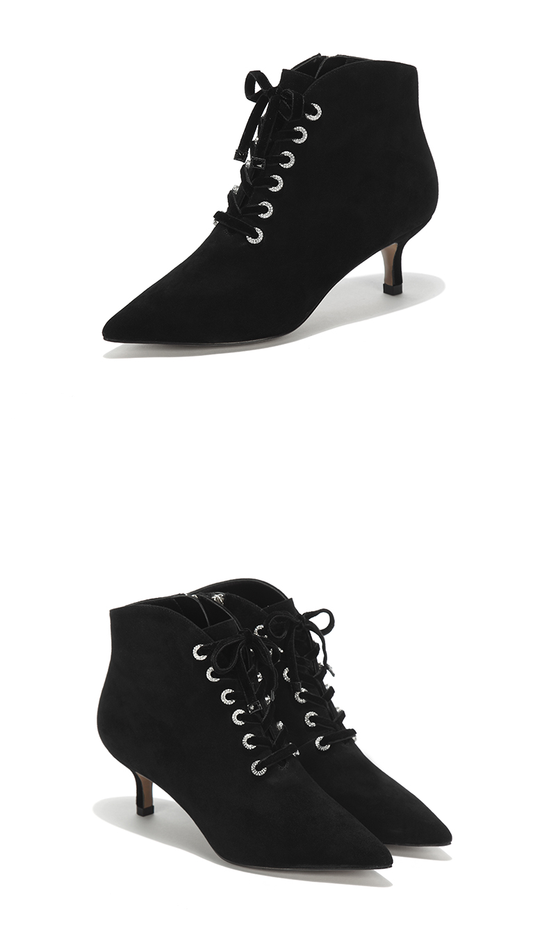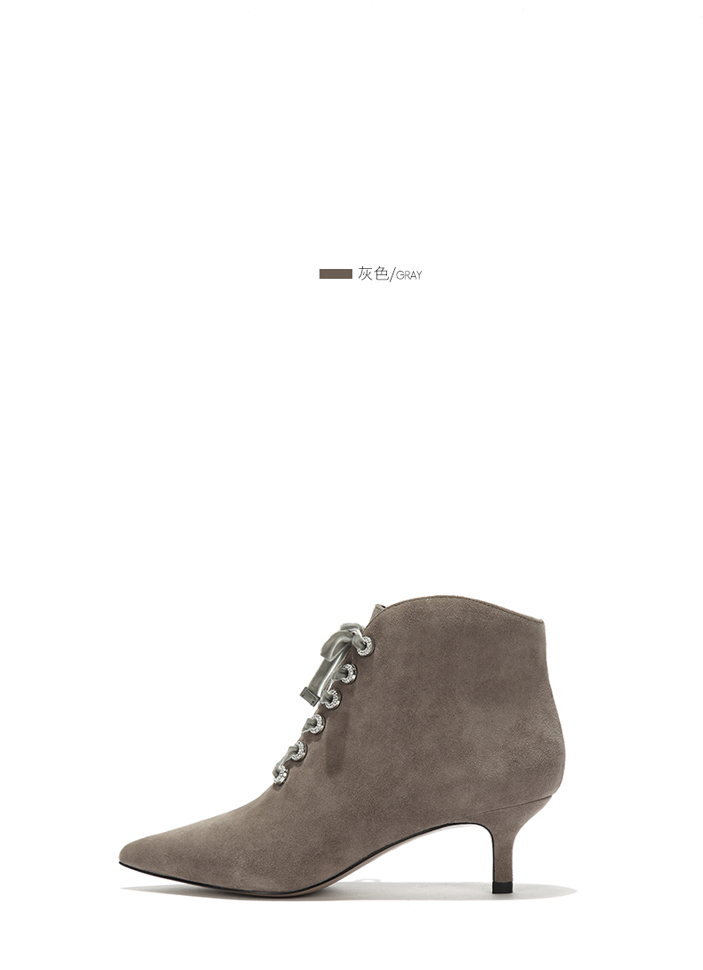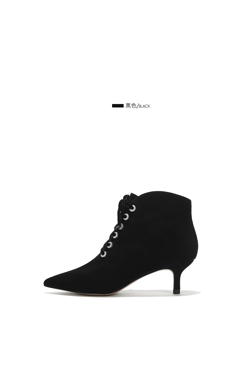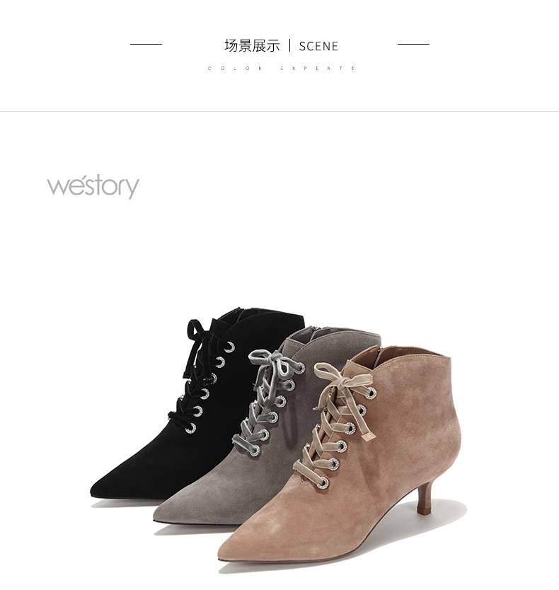 westory秋冬新款细跟系带短靴真皮尖头绒面靴子W274S80171