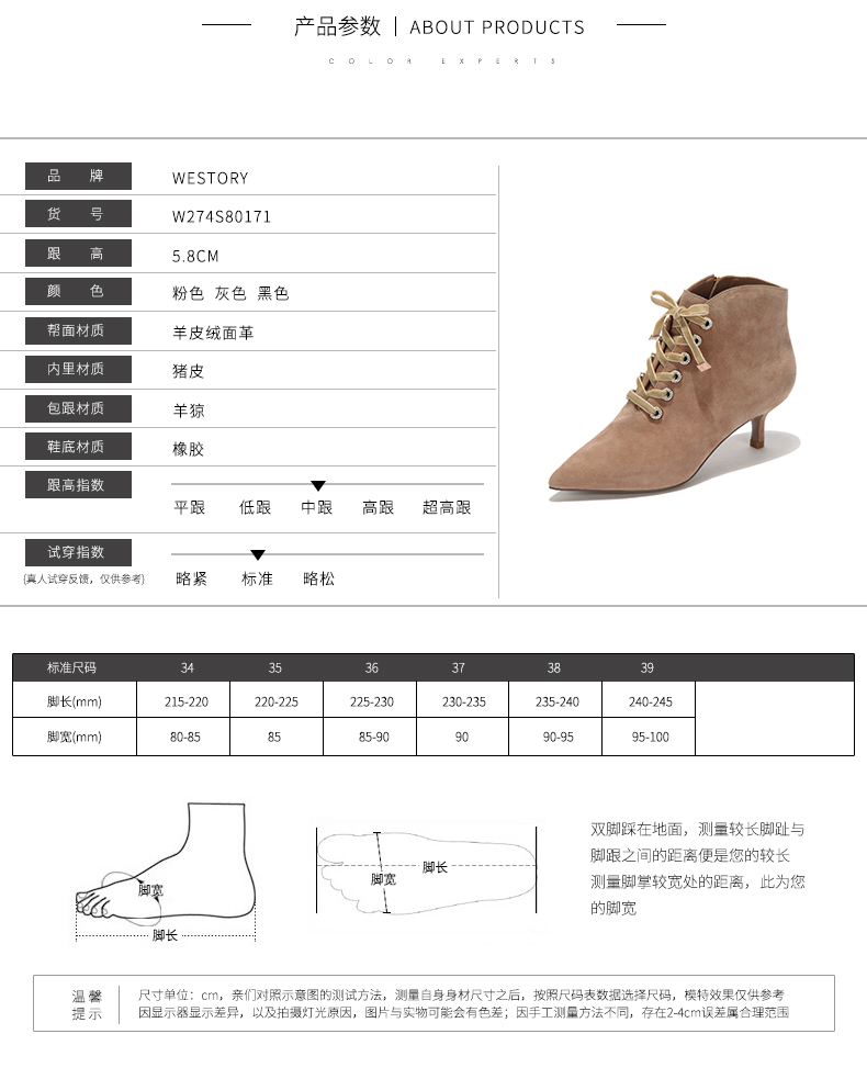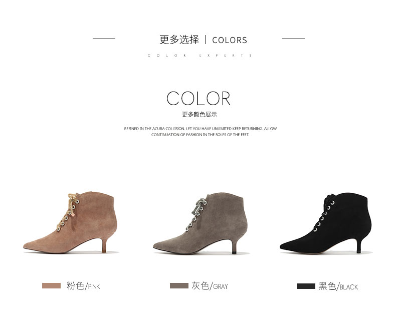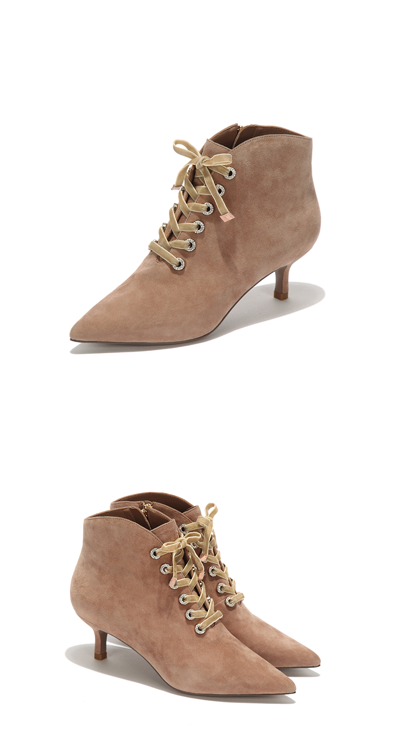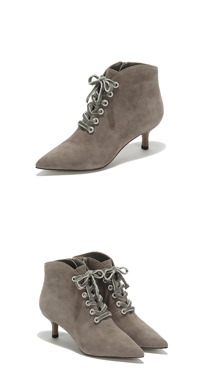 westory秋冬新款细跟系带短靴真皮尖头绒面靴子W274S80171