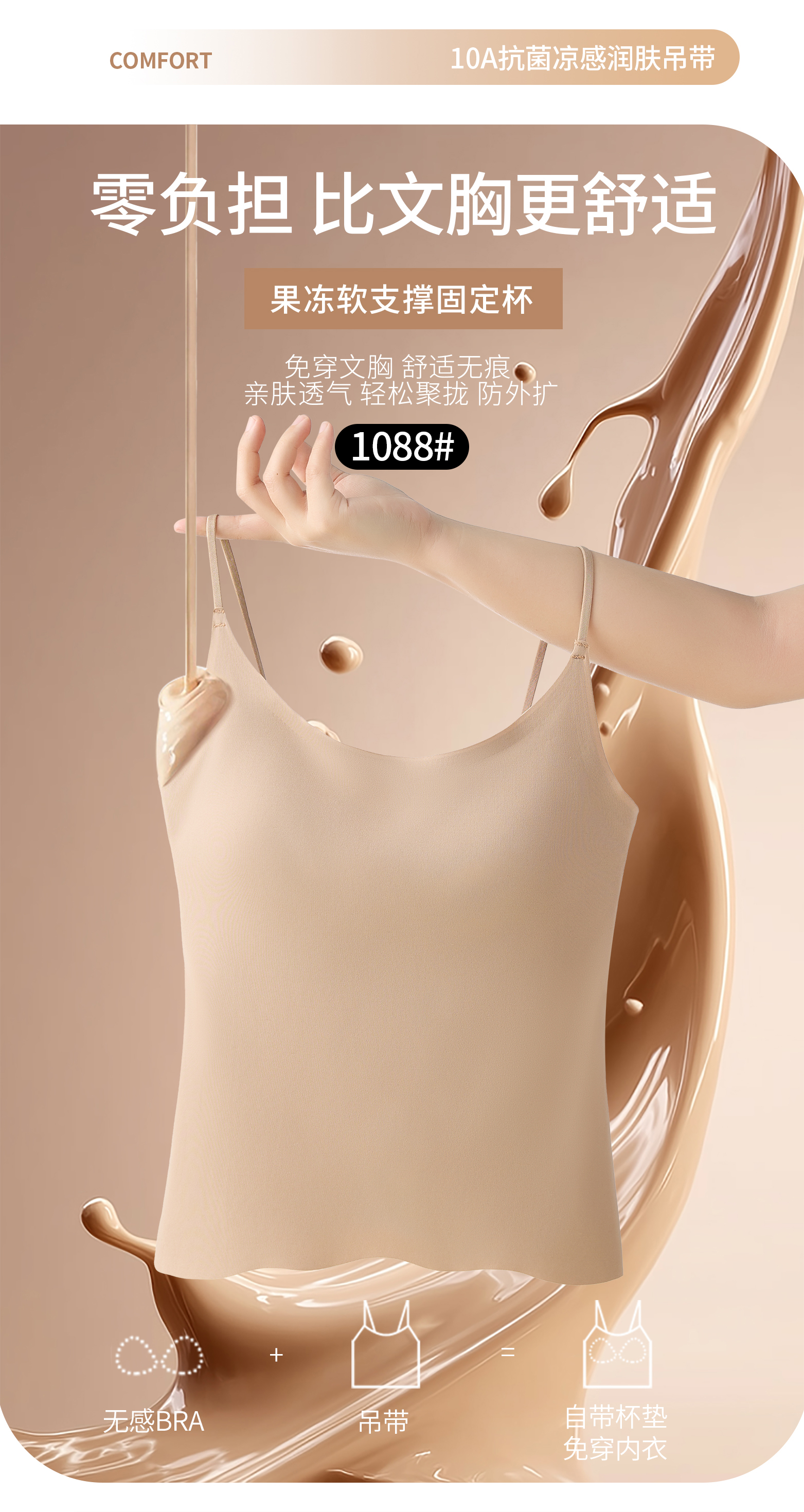 爆款锦纶冰丝女士粉底液吊带背心美背长款1088/短款1068