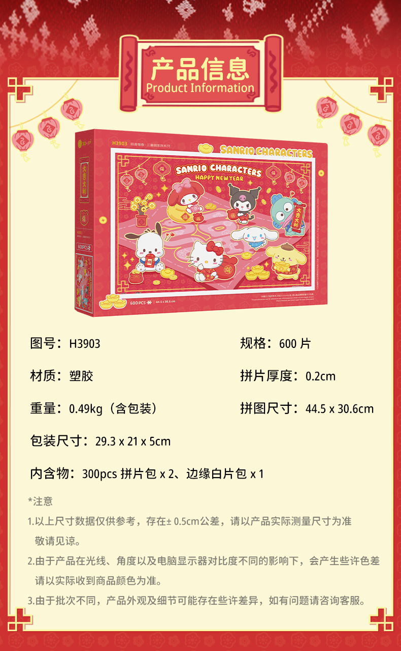 600片 平面塑料拼图 H3903 萌喜报春-三丽鸥家族系列