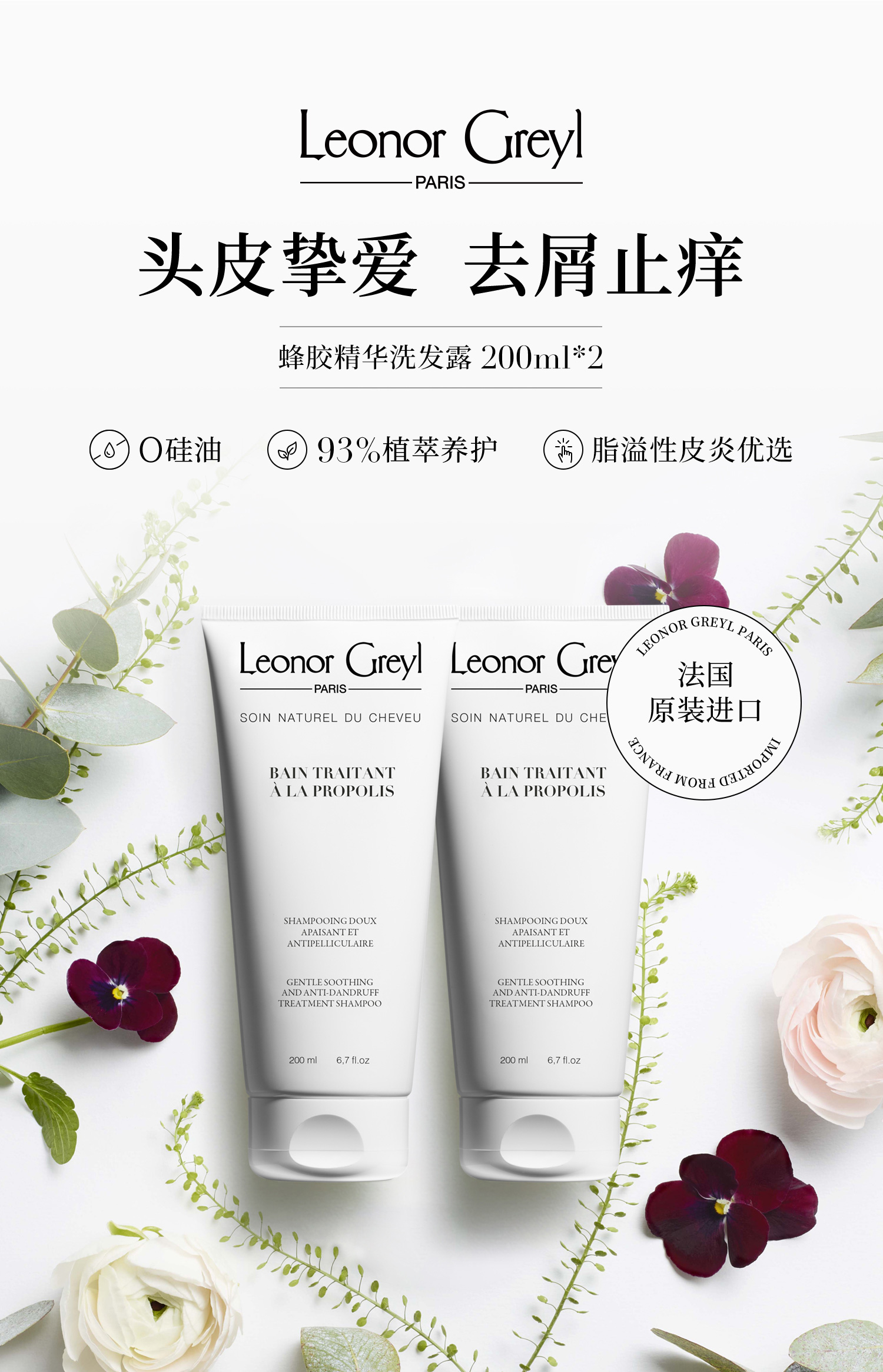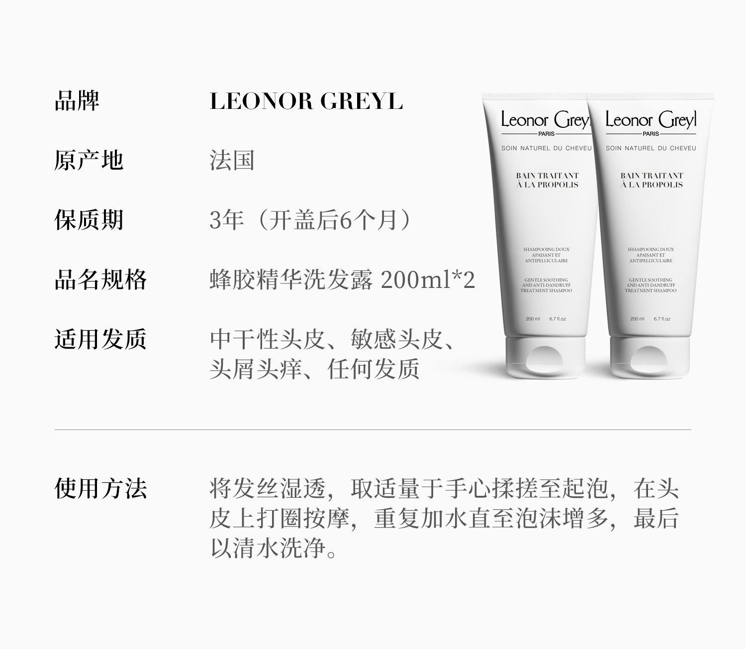 保税直发 Leonor Greyl 蜂胶精华洗发水 200mLx2