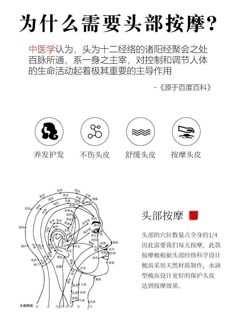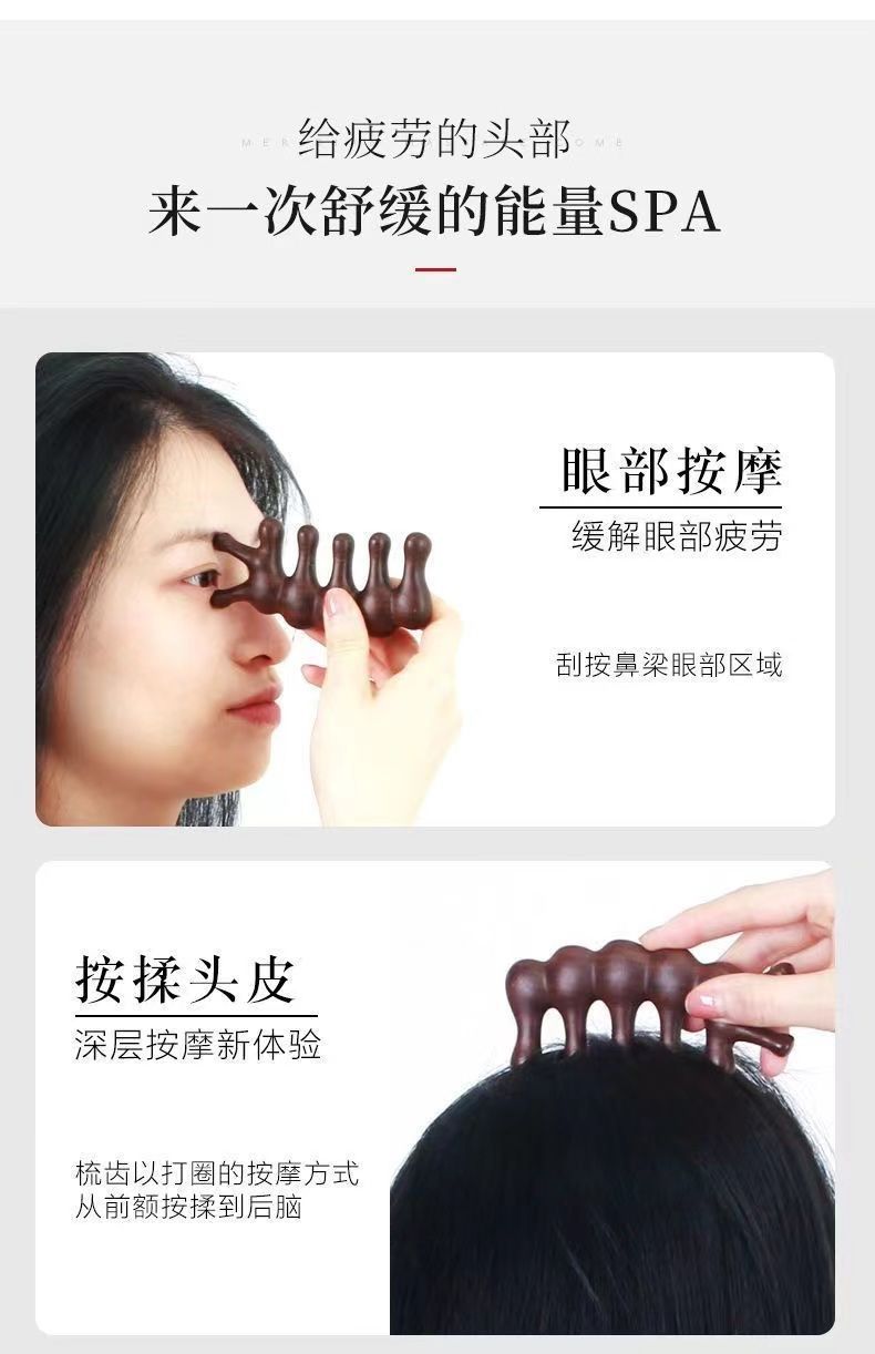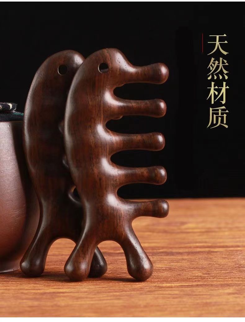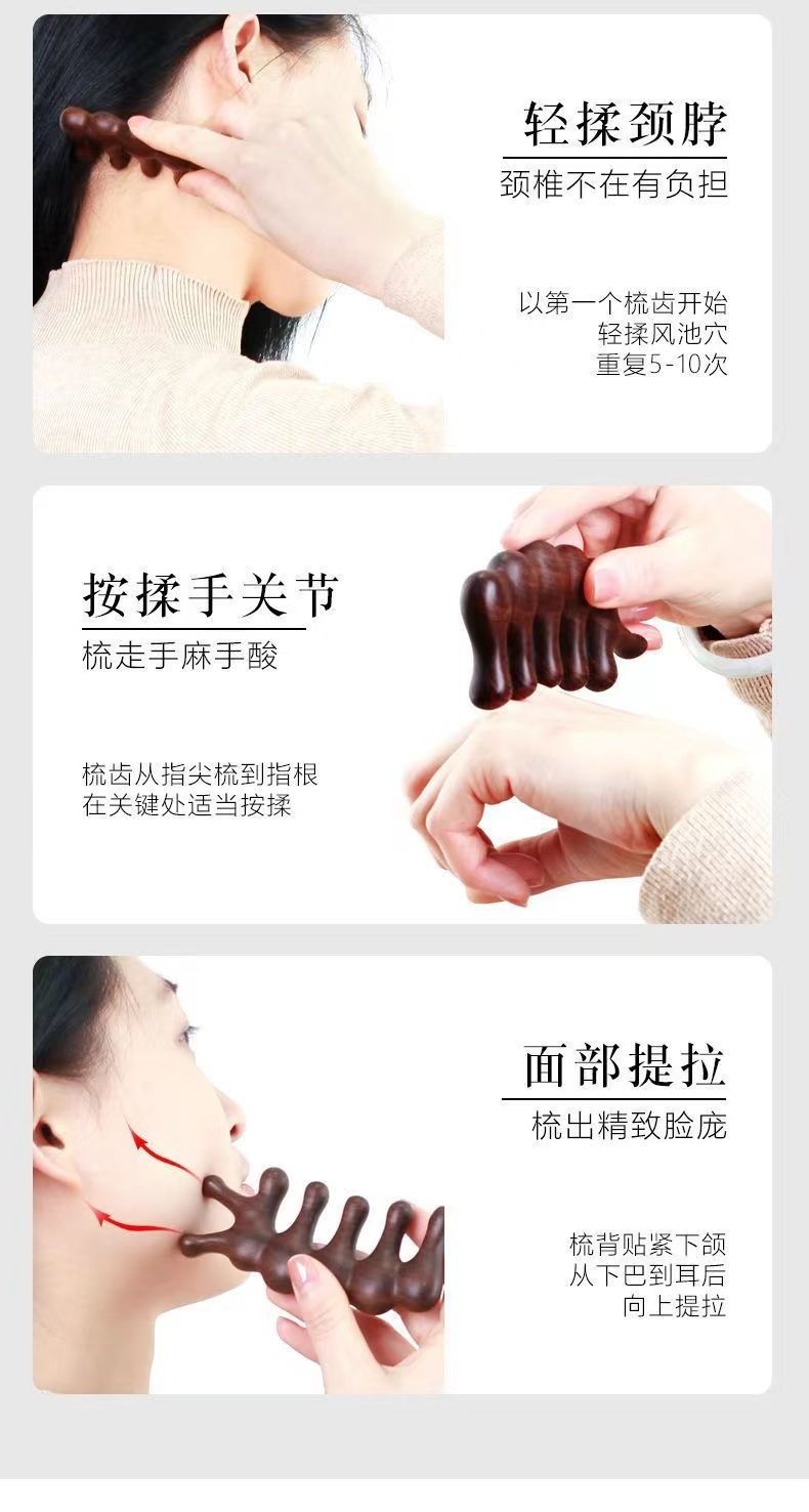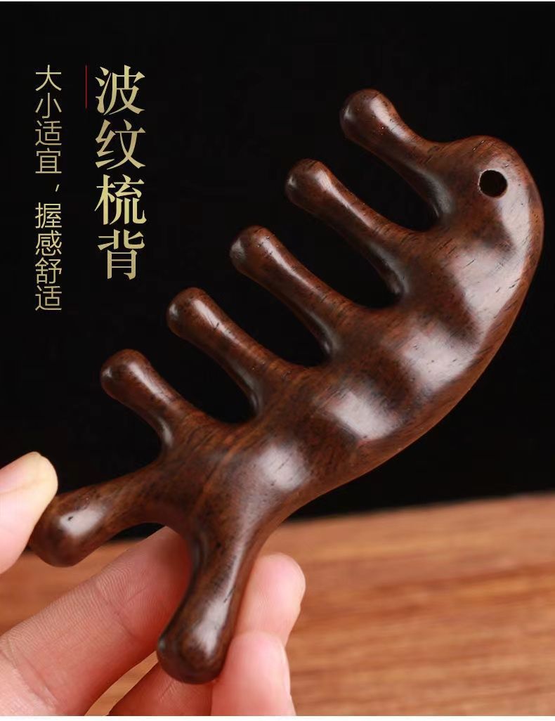 【两根手指】五齿设计贴合手势,家中、旅途,便携而易用。便携多功能,美发损伤零距离。按摩梳木梳经络檀木梳子金丝檀梳子家用便携五齿按摩梳多功能
