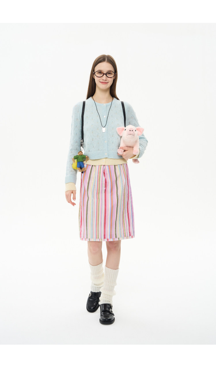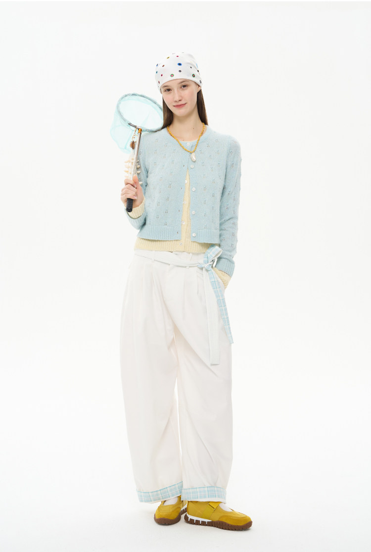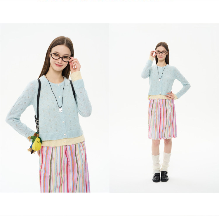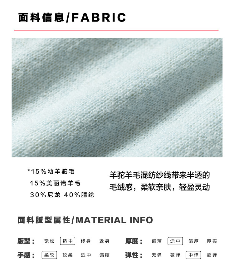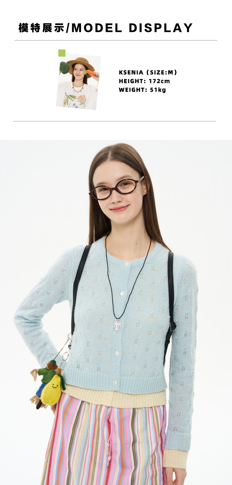 heris/H61102/花朵挑孔提花 空气感羊驼羊毛 奶蓝假两件针织开衫