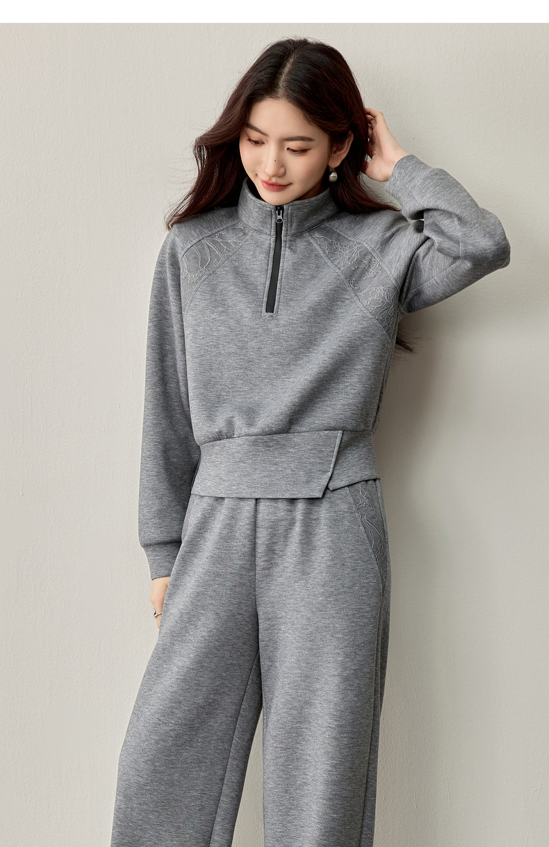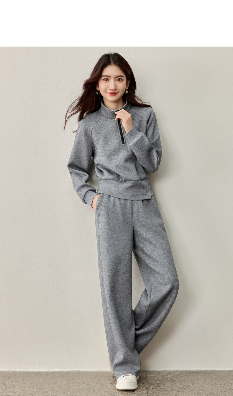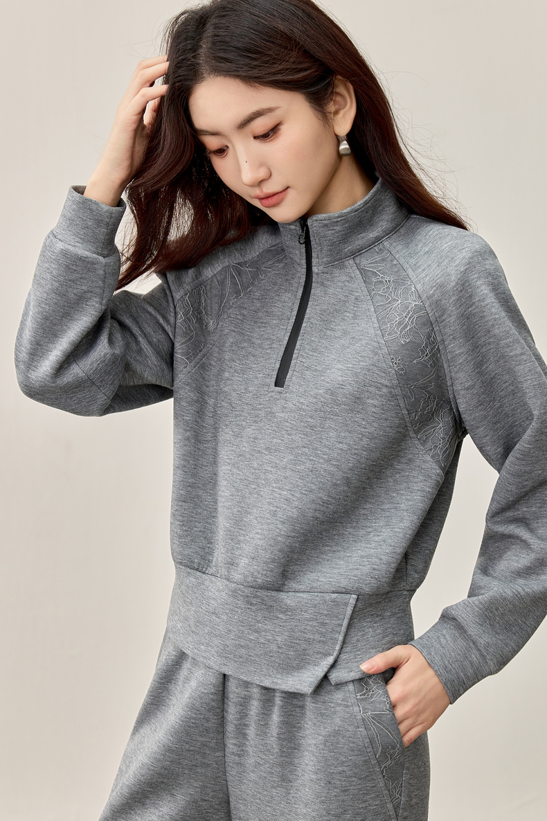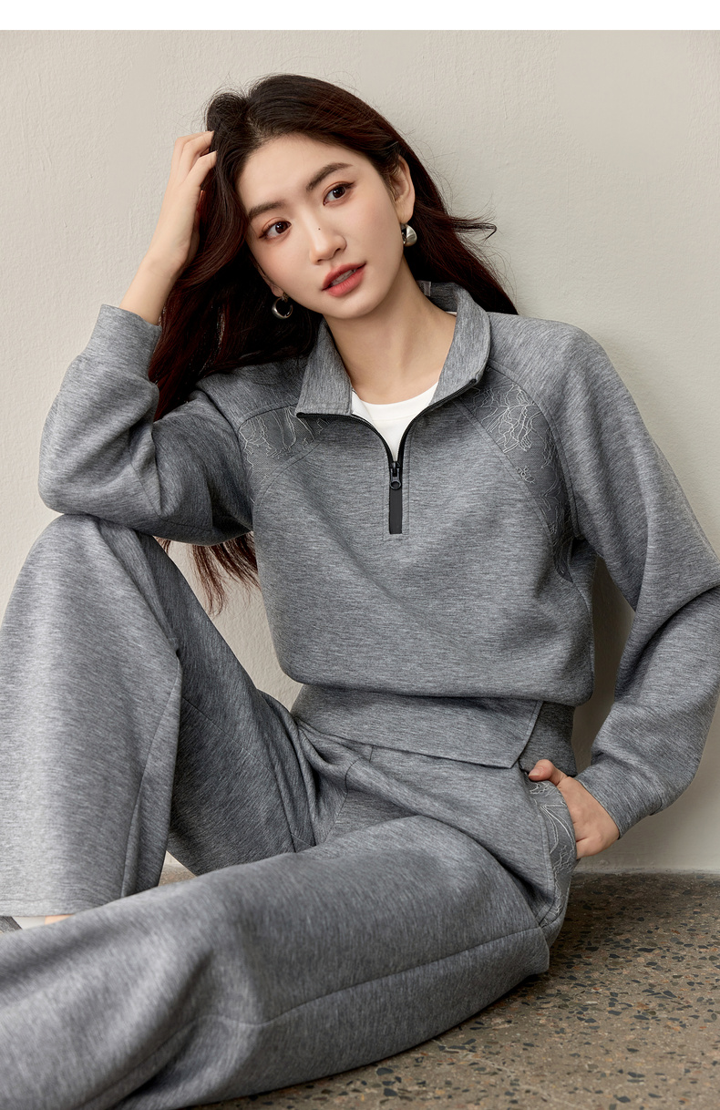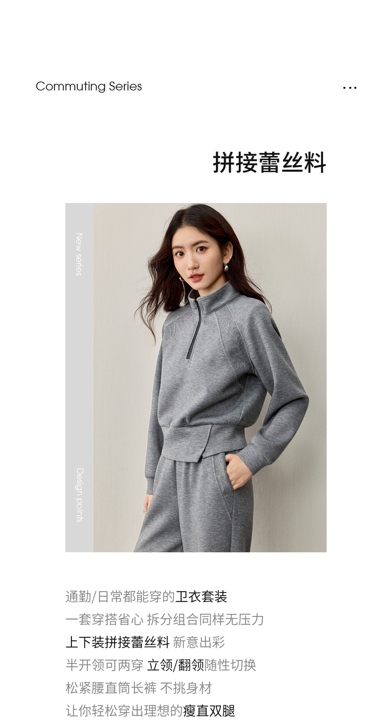 【内购】【免搭配套装】简约休闲通勤拼接蕾丝拉链卫衣&松紧腰直筒长裤-153ZH2791