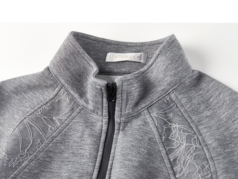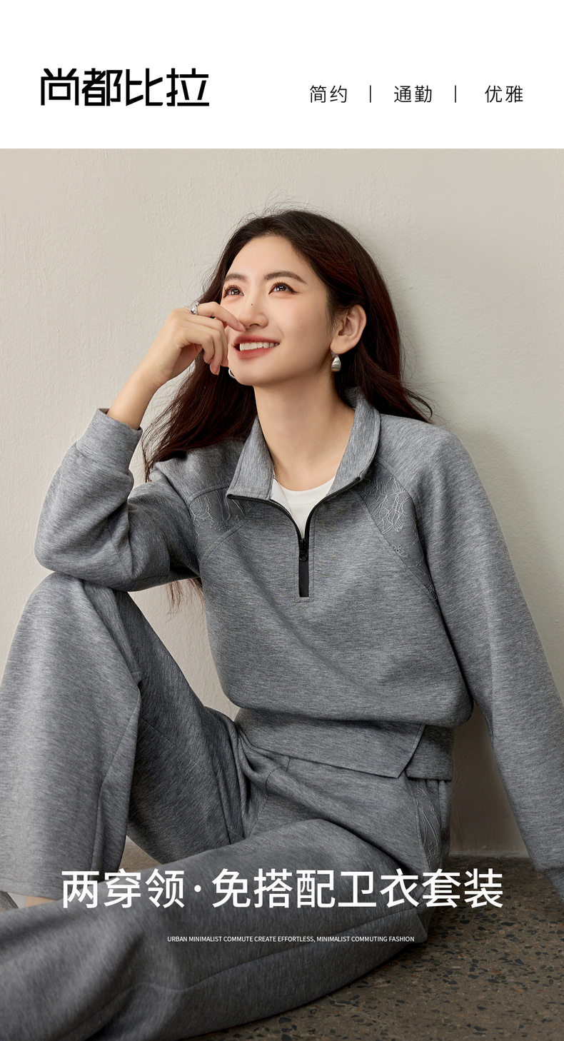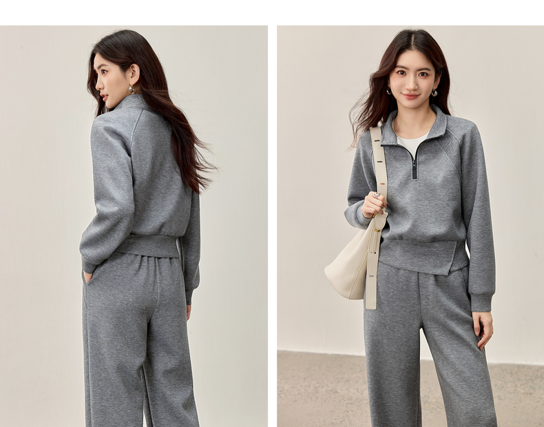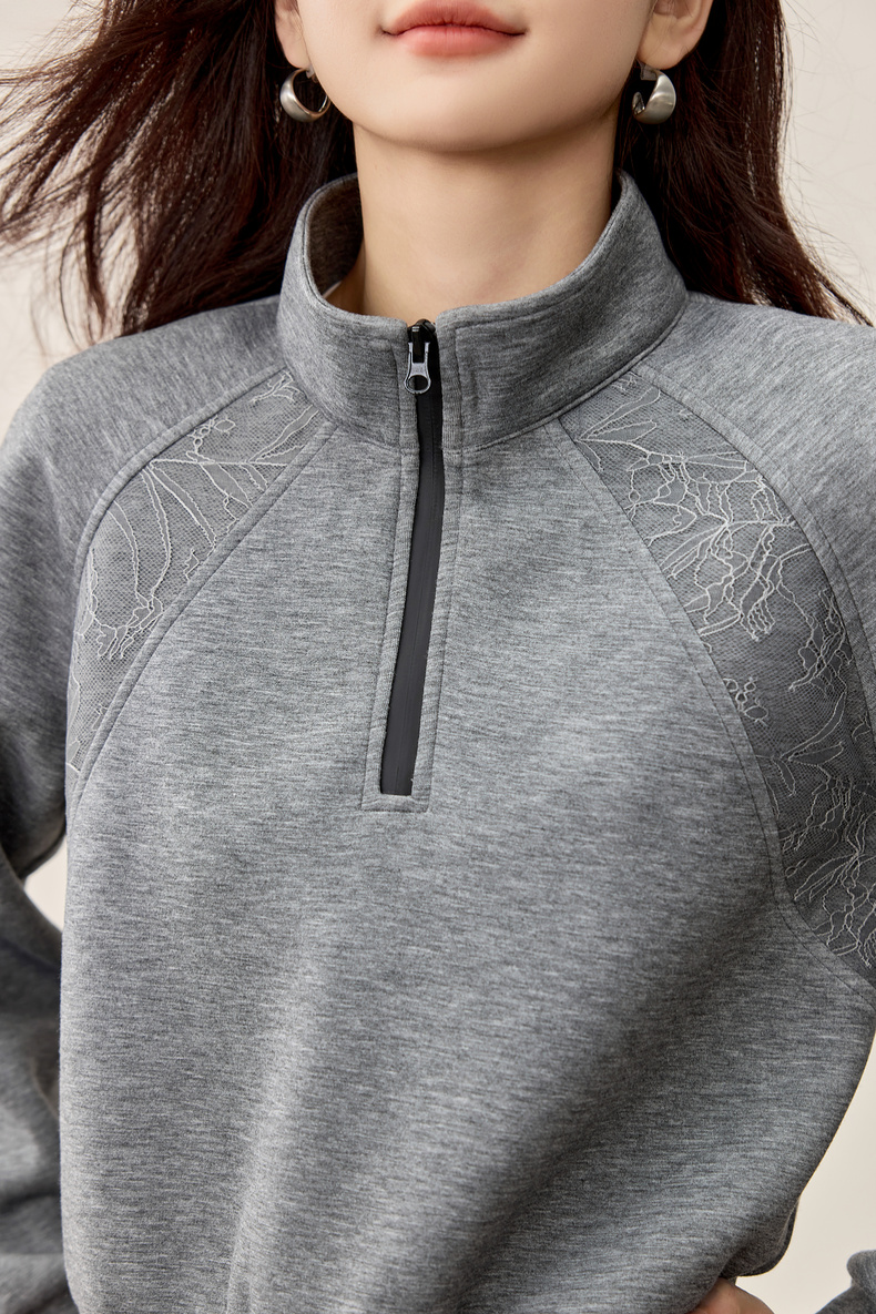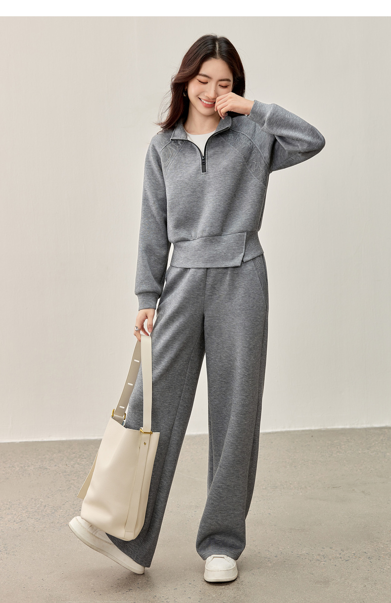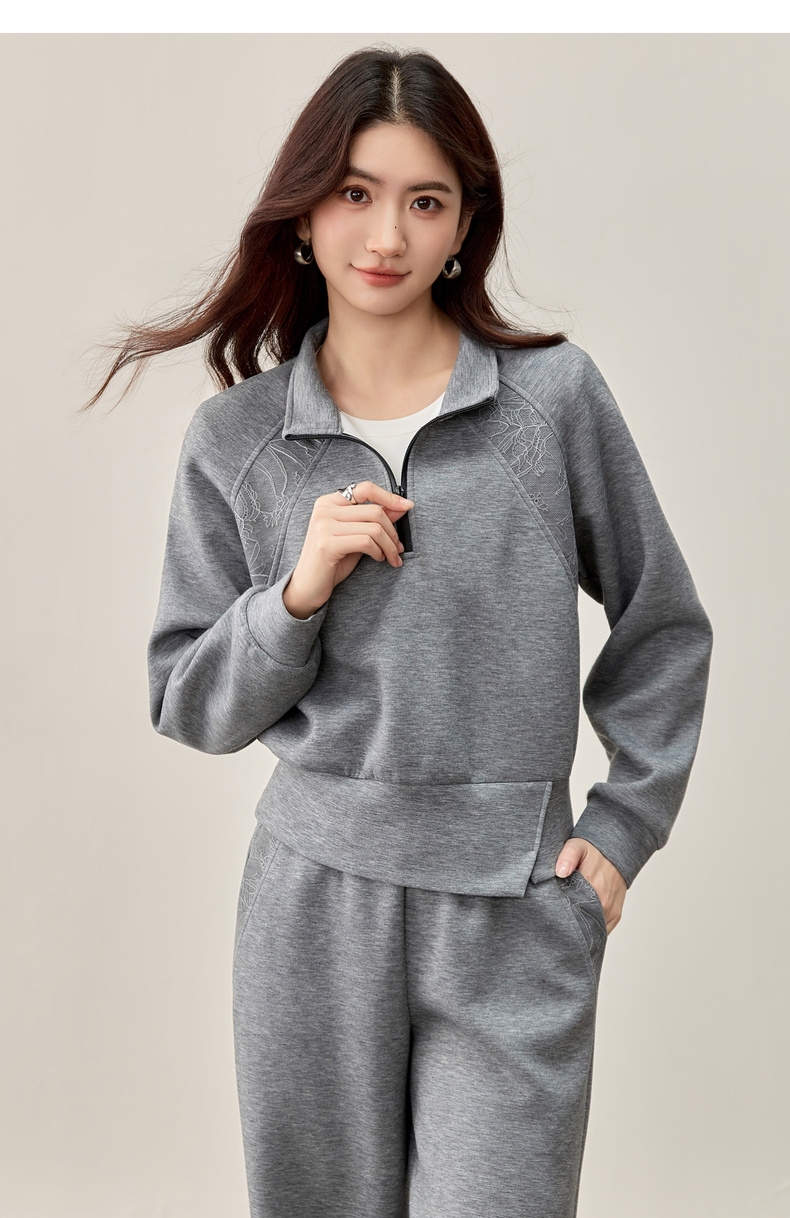 【内购】【免搭配套装】简约休闲通勤拼接蕾丝拉链卫衣&松紧腰直筒长裤-153ZH2791