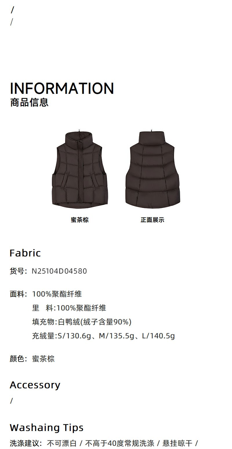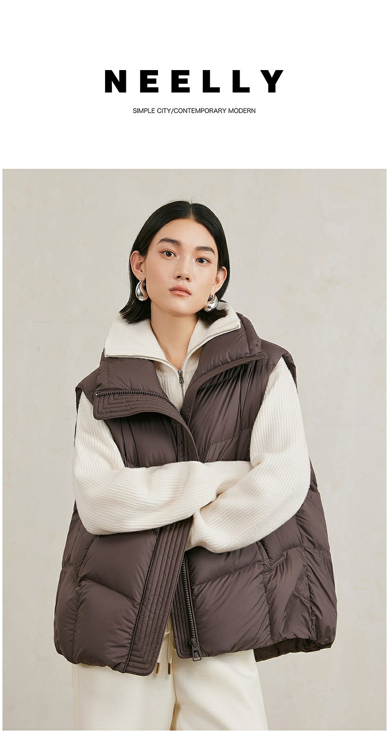 NEELLY纳俪商场同款冬季新款立领保暖无袖背心女宽松羽绒服外套N25104D04580