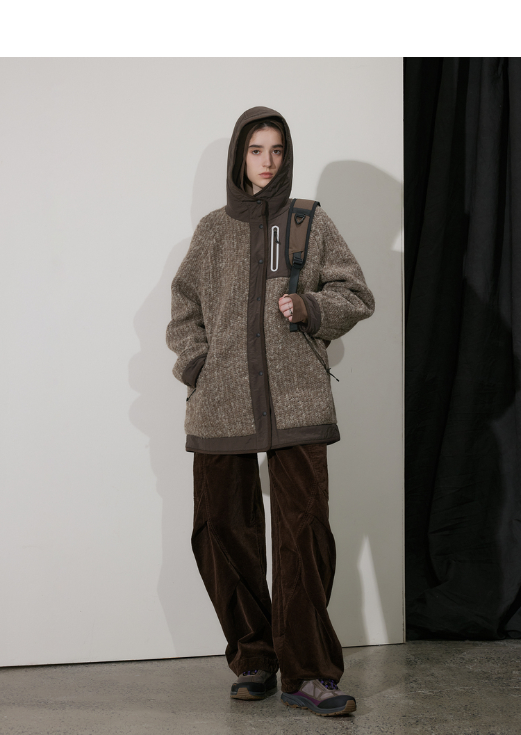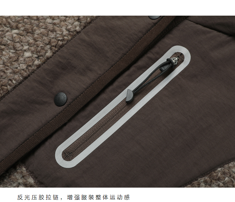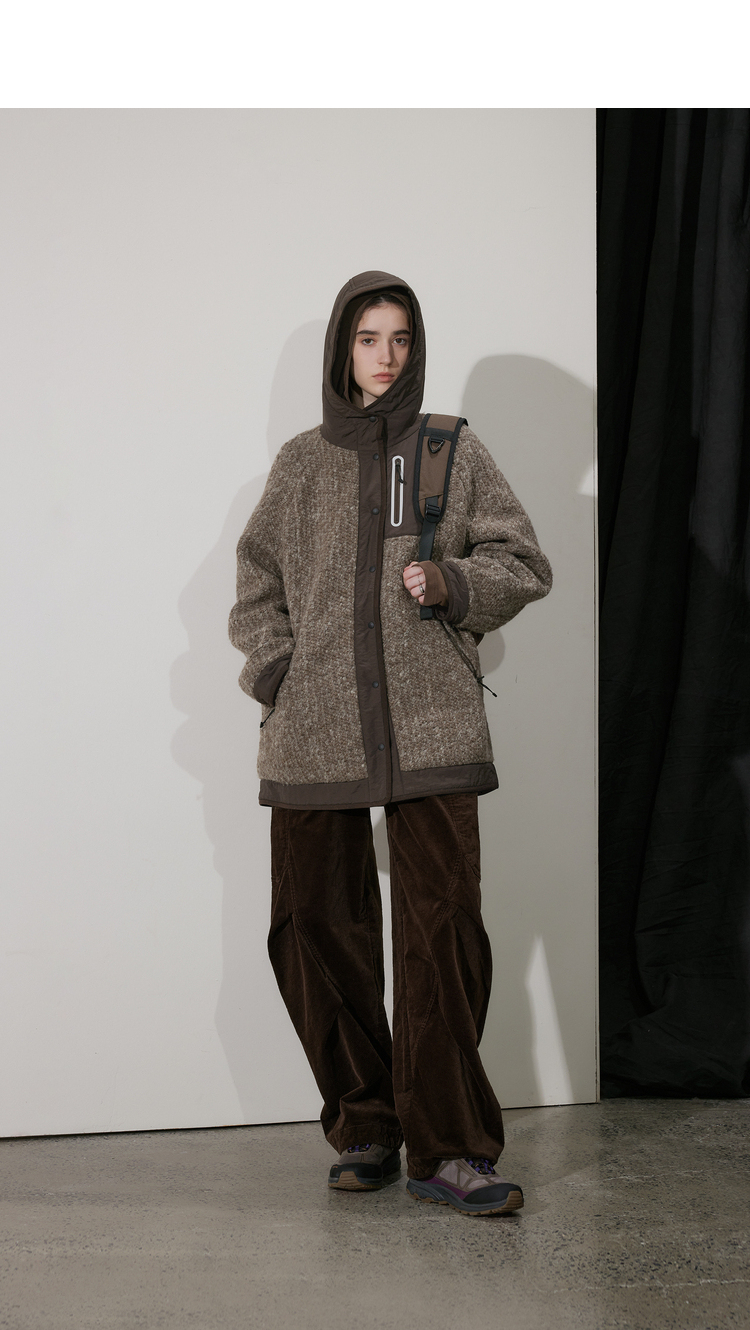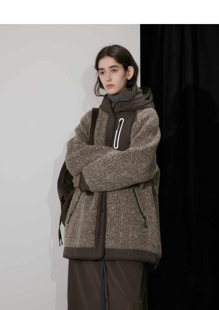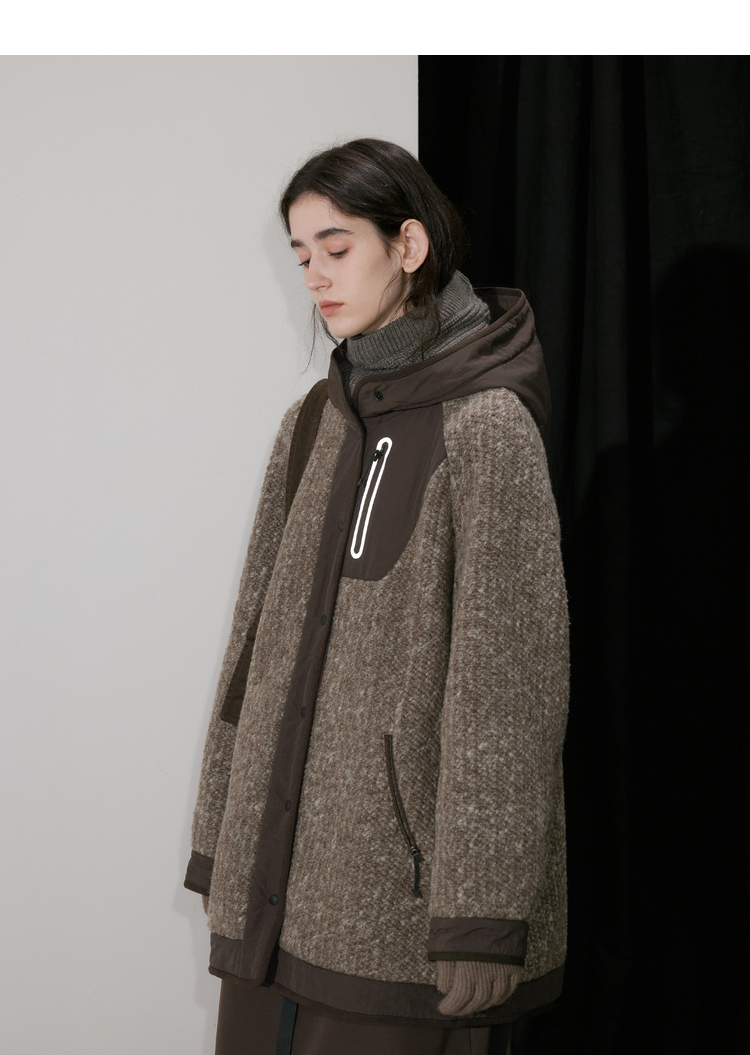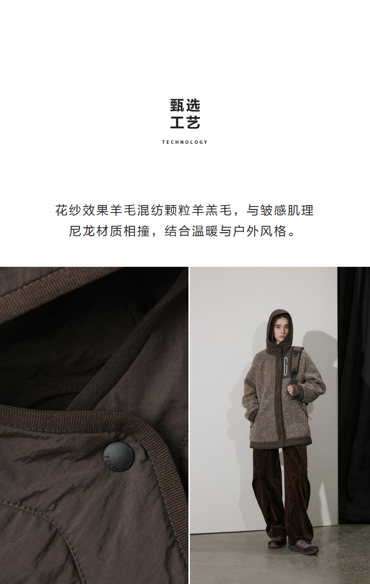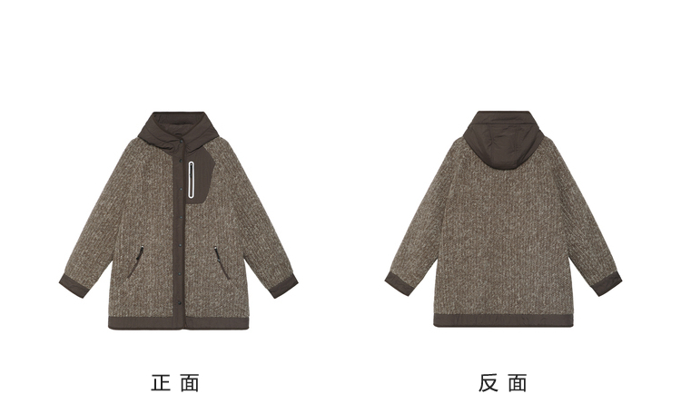半圆/D24401478/连帽插肩袖假两件羊羔毛外套