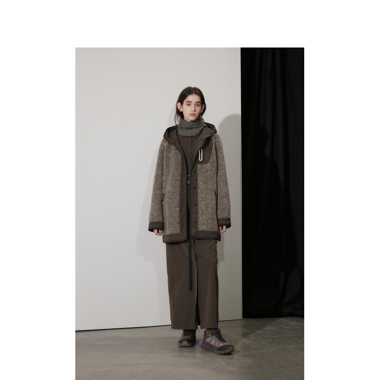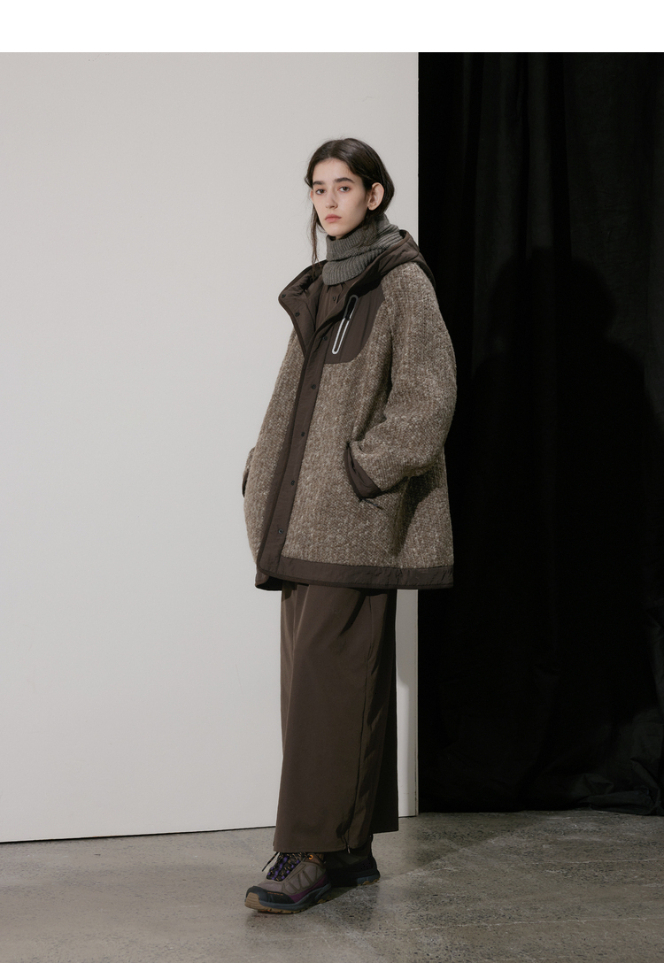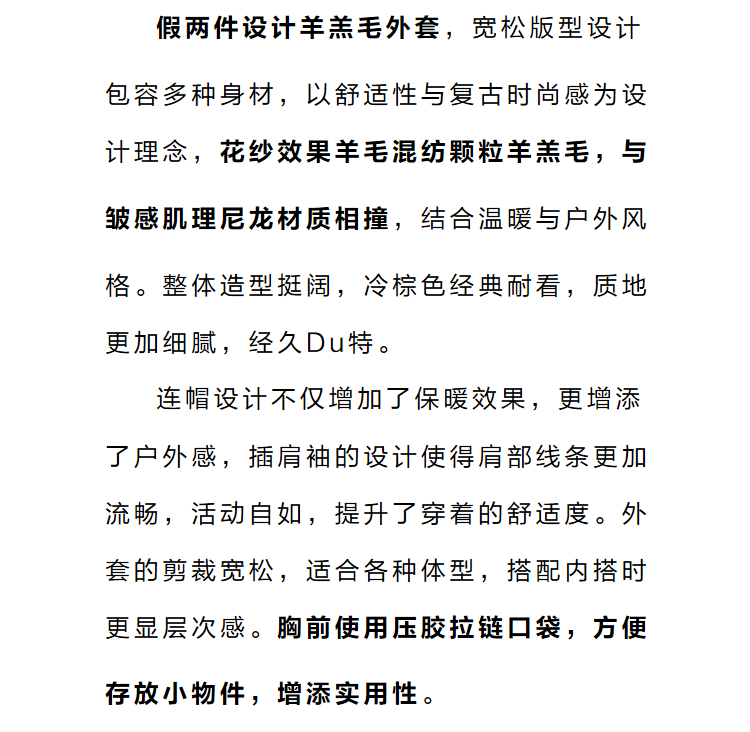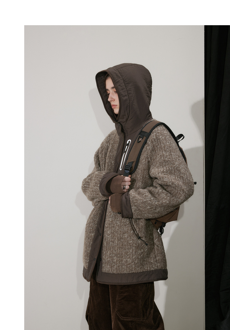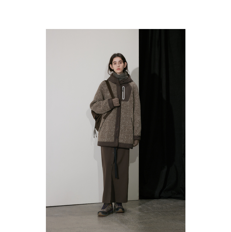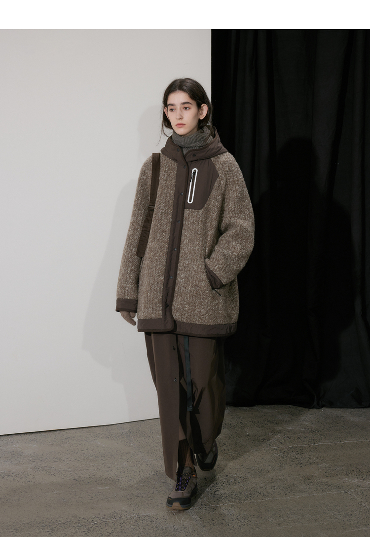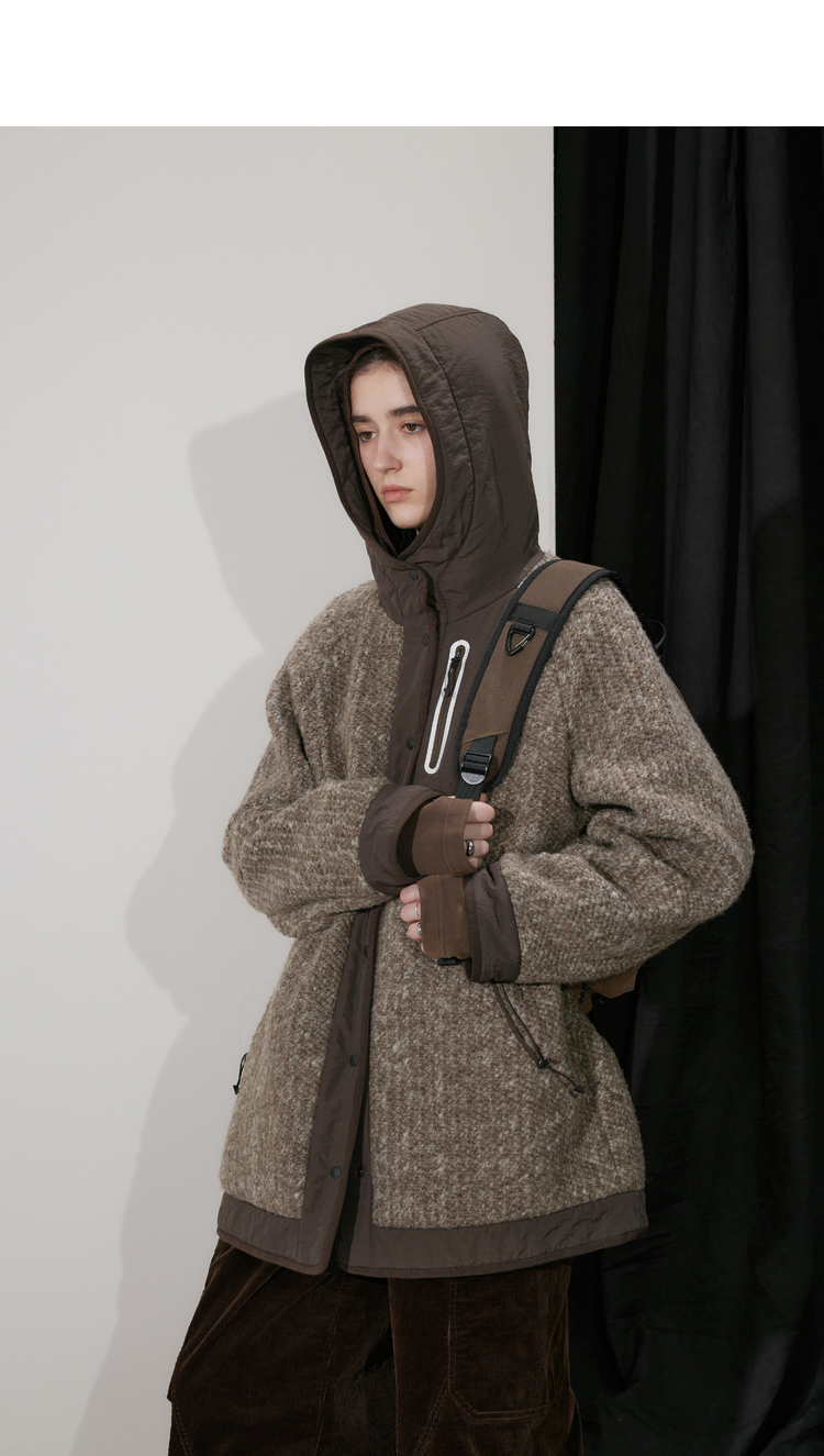 半圆/D24401478/连帽插肩袖假两件羊羔毛外套