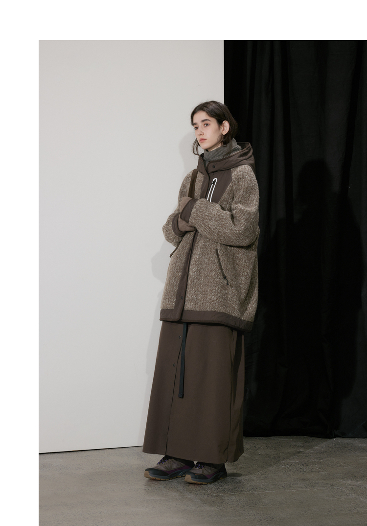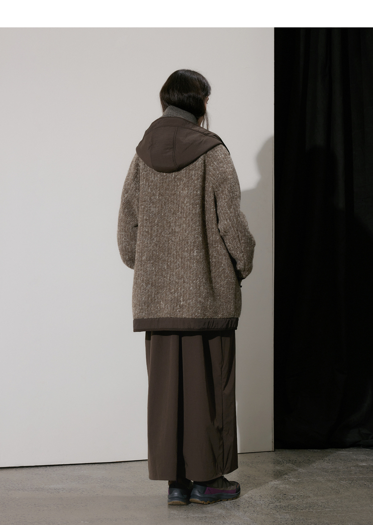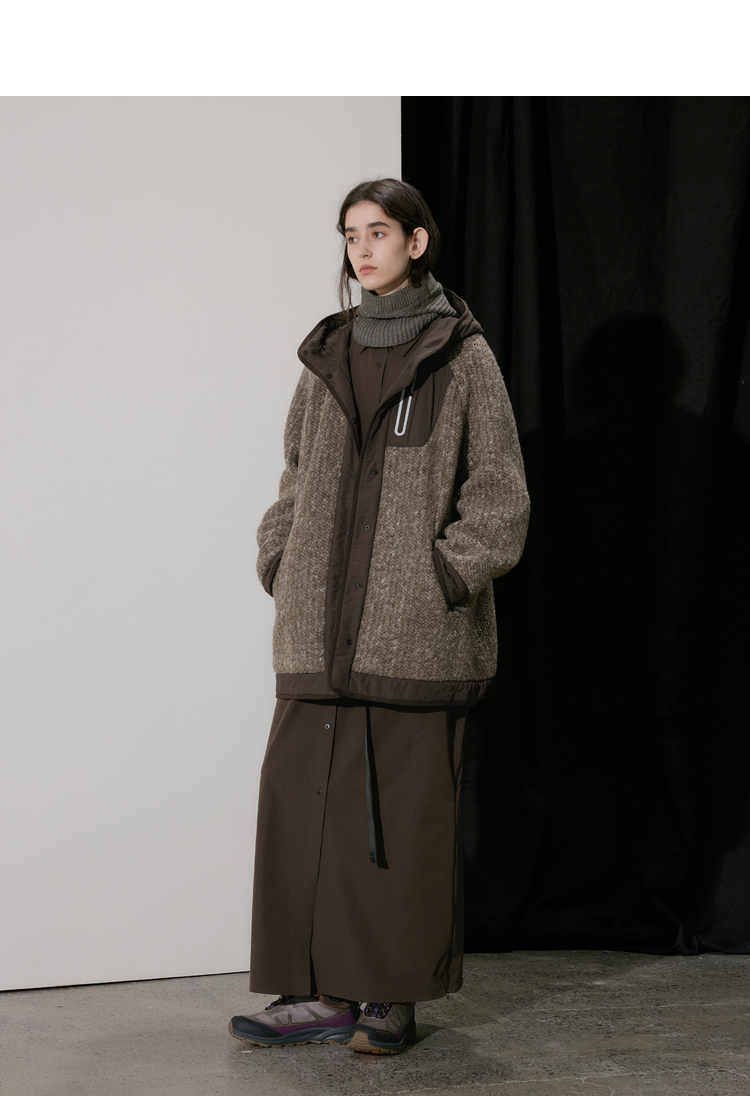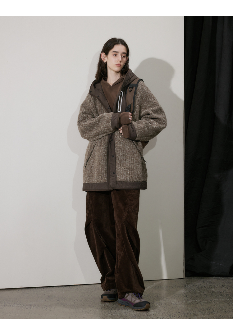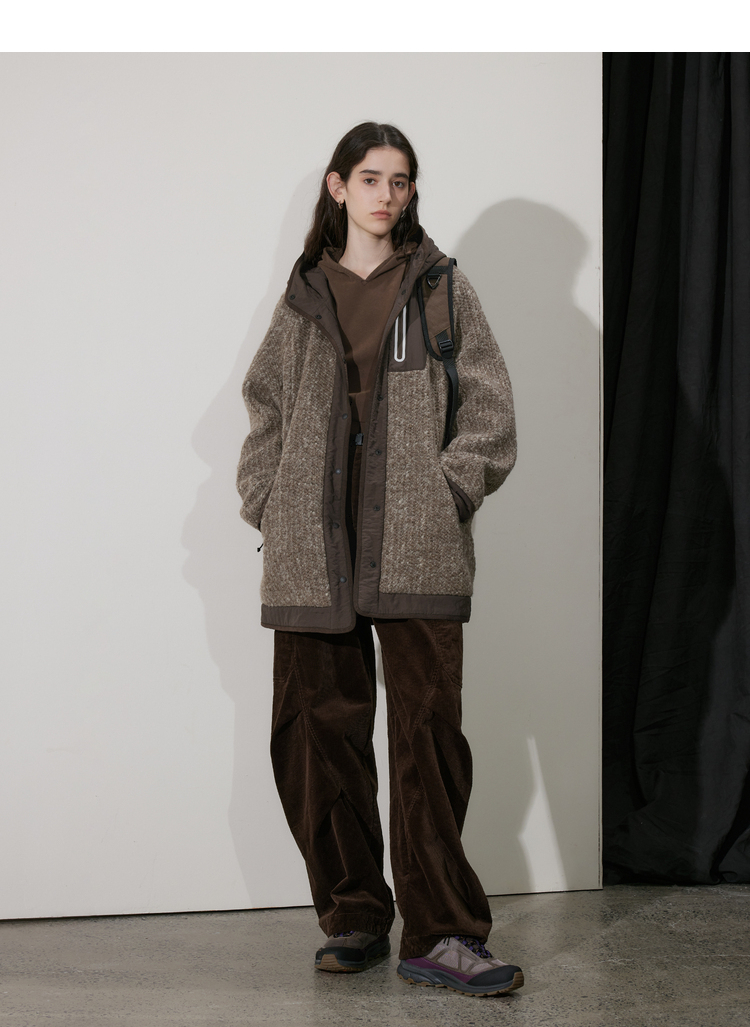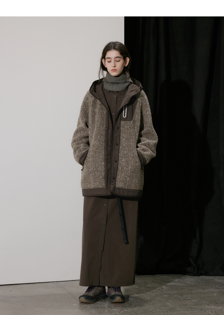 半圆/D24401478/连帽插肩袖假两件羊羔毛外套