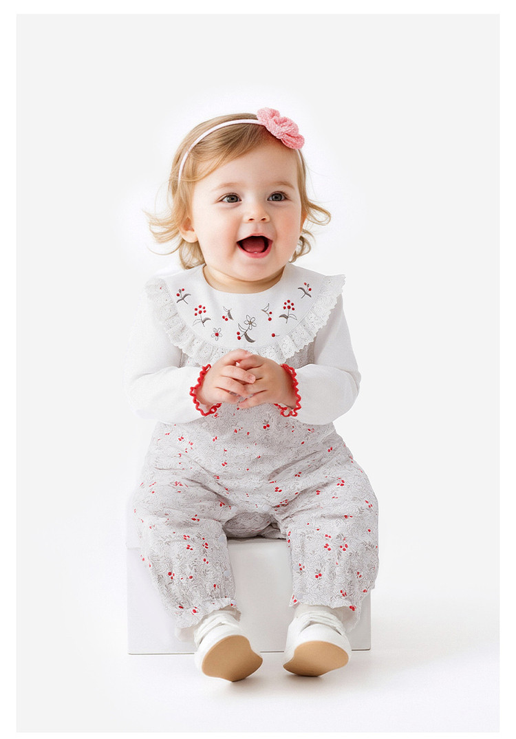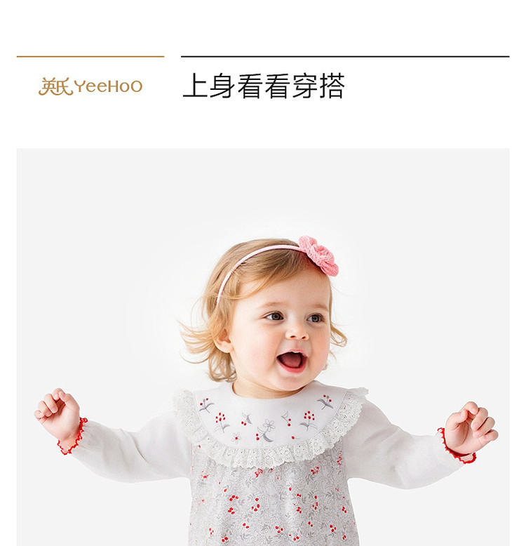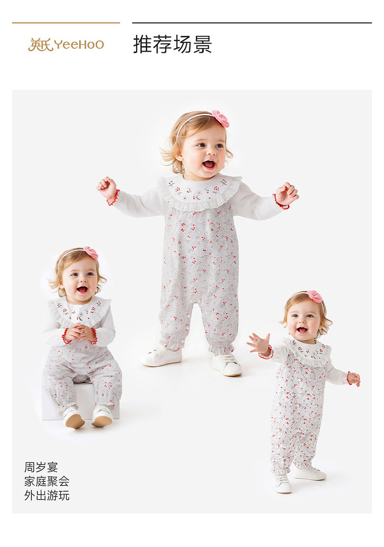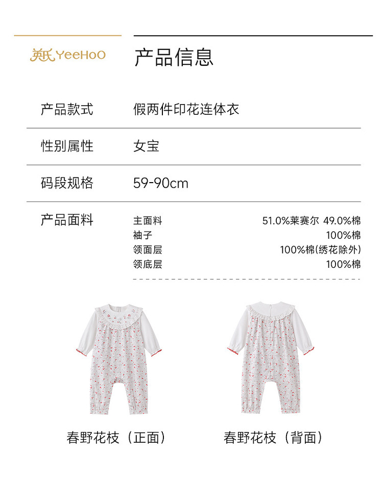 英氏婴儿连体衣长袖哈衣春秋莱赛尔春季女宝宝爬爬服YRHAJ1S002A