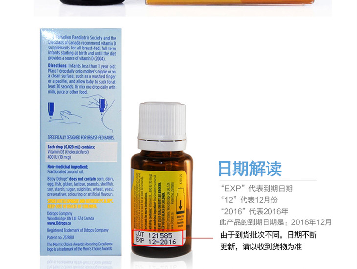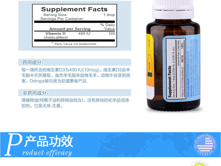 【保税仓】美国Baby Ddrops 维生素D3滴剂2.5ml(美版) 商品图0